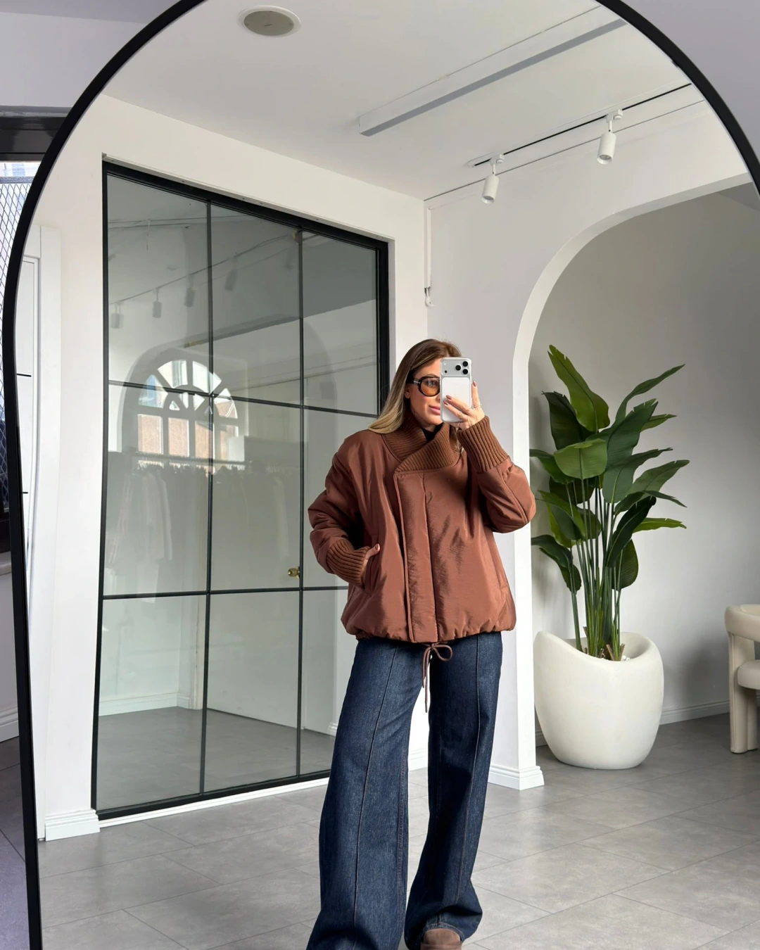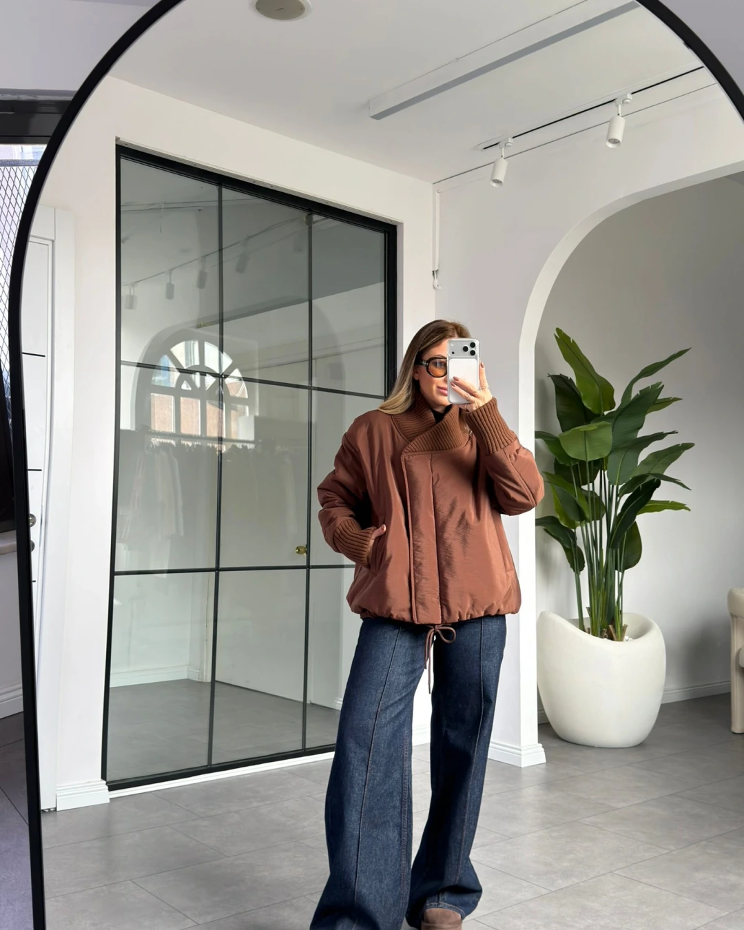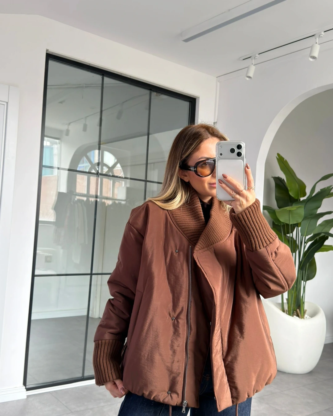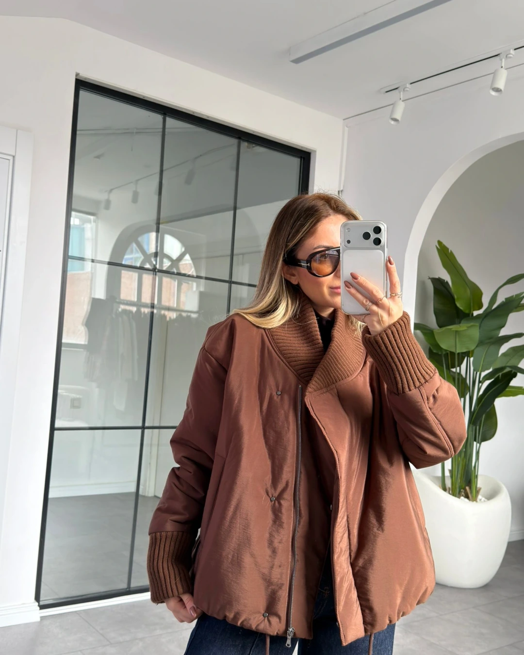 KAHVERENGİ TRİKO DETAYLI PREMİUM MONT