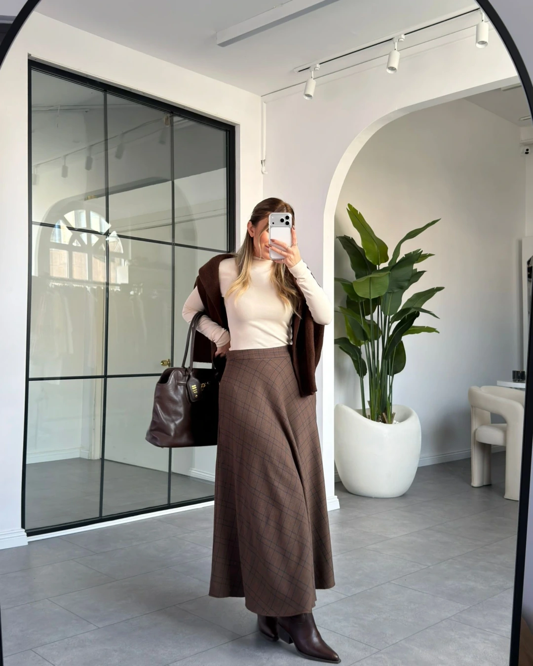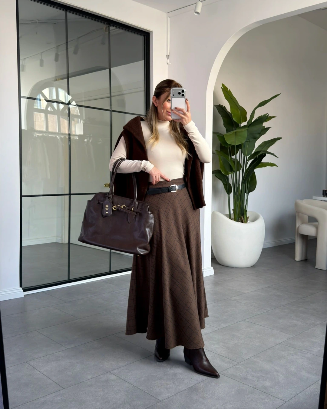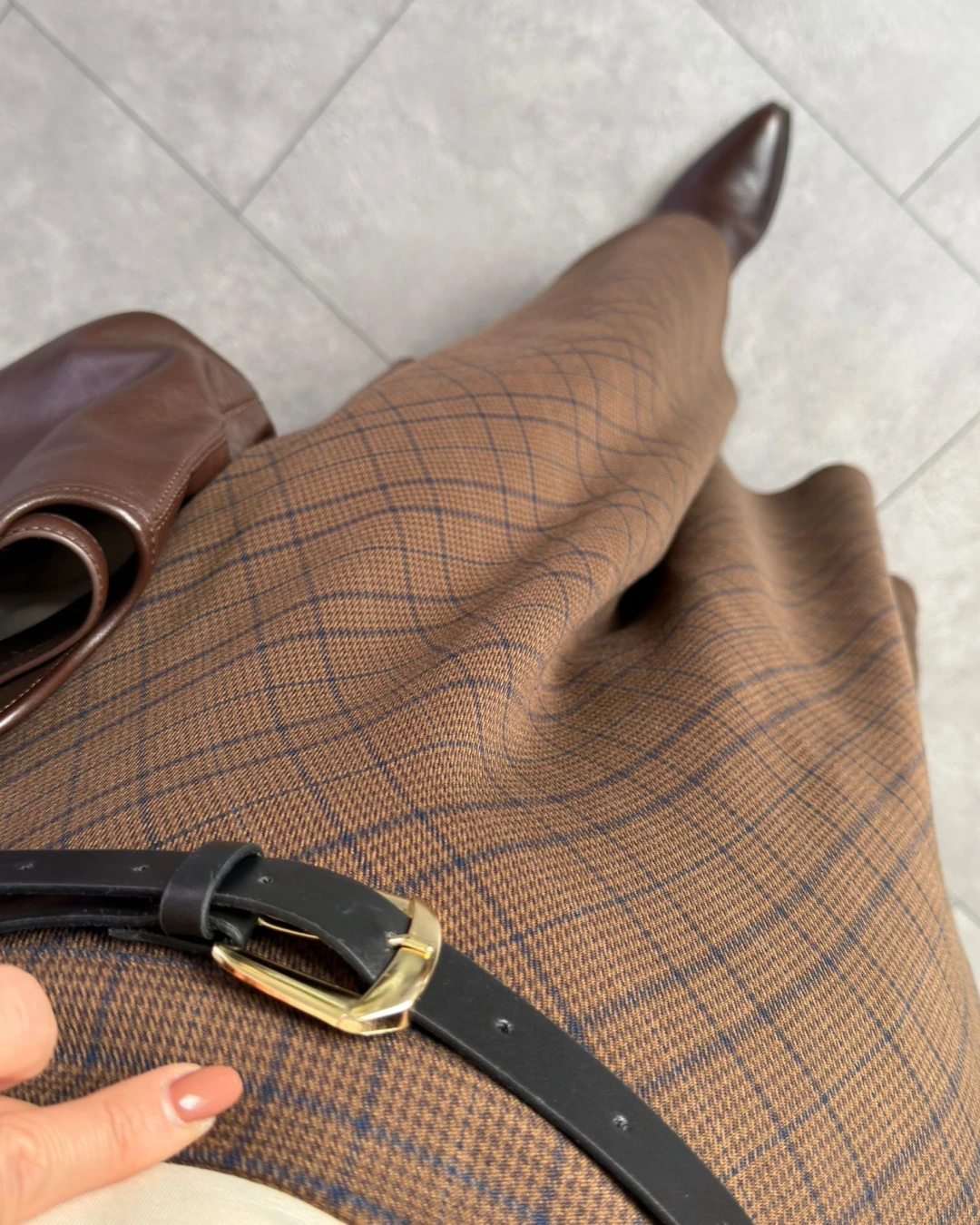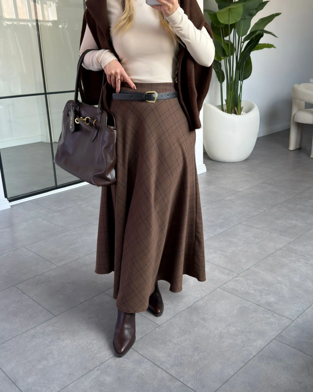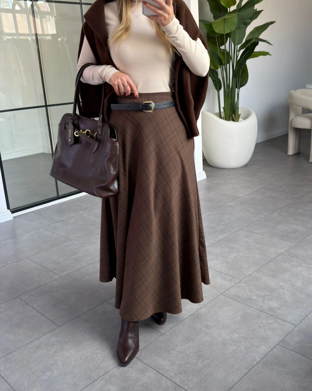 KAHVERENGİ VEREV EKOSE DESEN ETEK