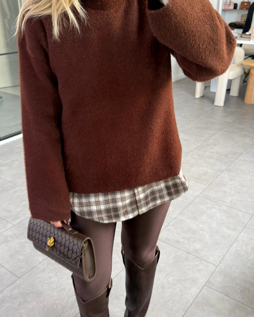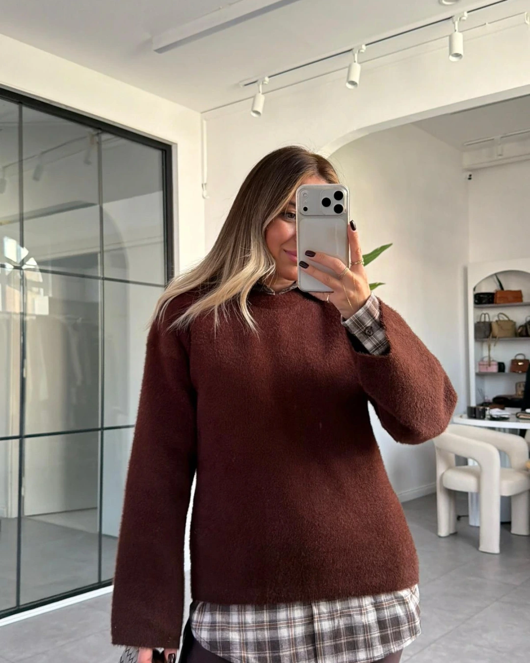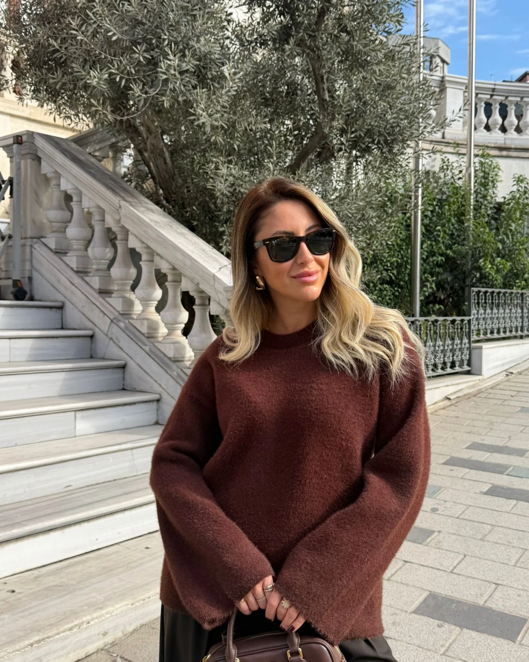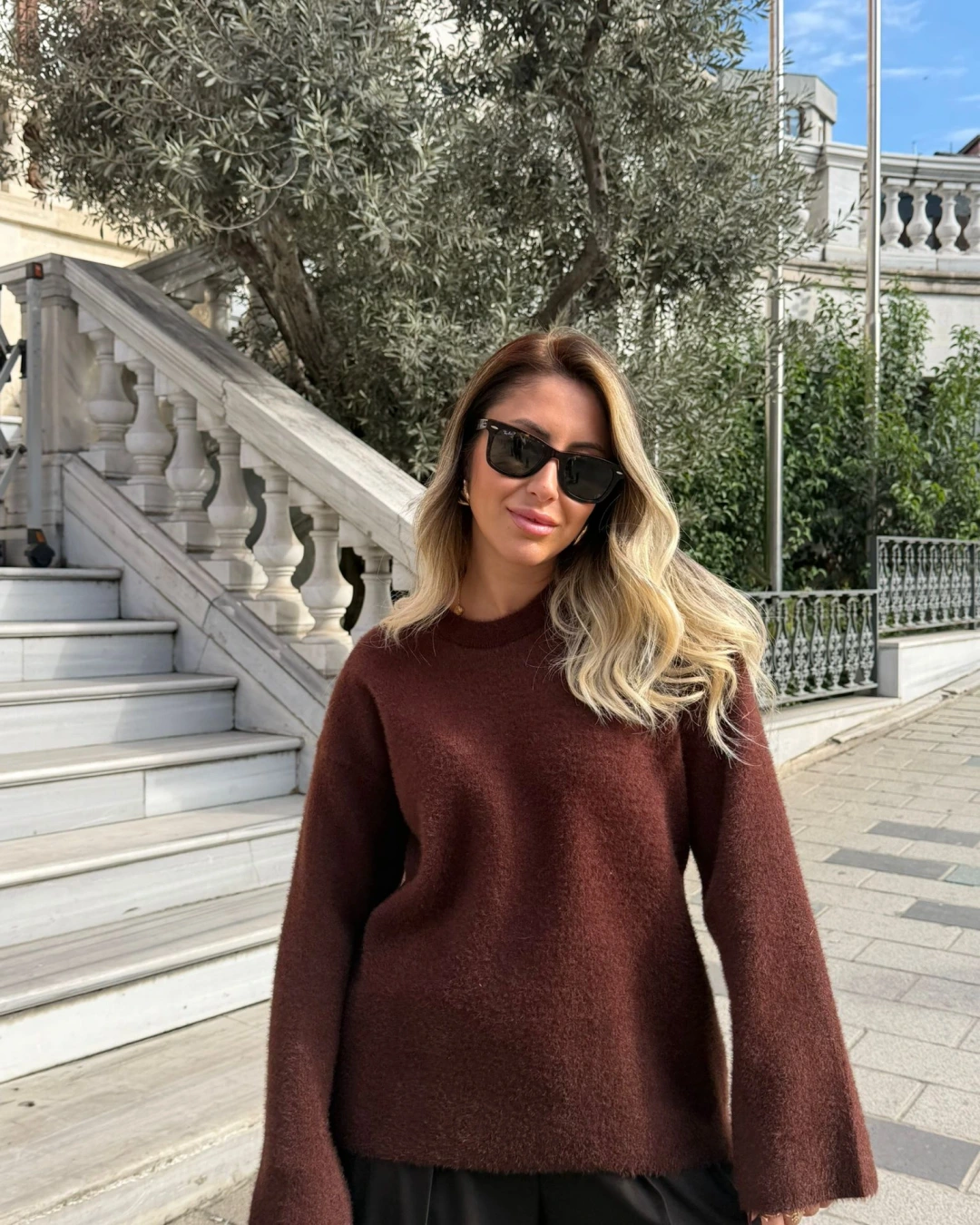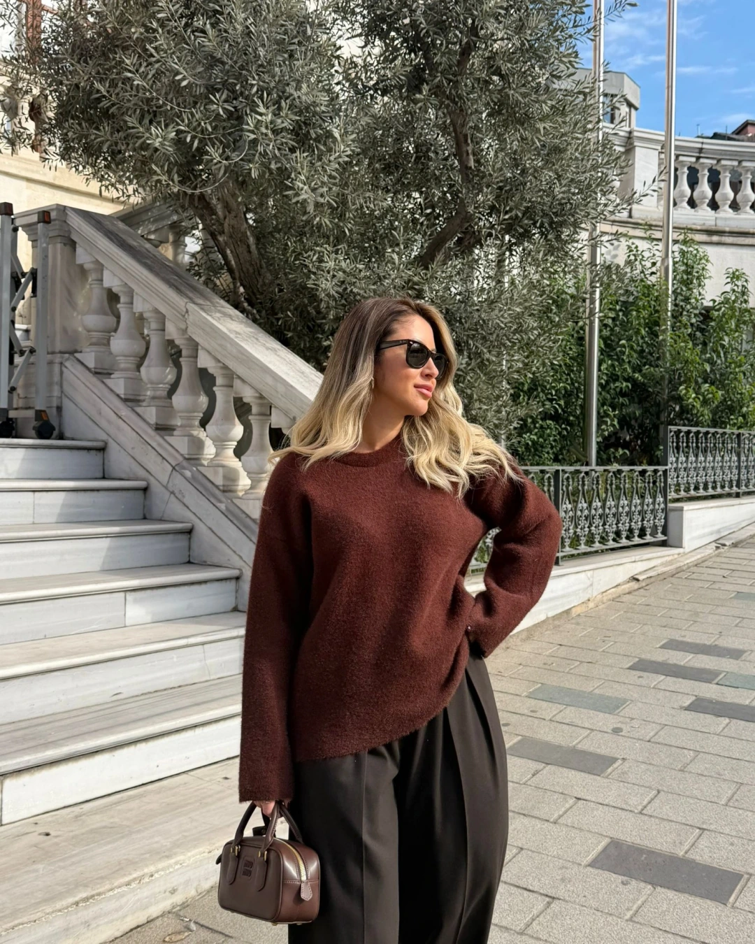 KAHVERENGİ YUMOŞ DOKULU KAŞMİR KAZAK