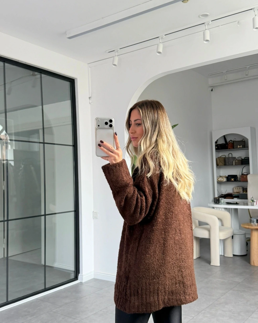 ACI KAHVE SAÇ ÖRGÜ TRİKO KAZAK