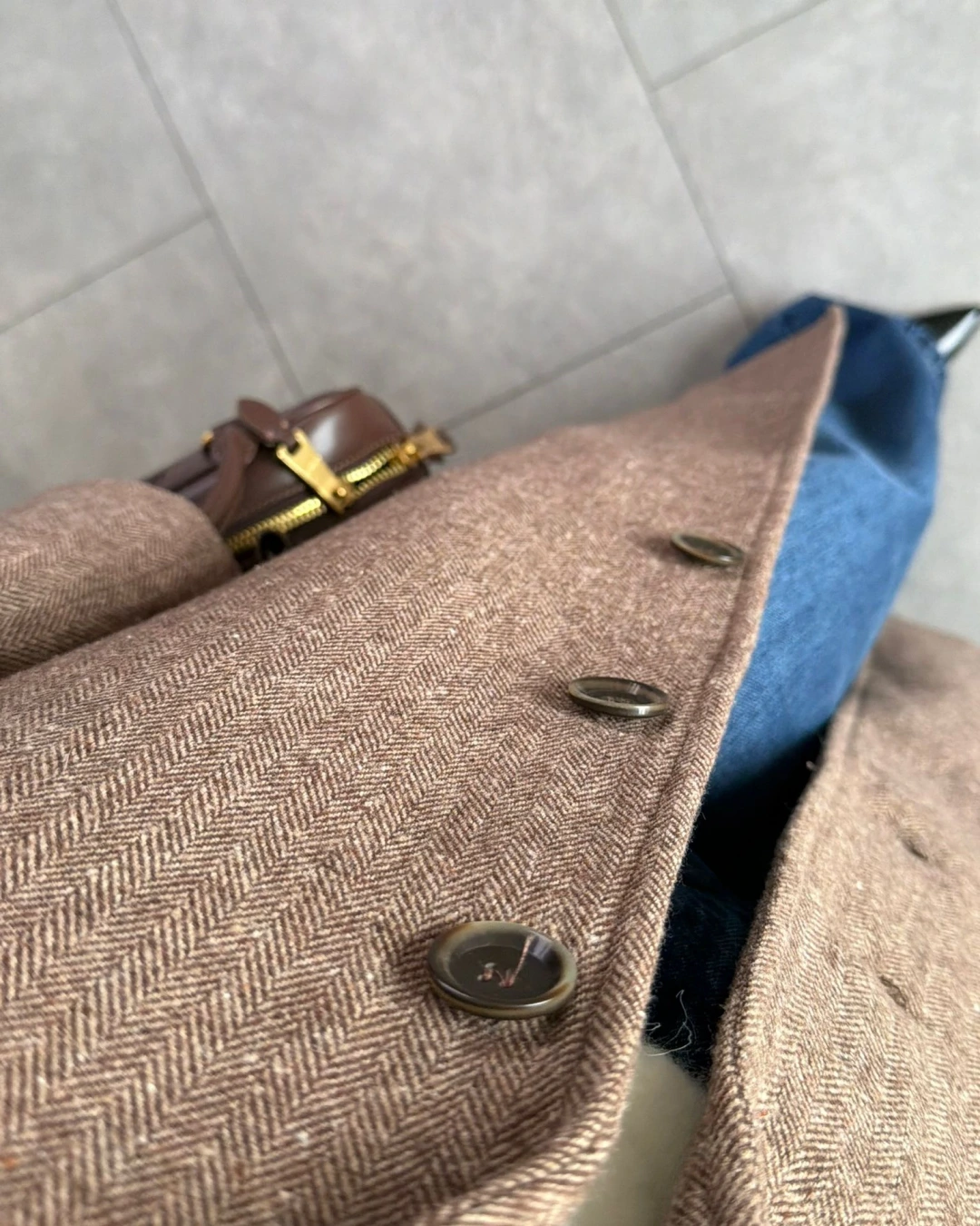 KAHVERENGİ DÖRT DÜĞMELİ KUŞAKLI KAŞE KABAN