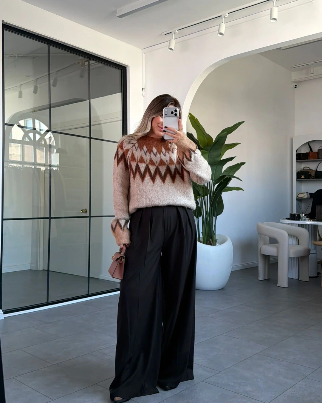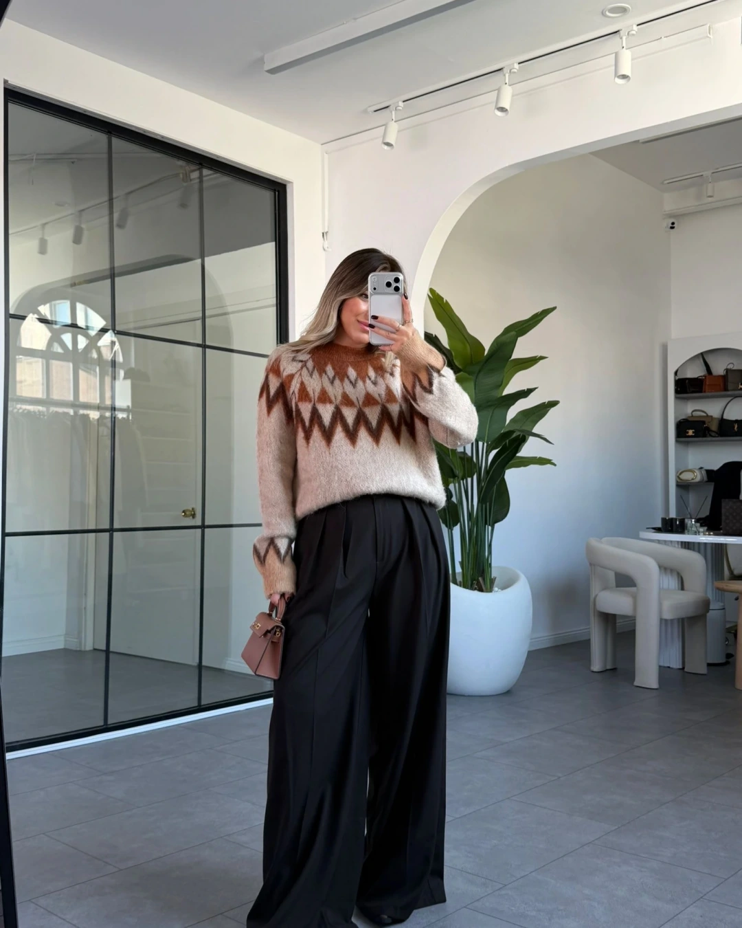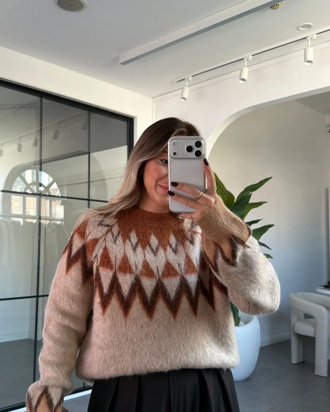 KARAMEL DİLVİN YUVARLAK YAKA TRİKO KAZAK