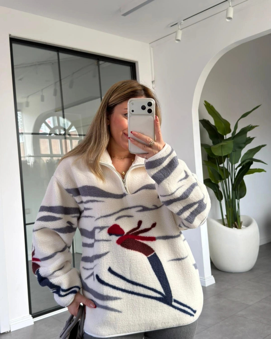 KAYAK DESEN PELUŞ SWEATSHİRT