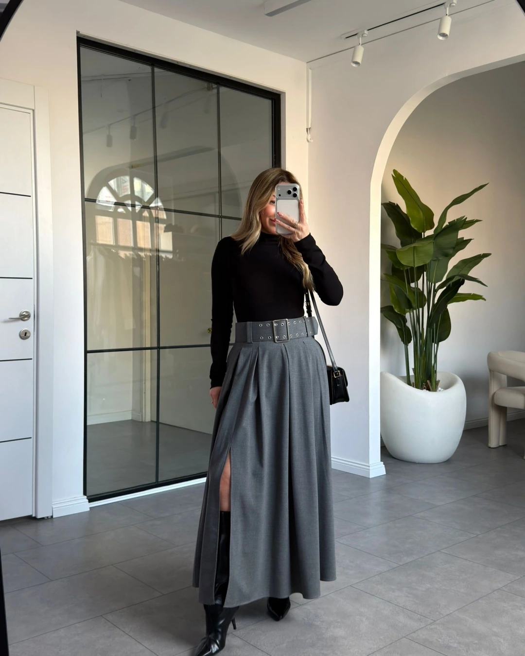 KEMERLİ GRİ PİLİKAŞE ETEK