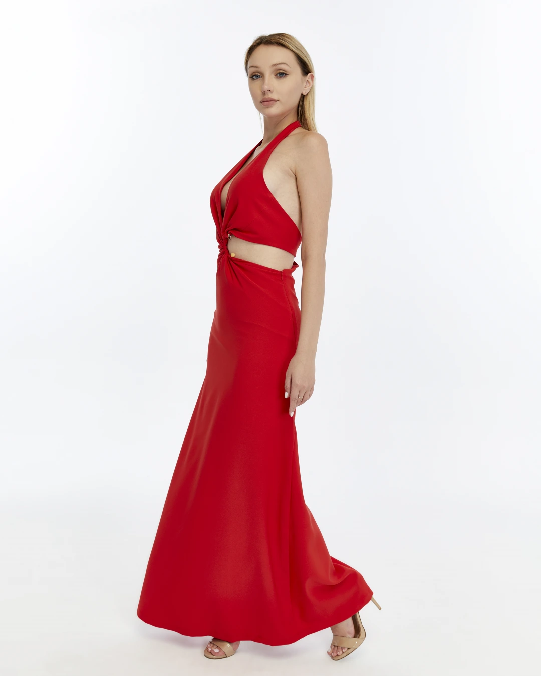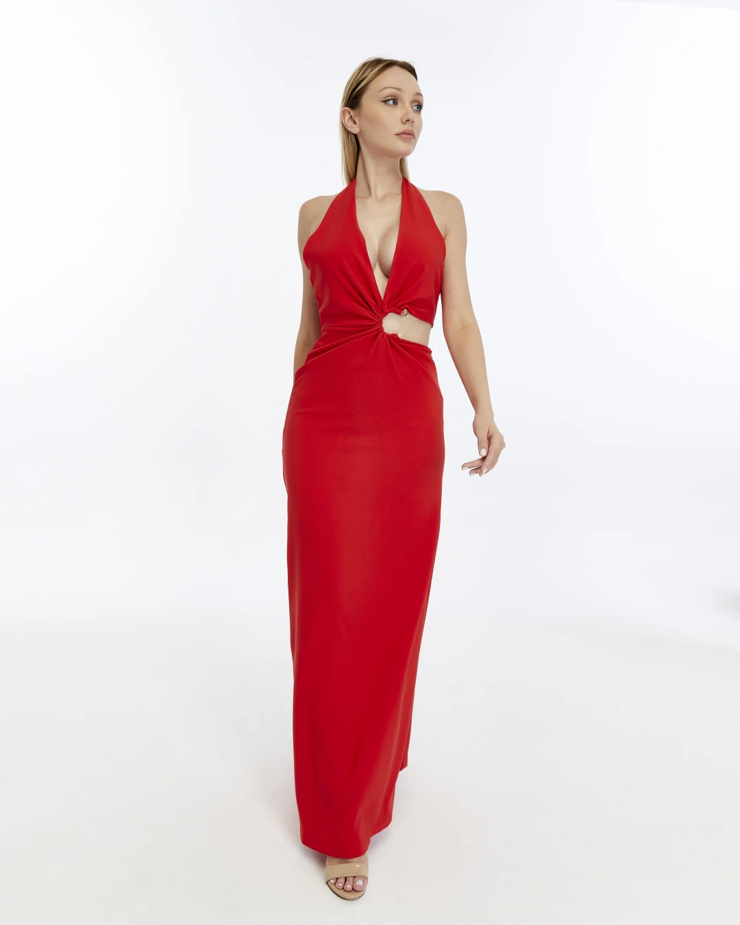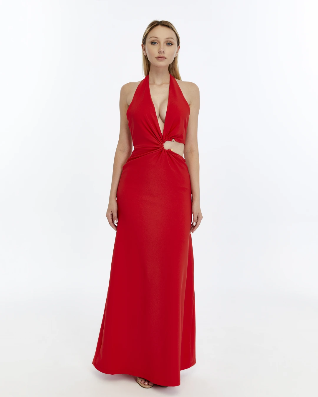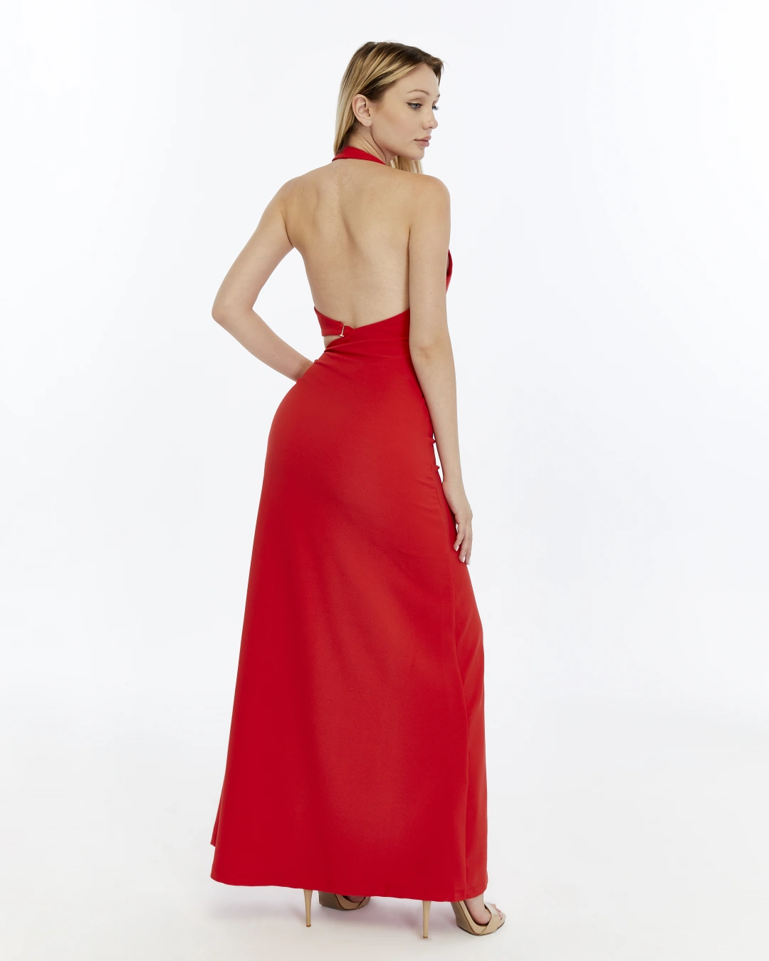 KIRMIZI DEKOLTE DETAYLI ELBİSE