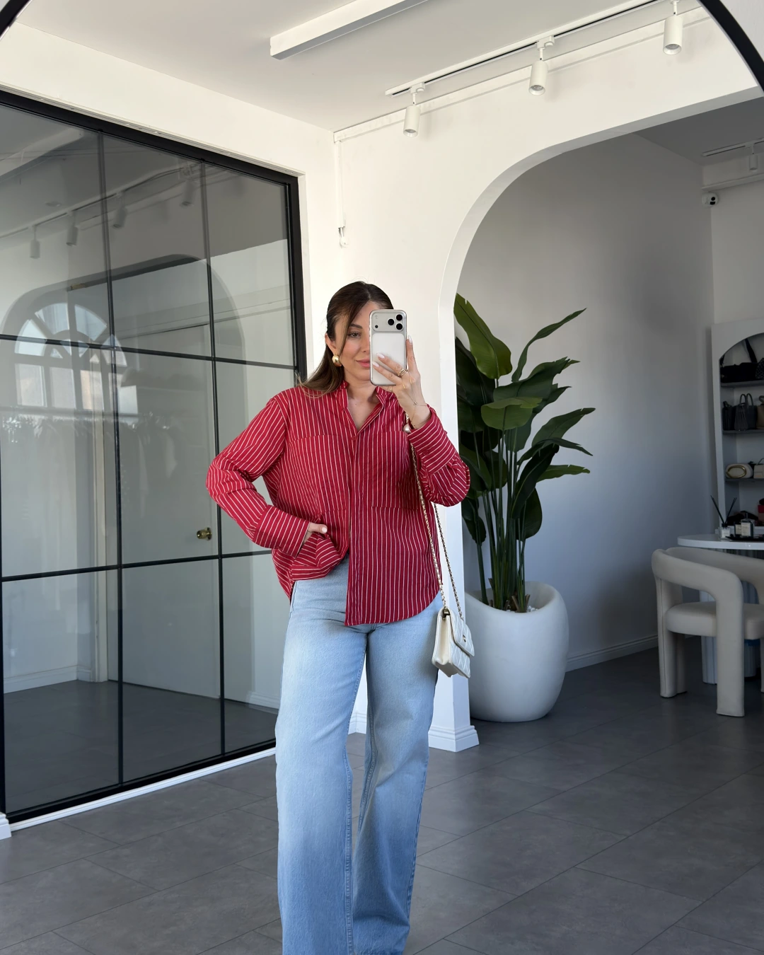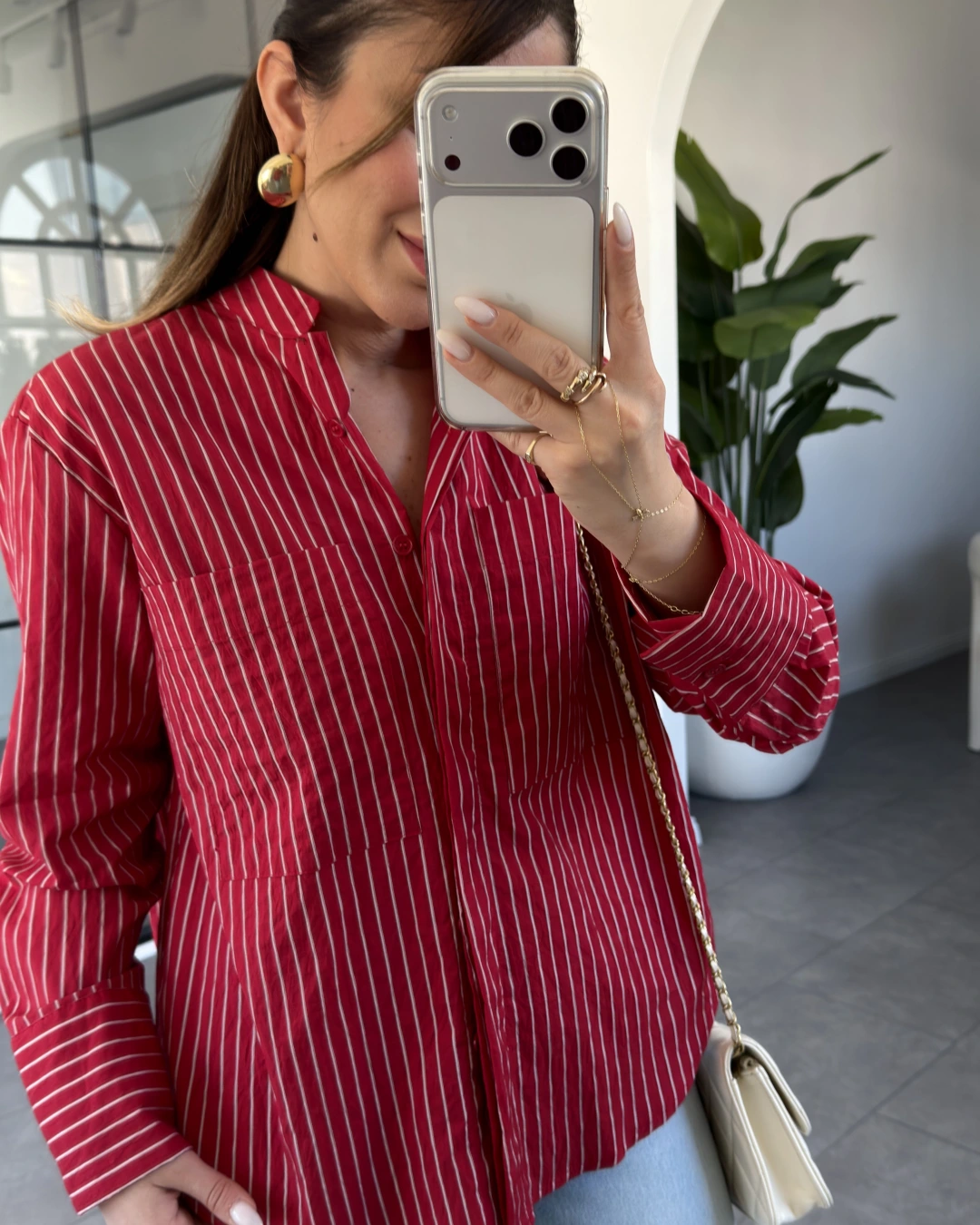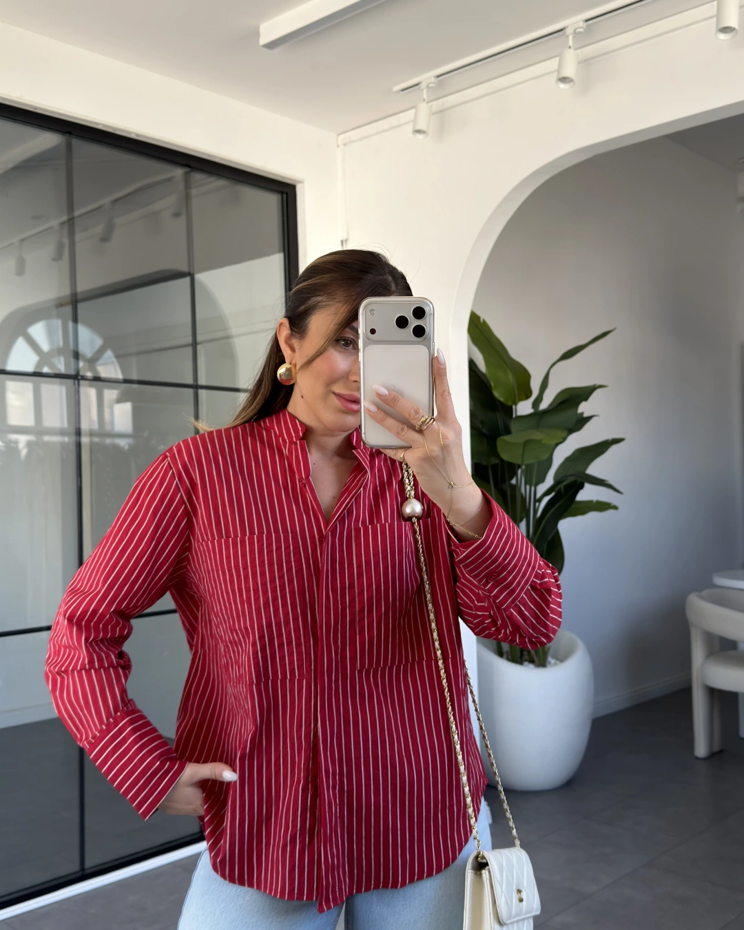 KIRMIZI HAKİM YAKA ÇİZGİLİ GÖMLEK 260894