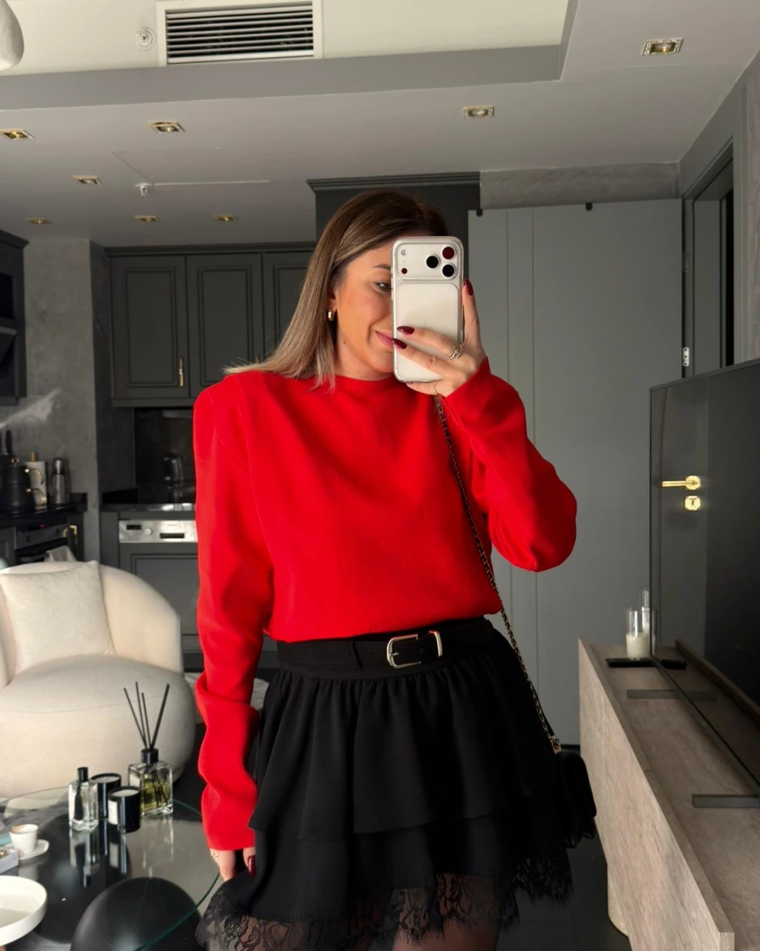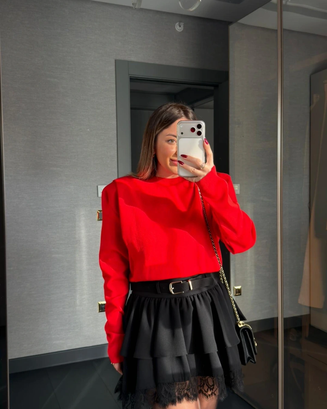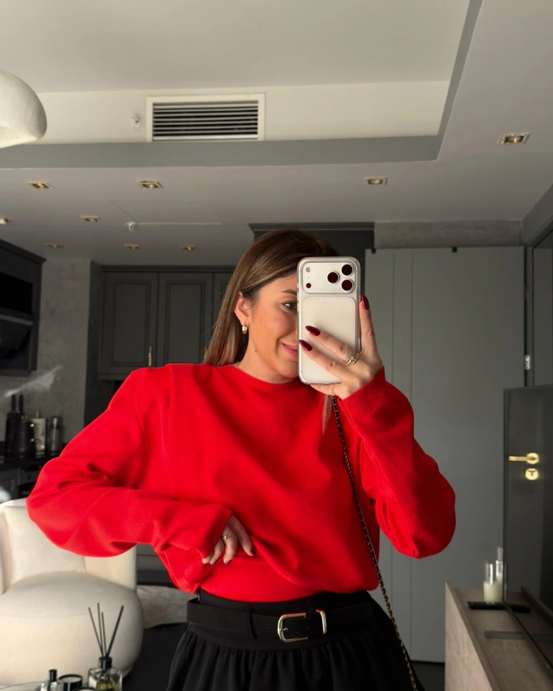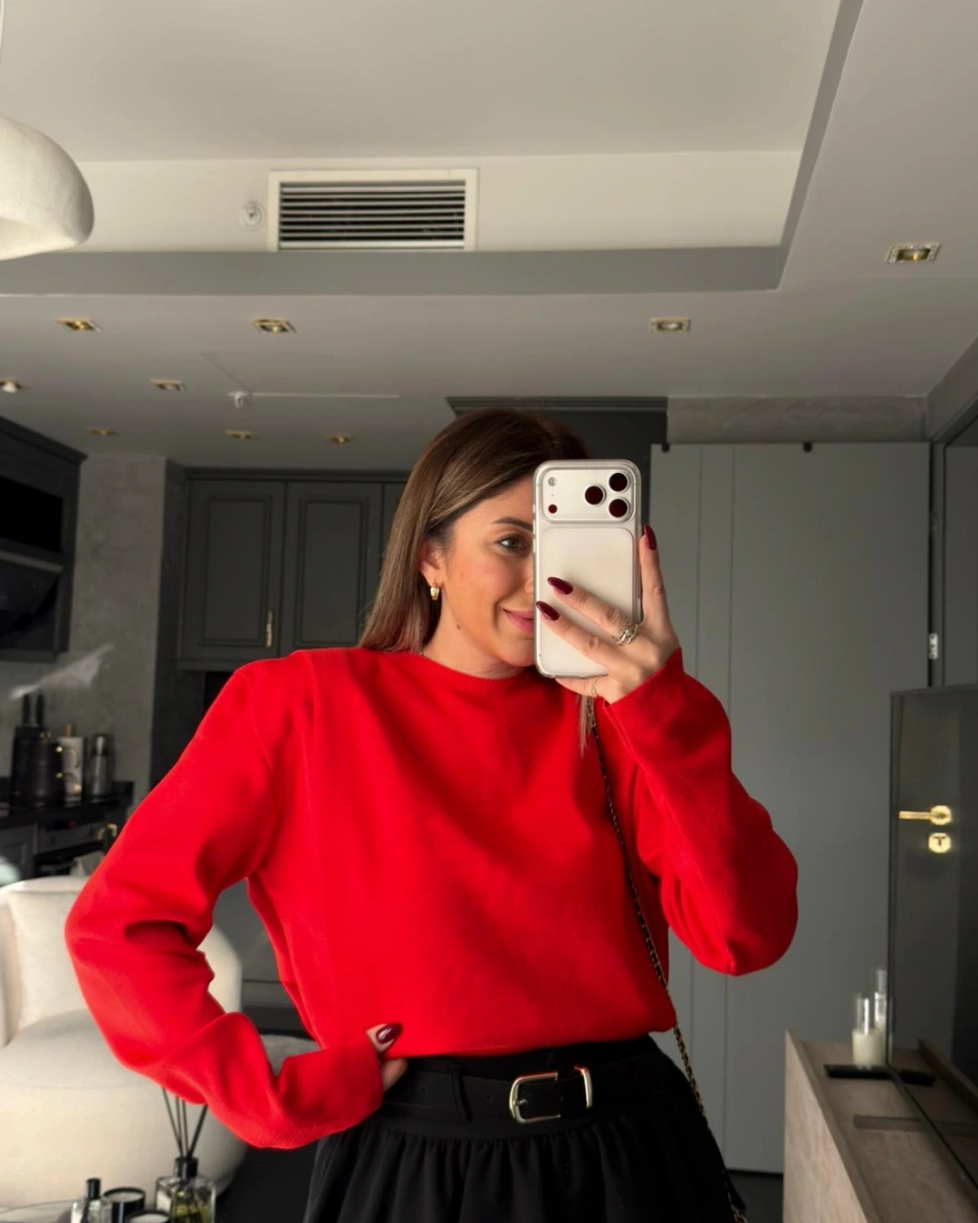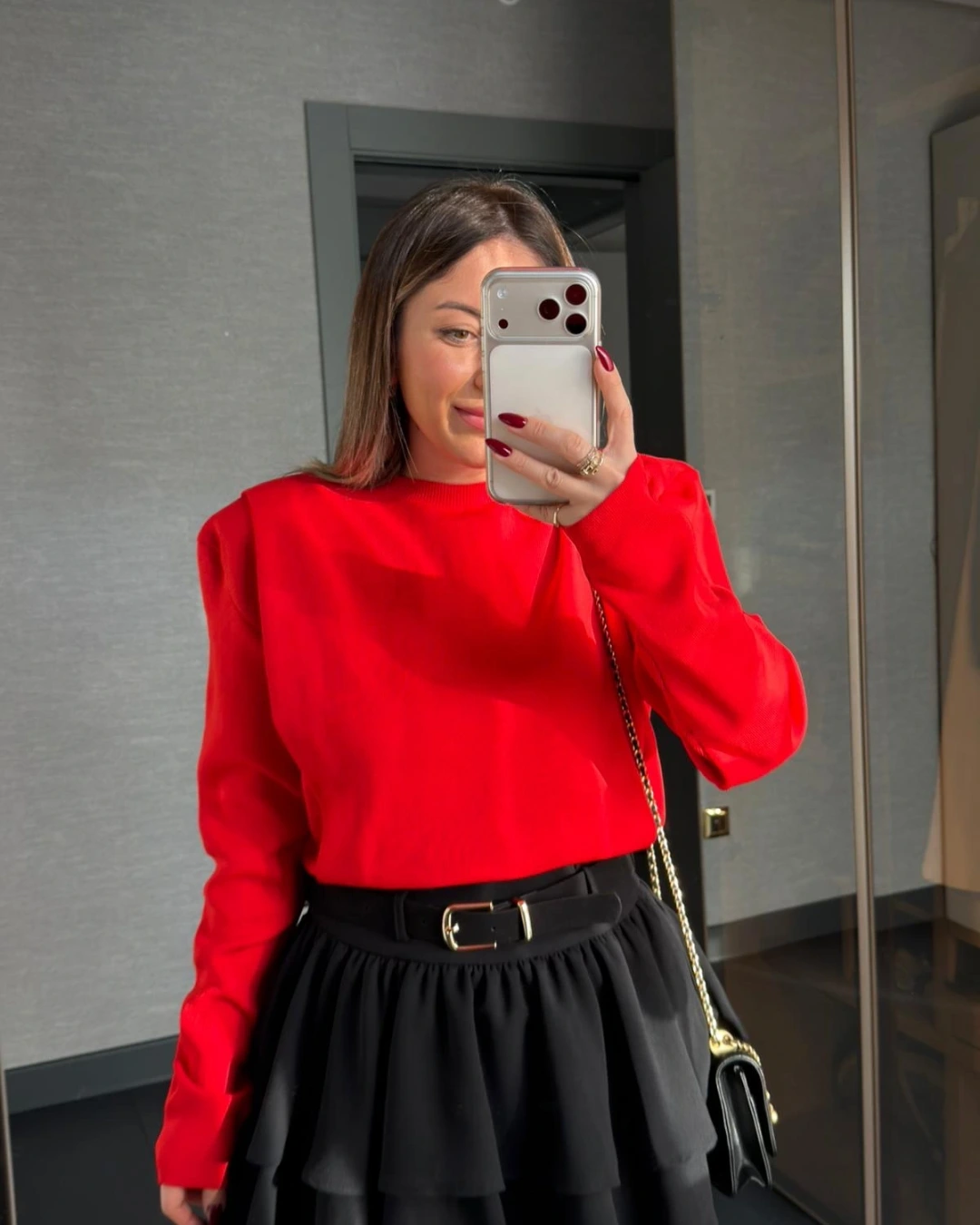 KIRMIZI OMUZU VATKALI TRİKO KAZAK
