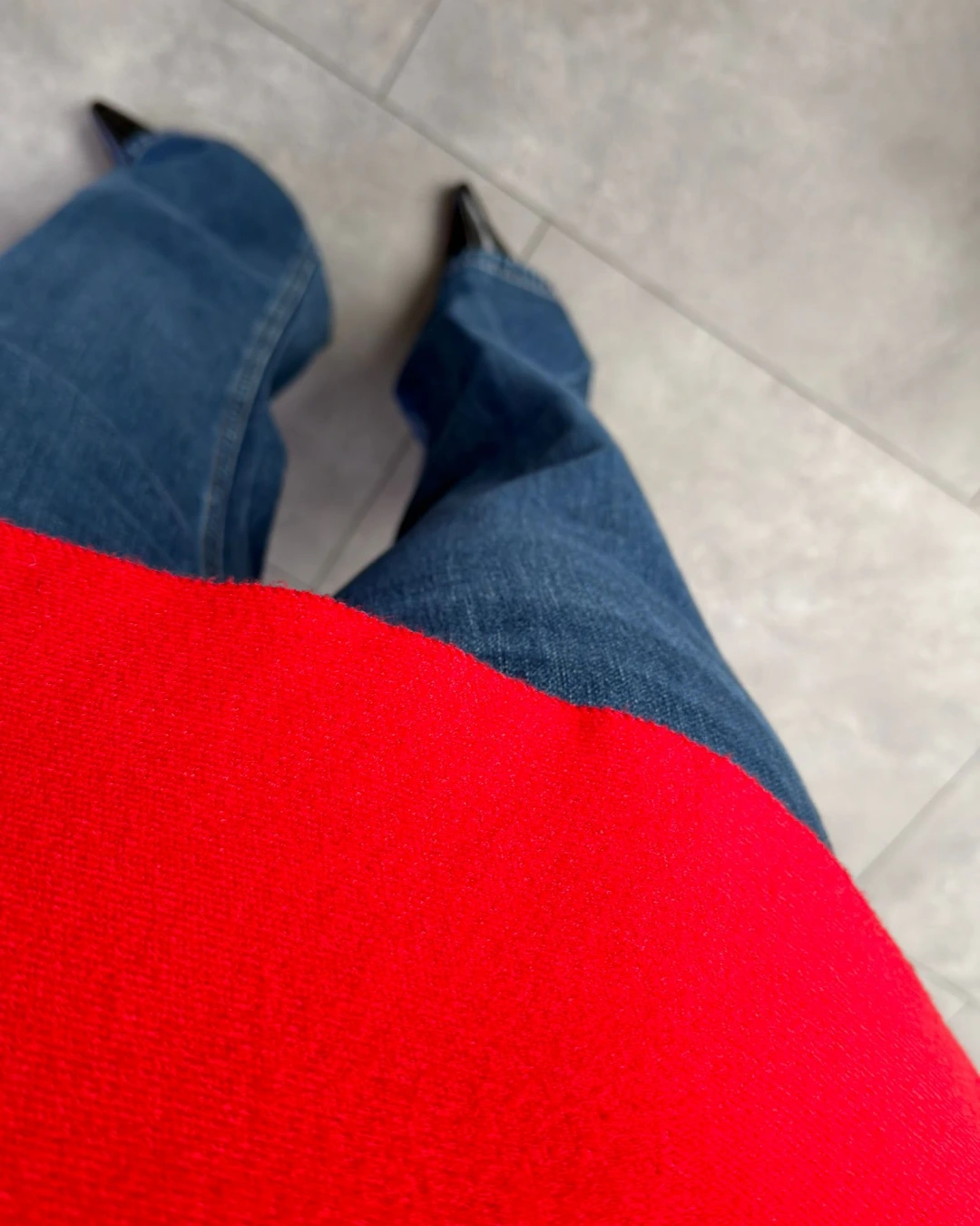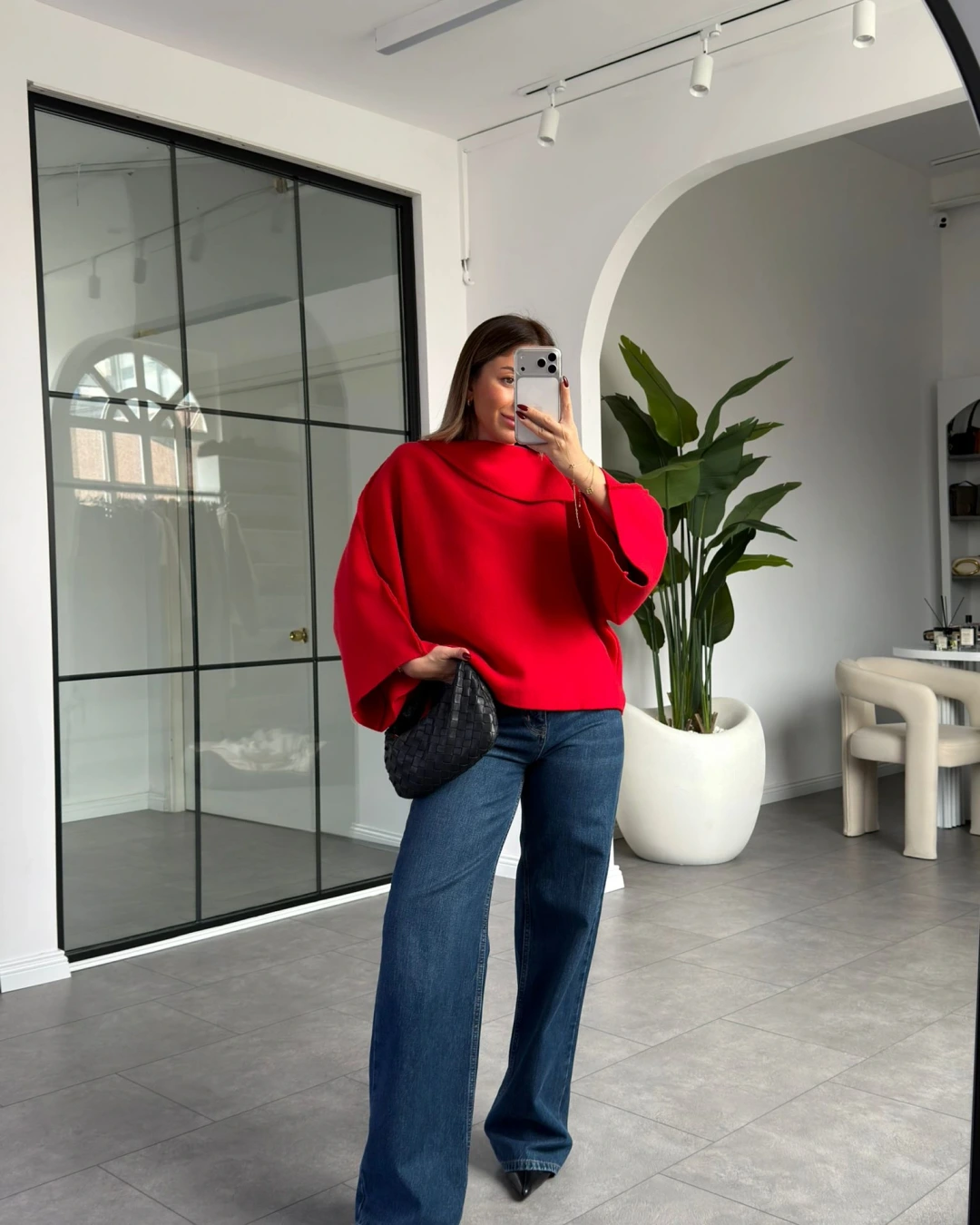 KIRMIZI ŞAL YAKA YARASA KOL TRİKO KAZAK