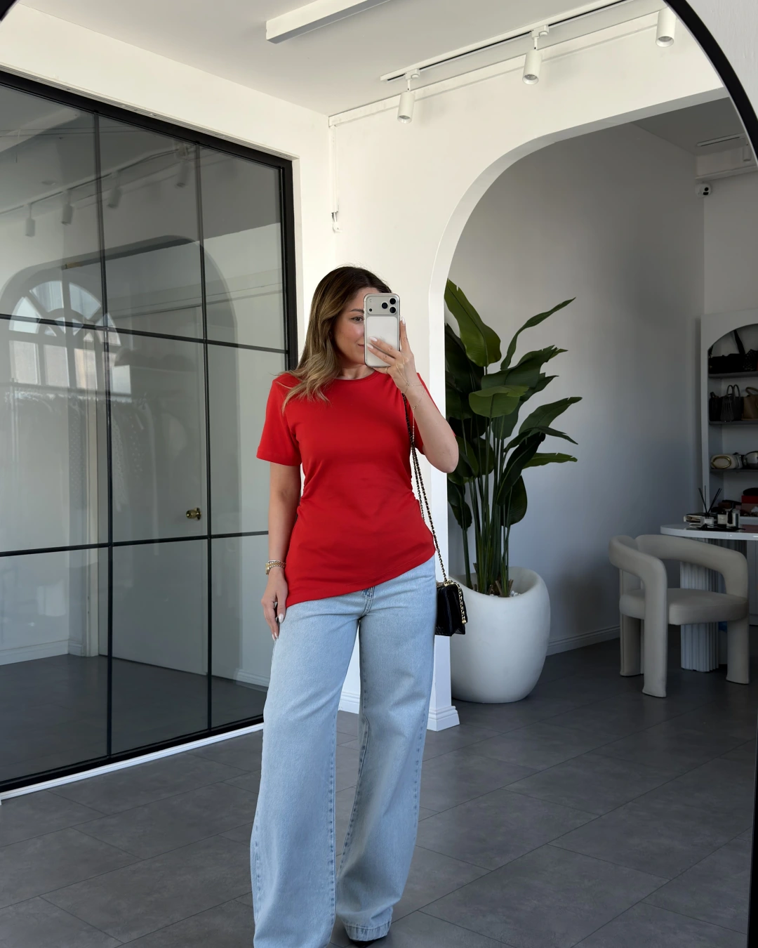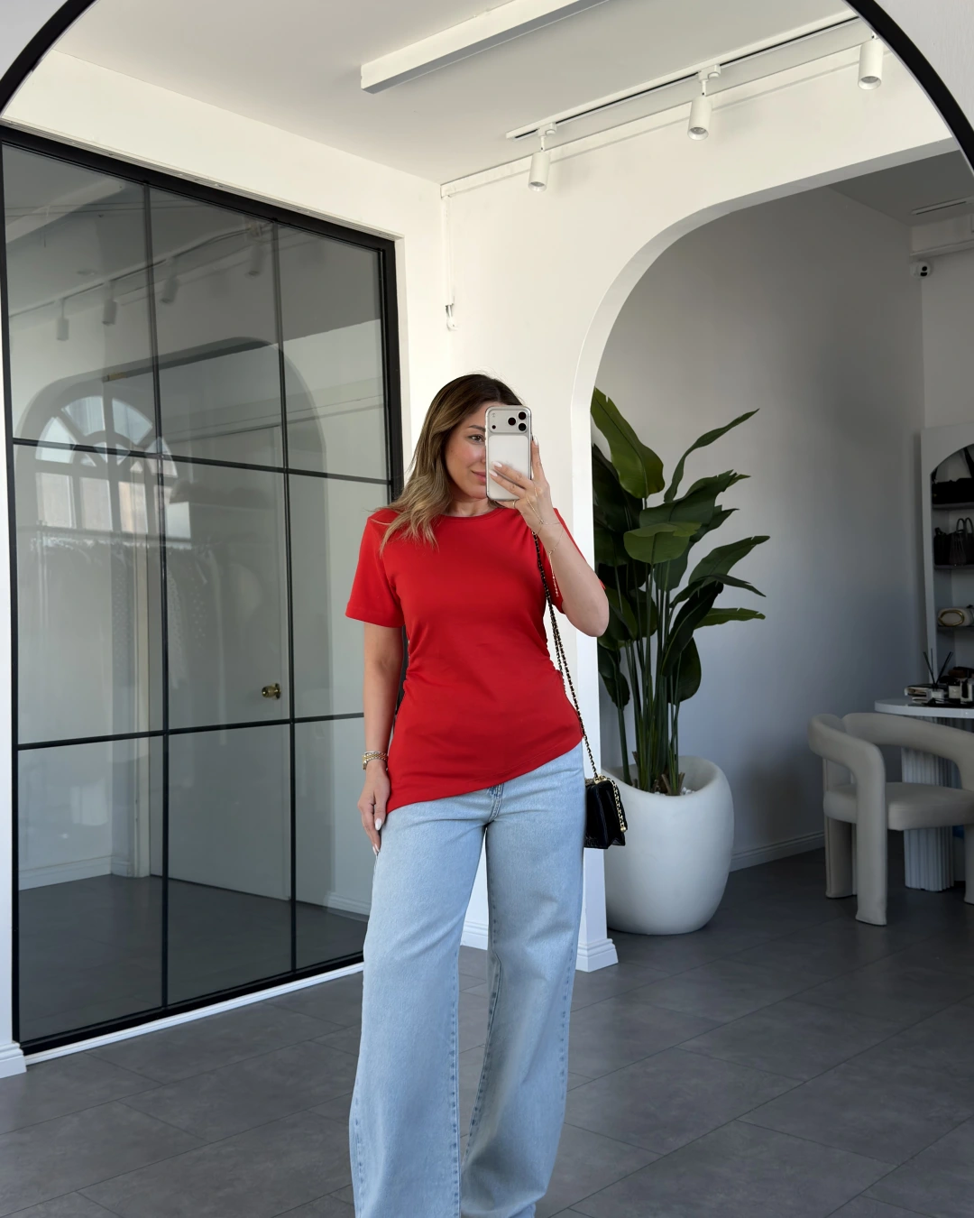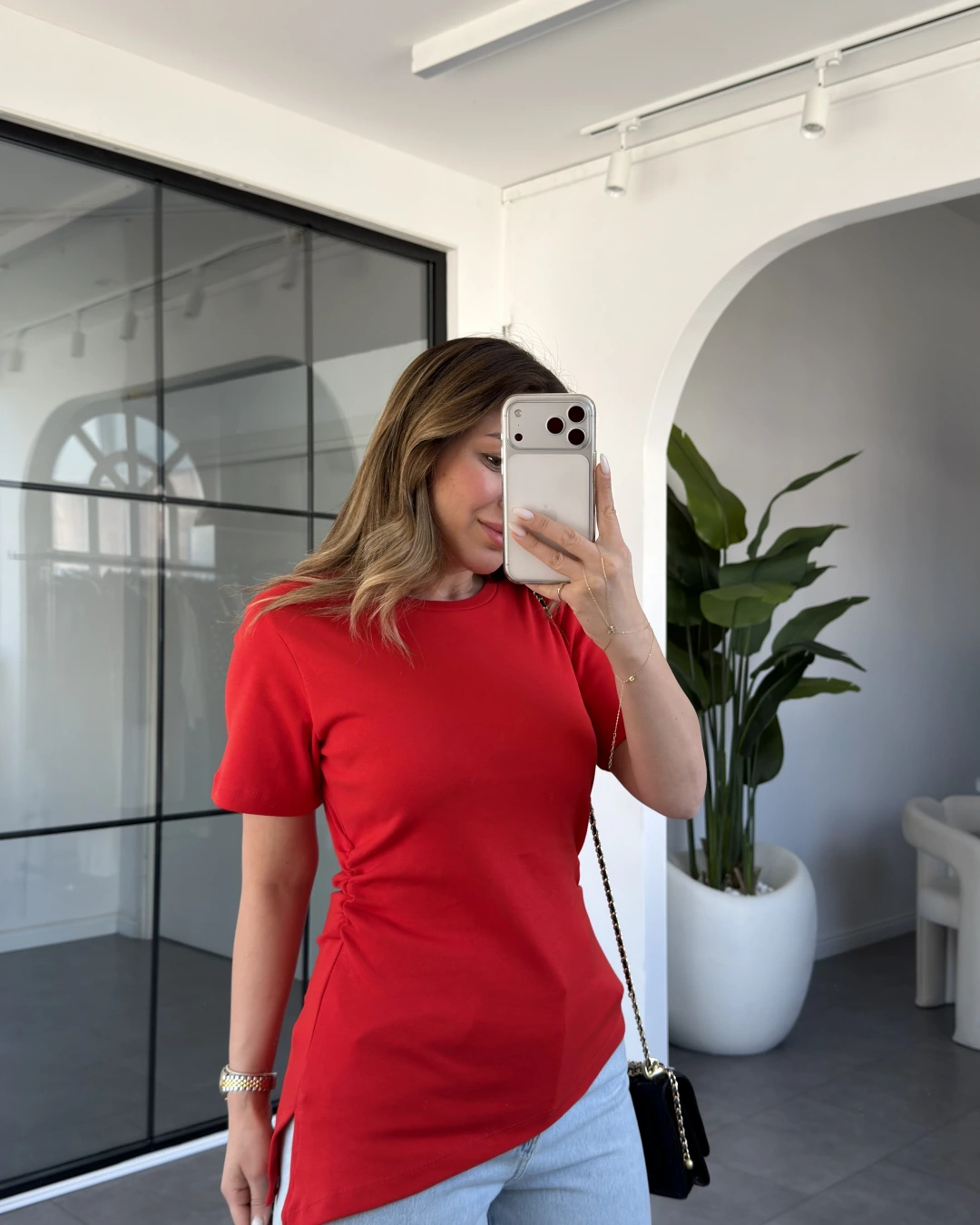 KIRMIZI YANI BÜZGÜLÜ T-SHIRT 22982