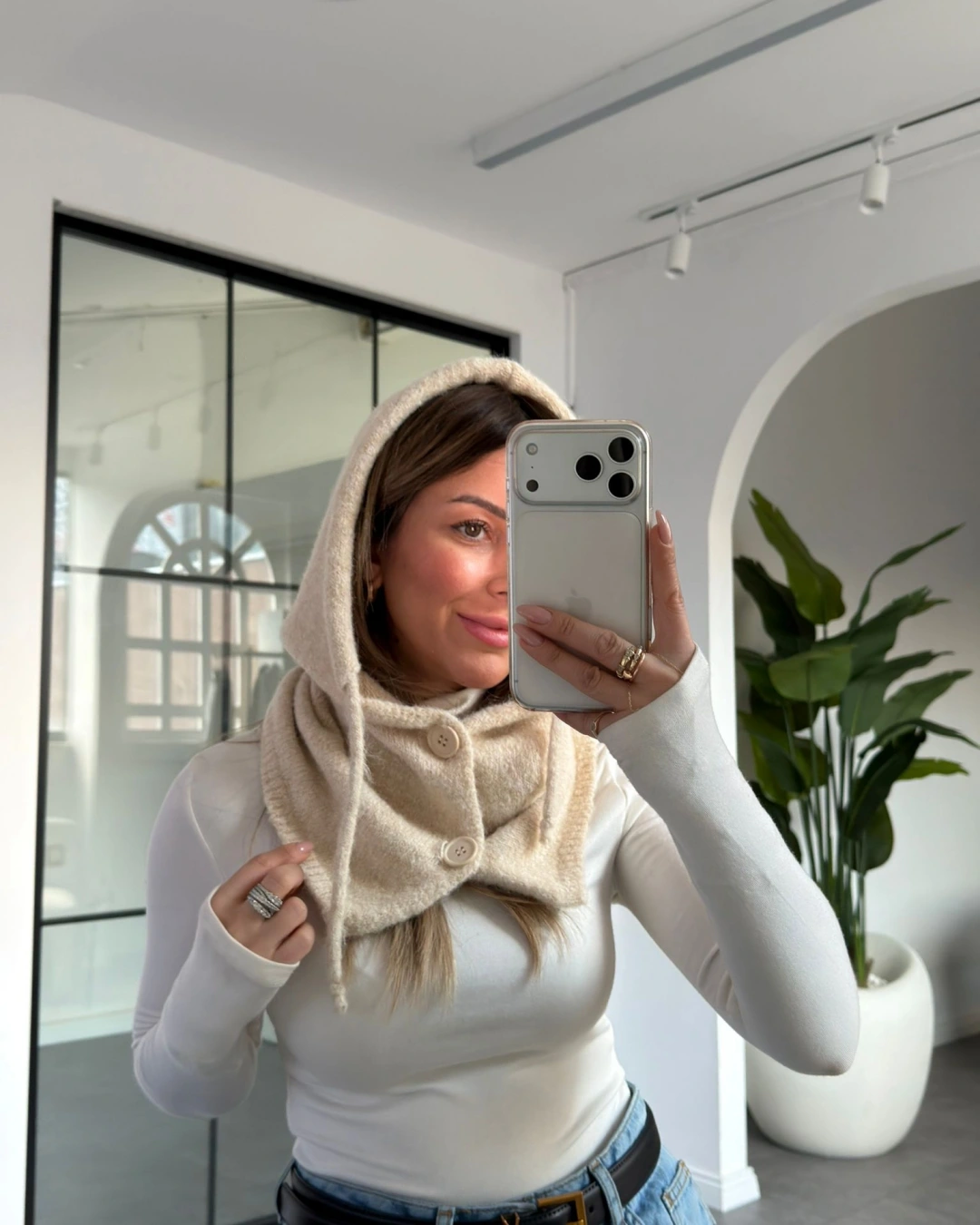 KREM DÜĞME DETAY BALACLAVA ŞAPKA