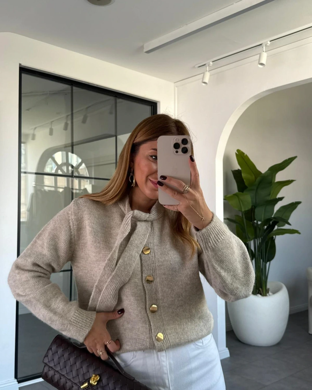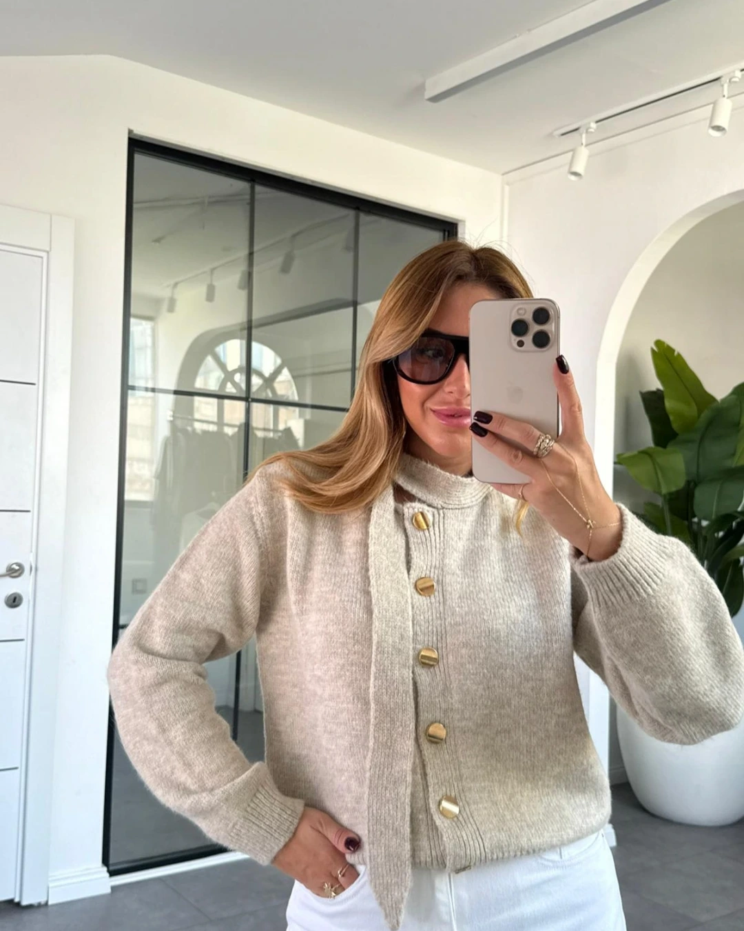 KREM GOLD DÜĞMELİ FULARLI HIRKA
