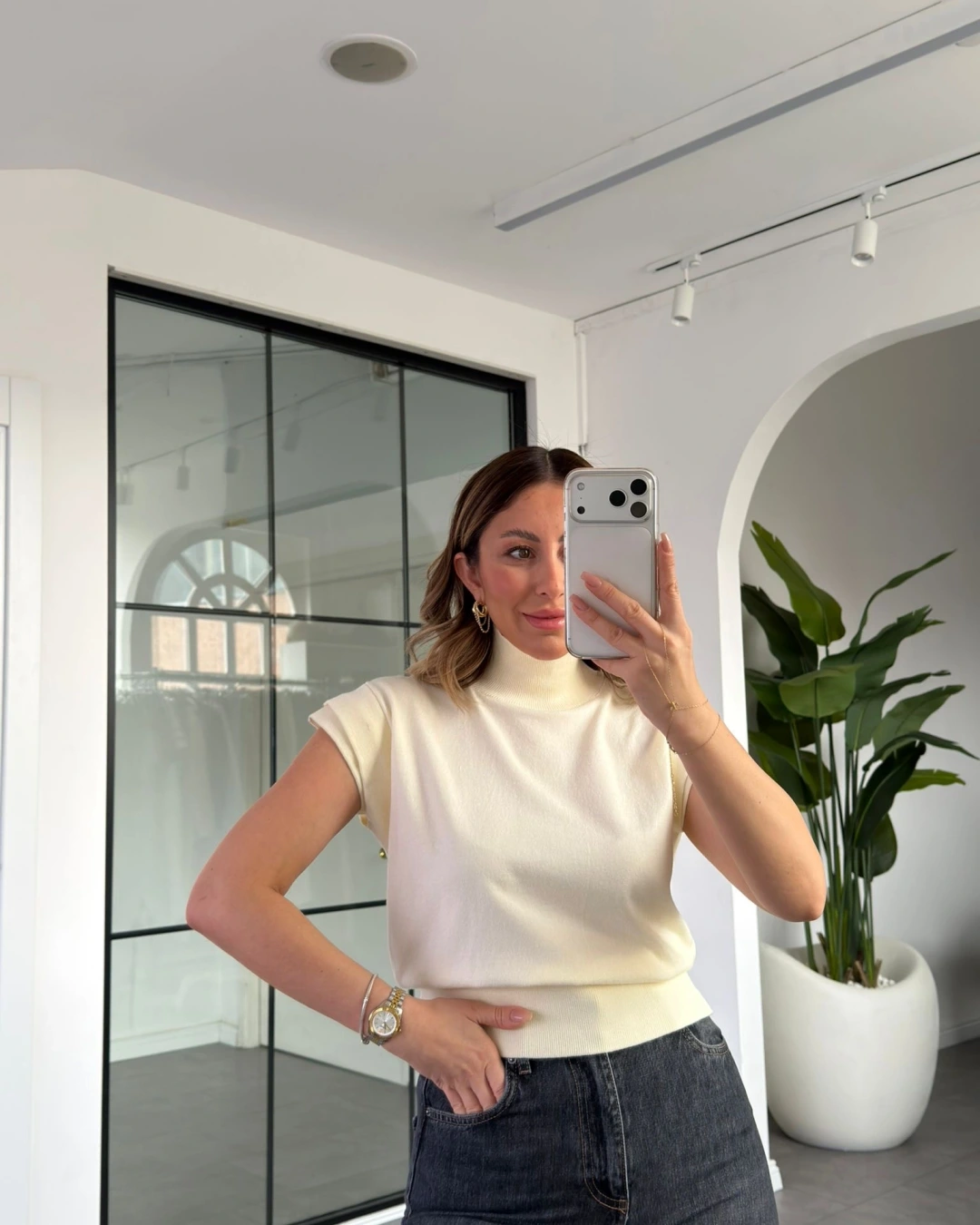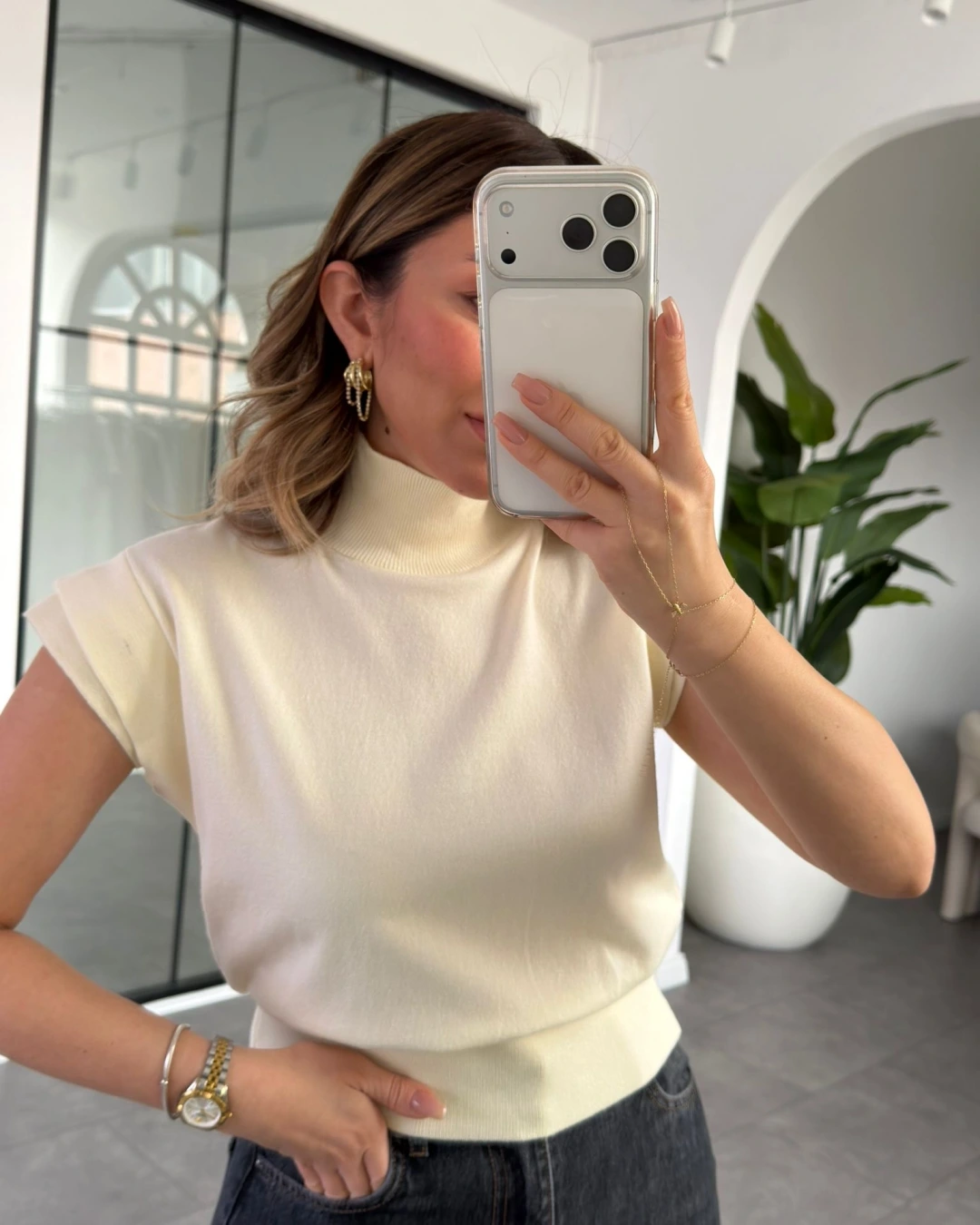 KREM KISA KOL TRİKO BLUZ