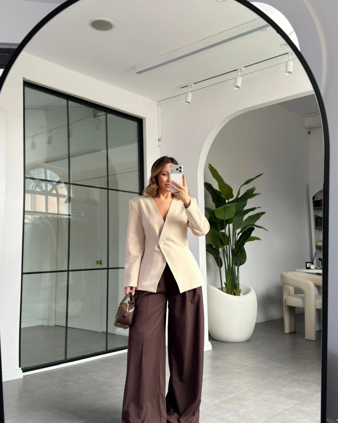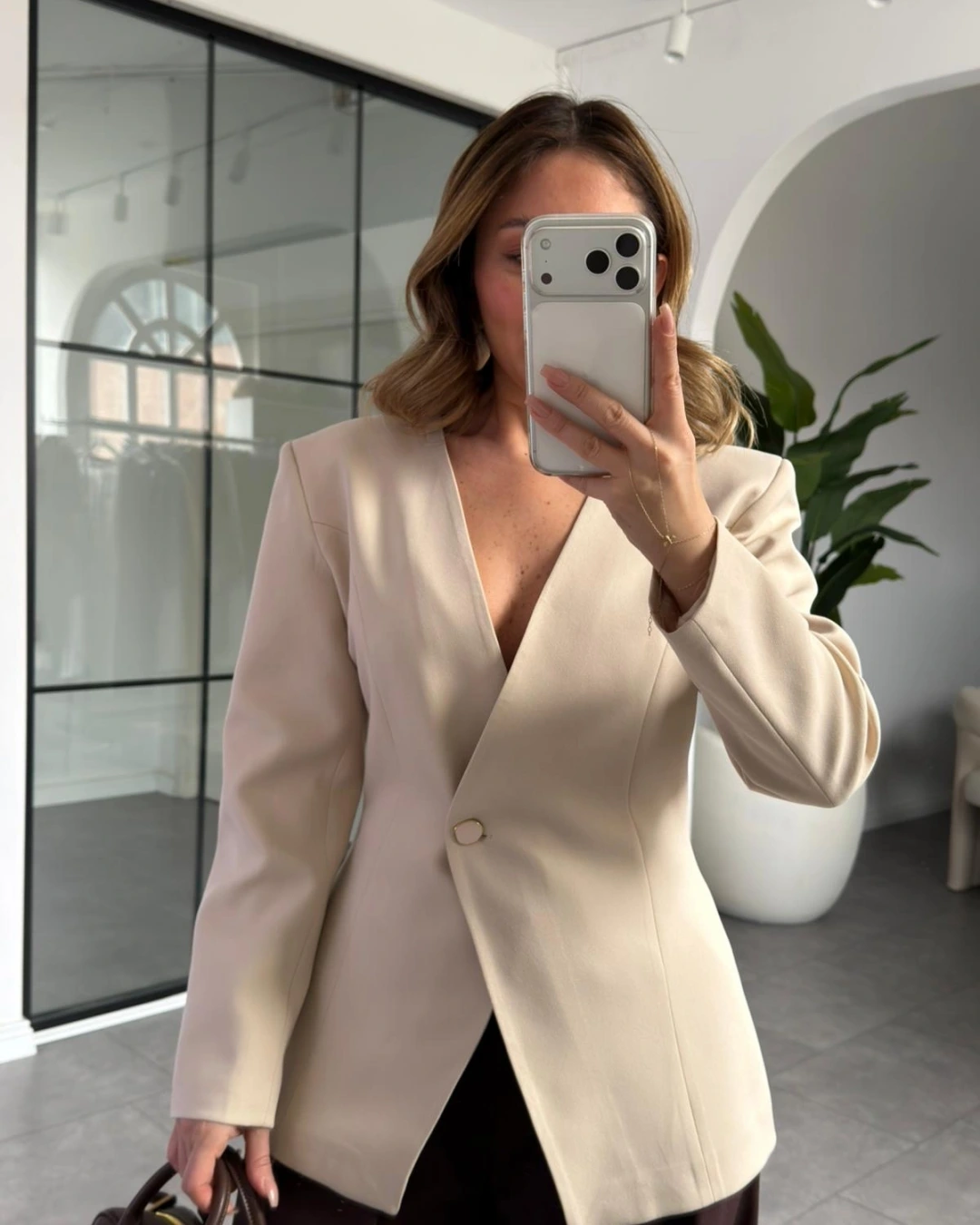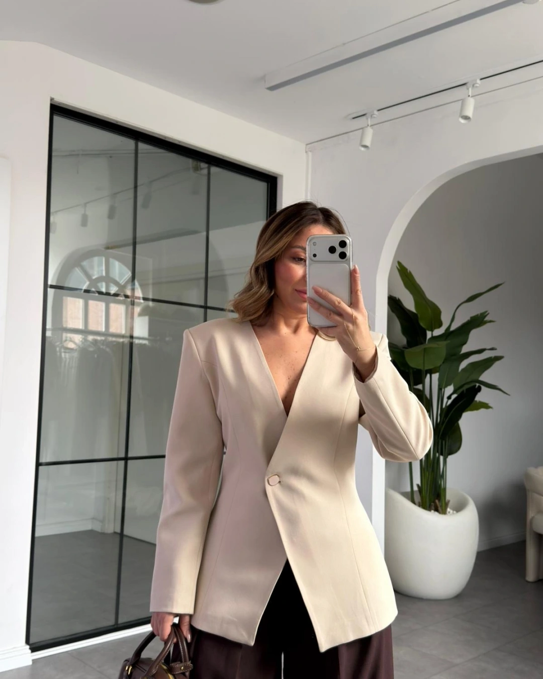 KREM LUNA BELDEN OTURTMALI BLAZER CEKET