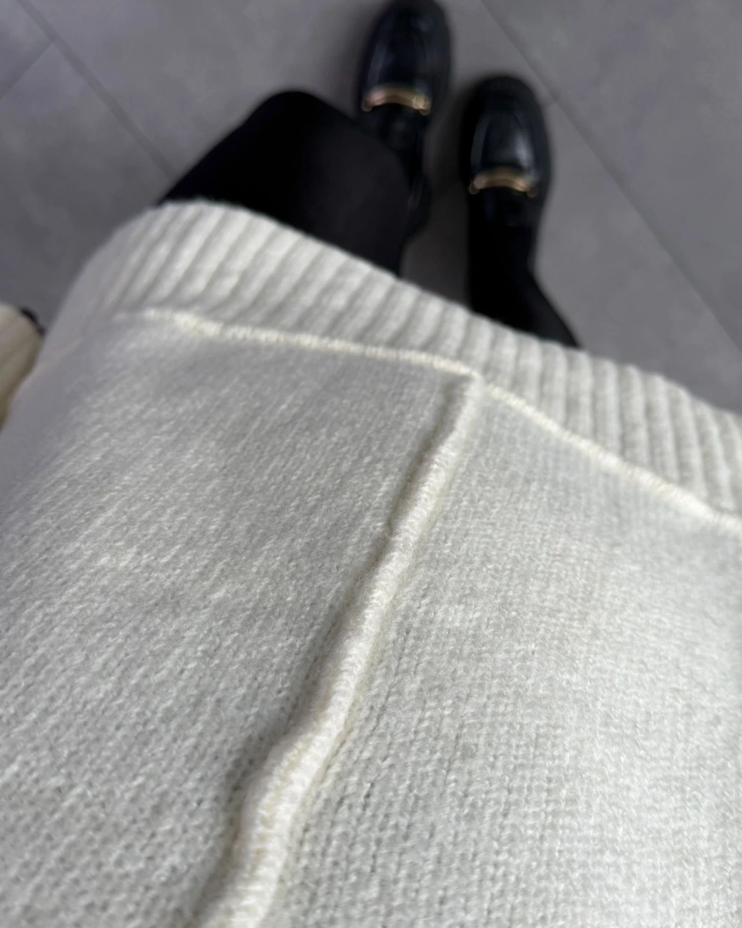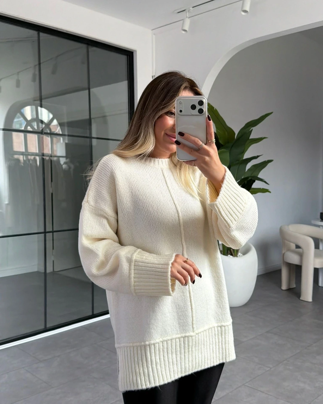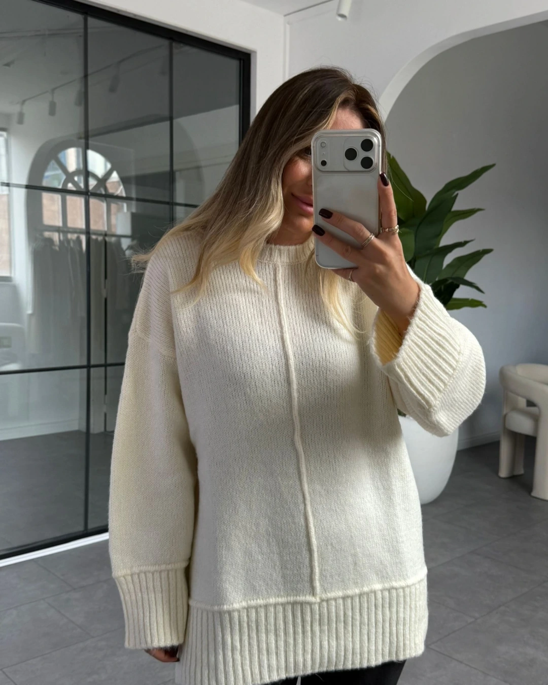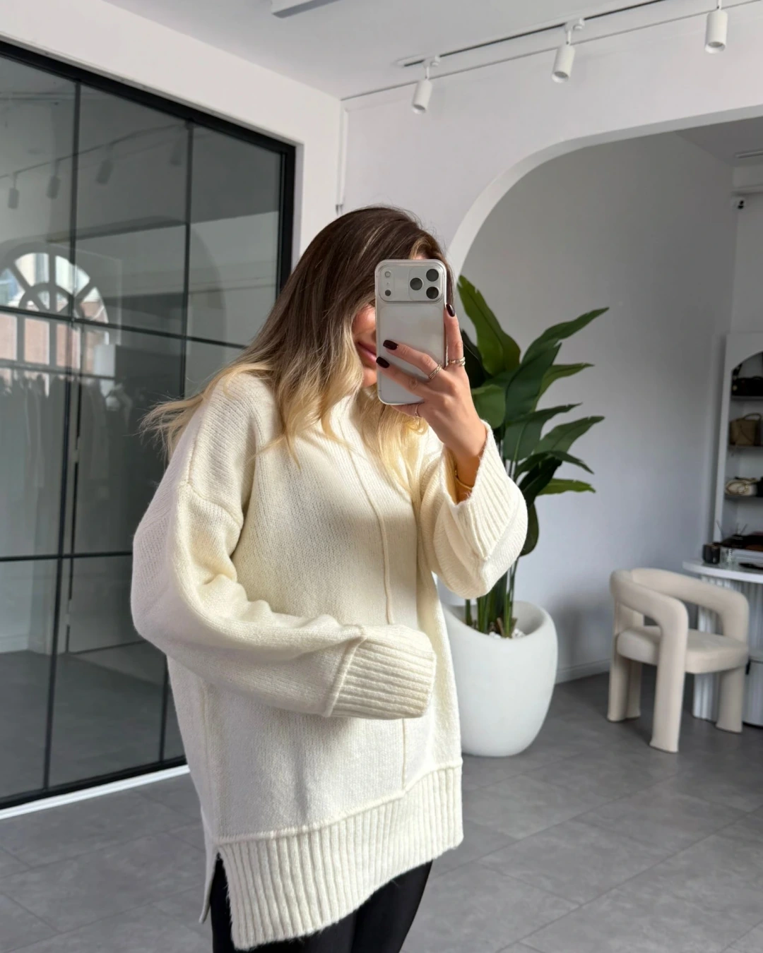 KREM ÖN DİKİŞ DETAYLI KAZAK