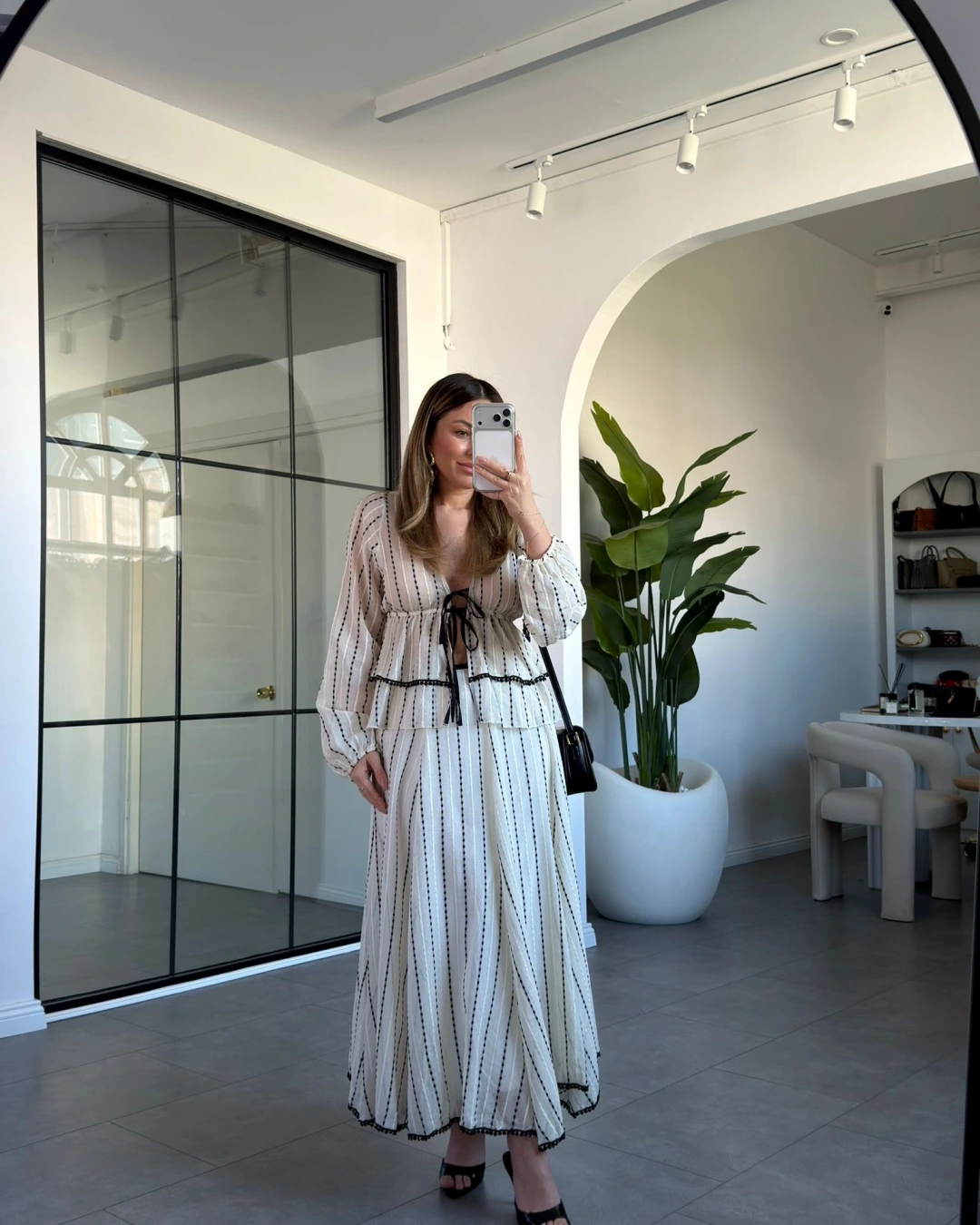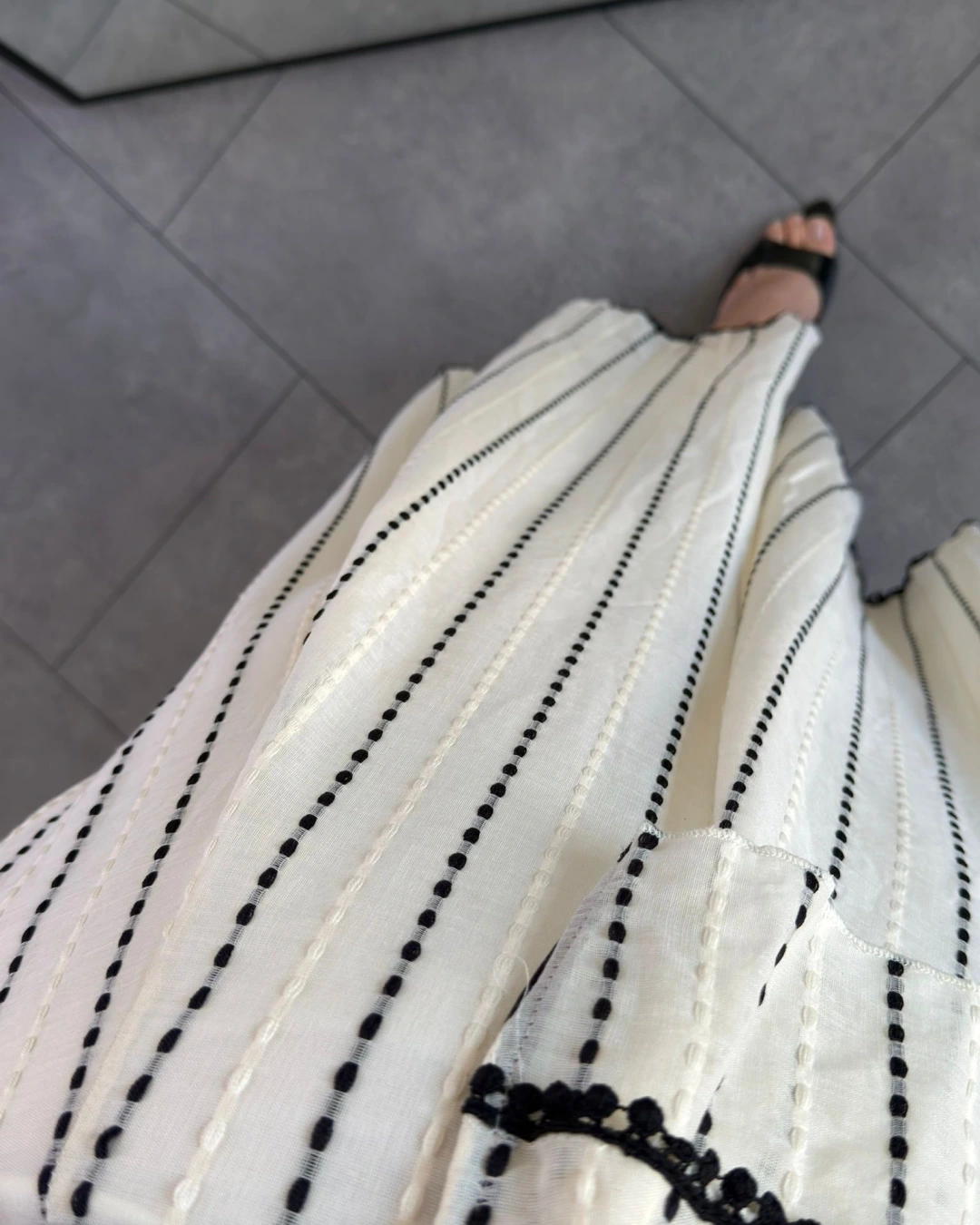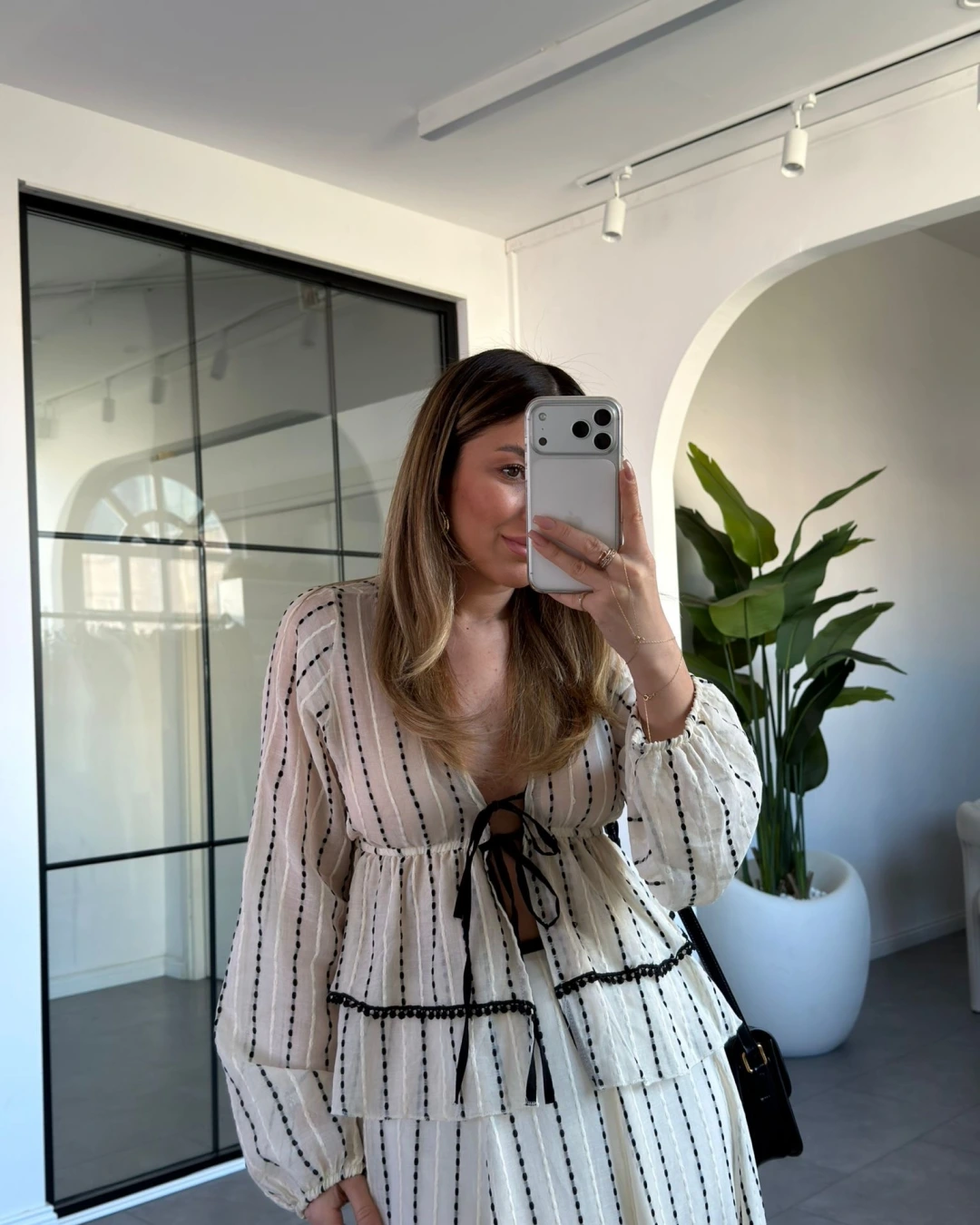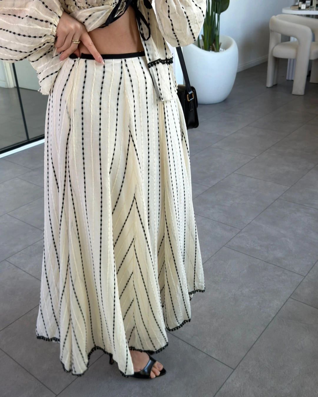 KREM ÖNDEN BAĞLAMA DETAYLI NAKIŞLI BLUZ ETEK TAKIM 9898