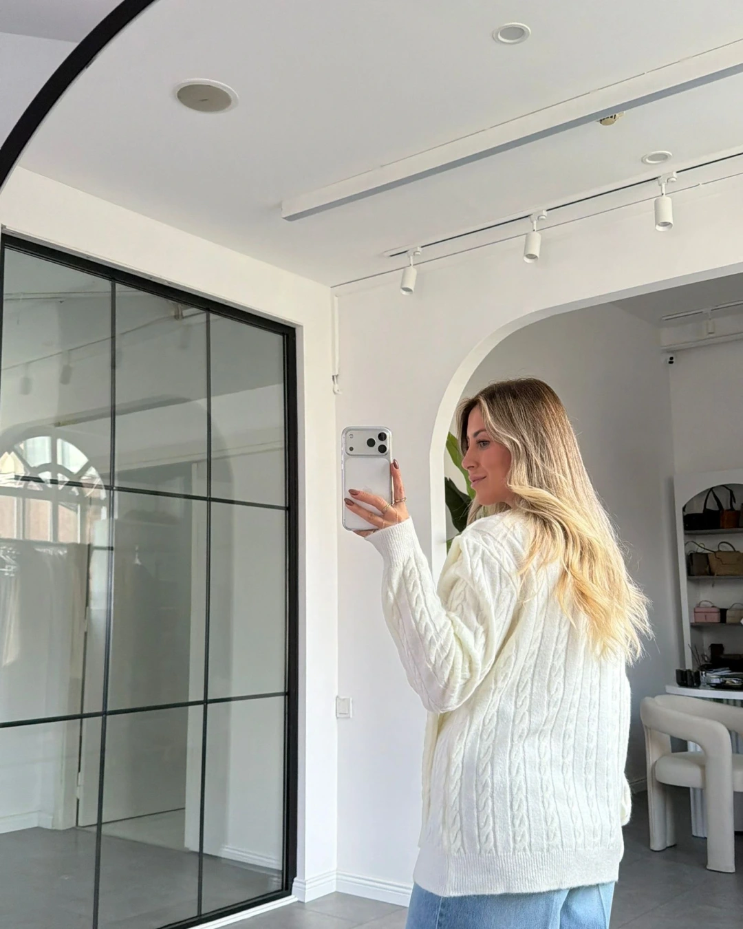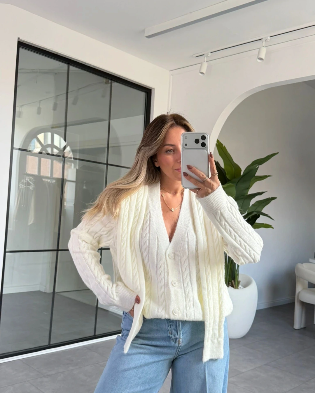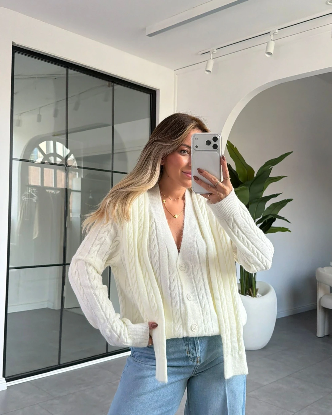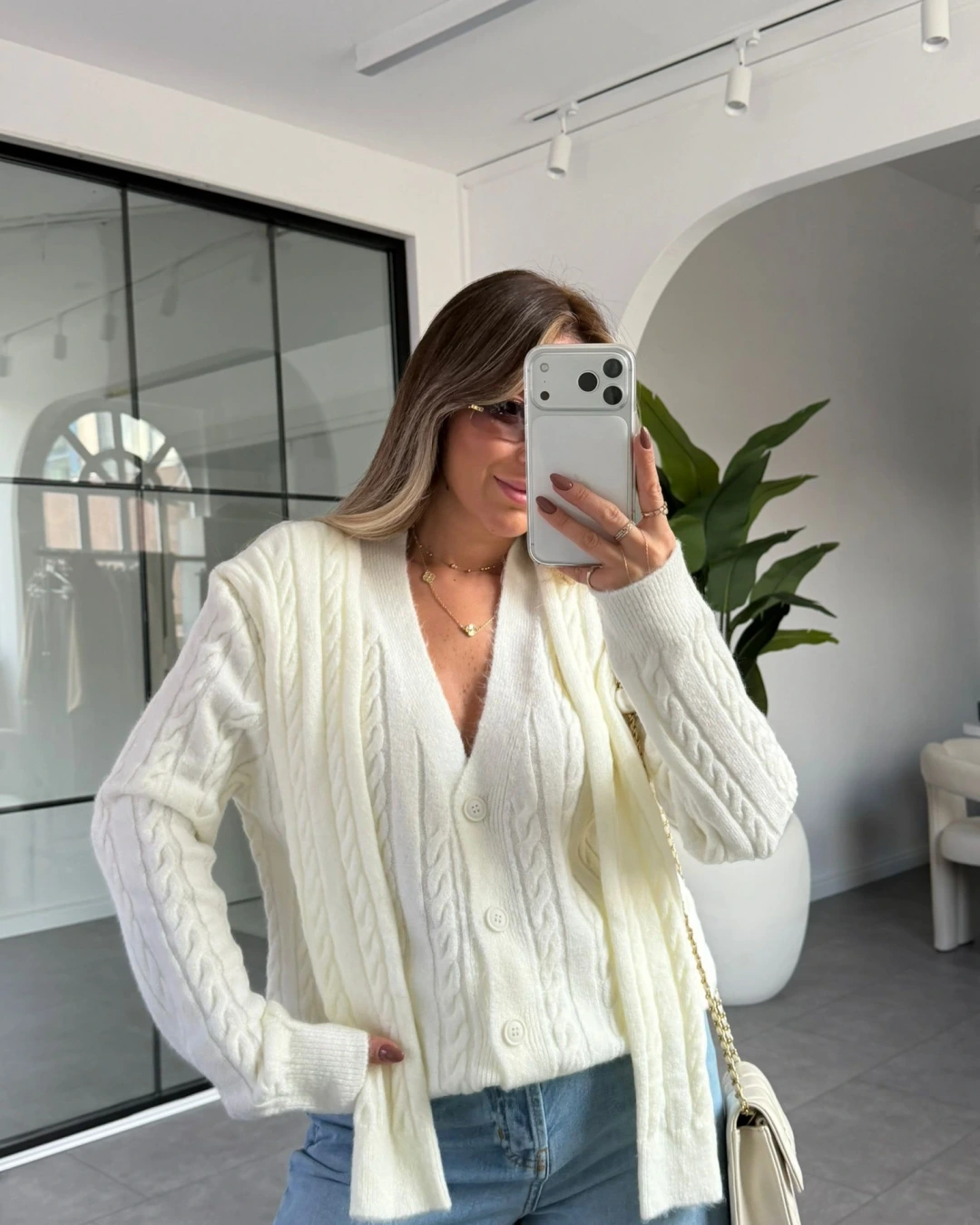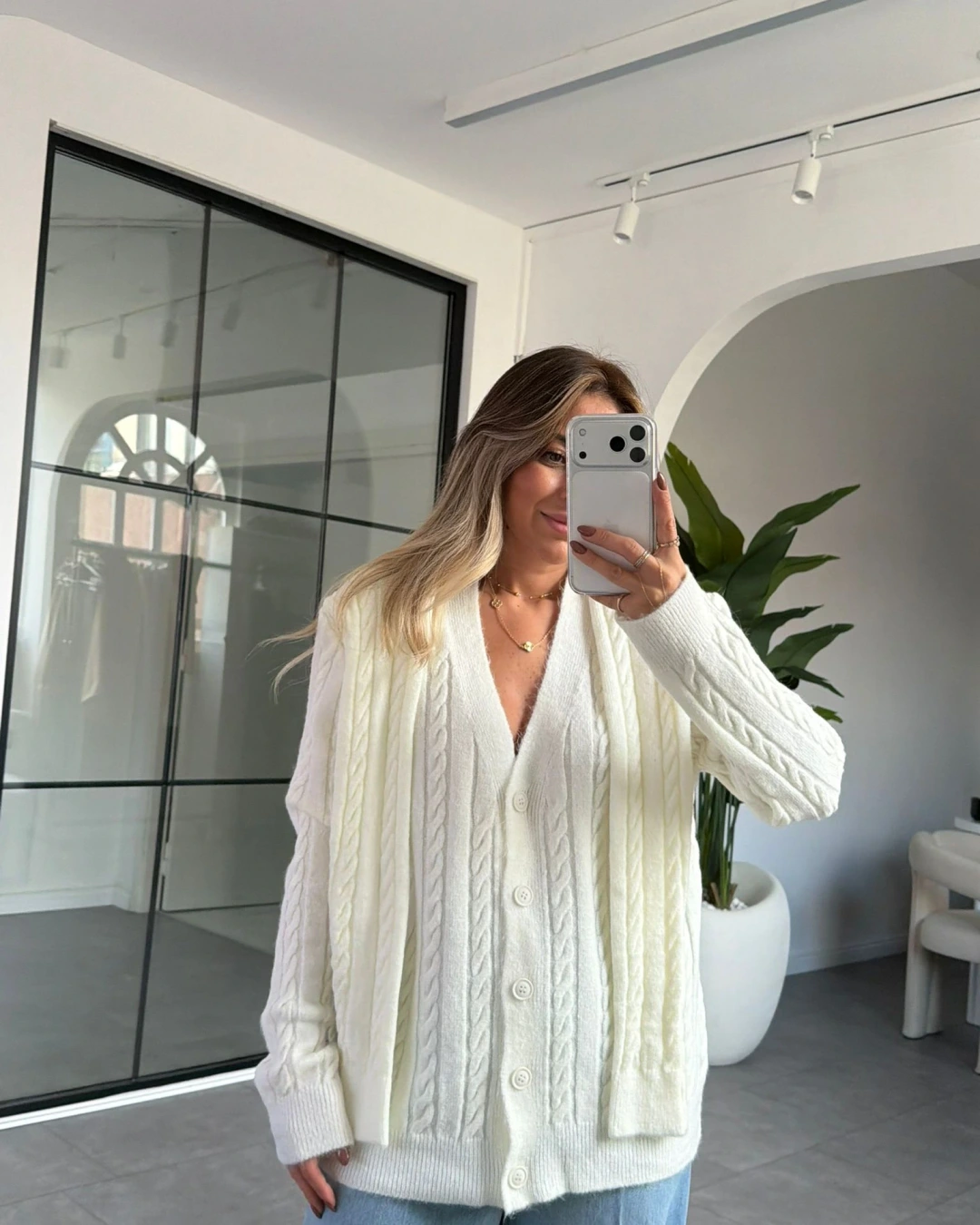 KREM ŞAL DETAYLI HIRKA