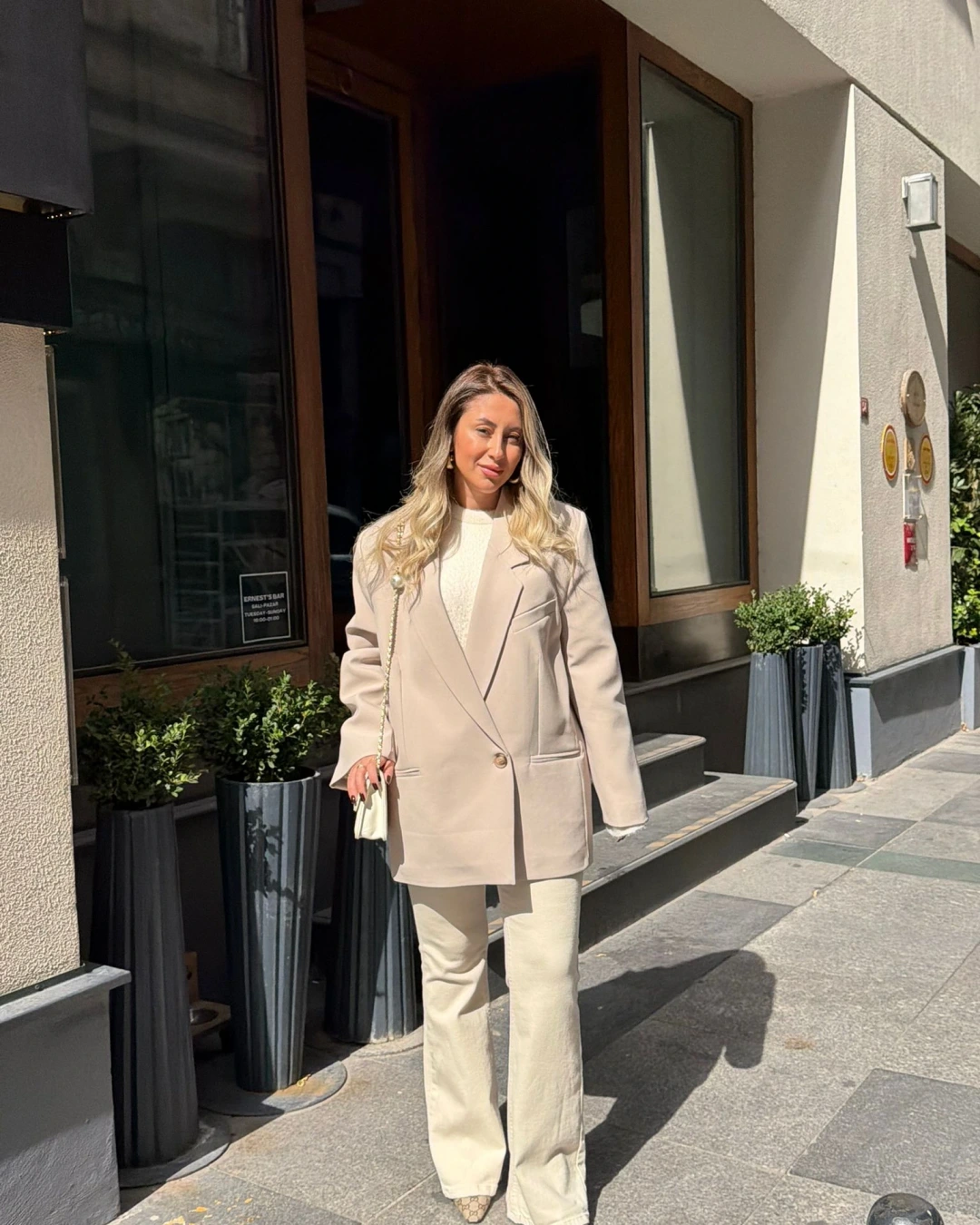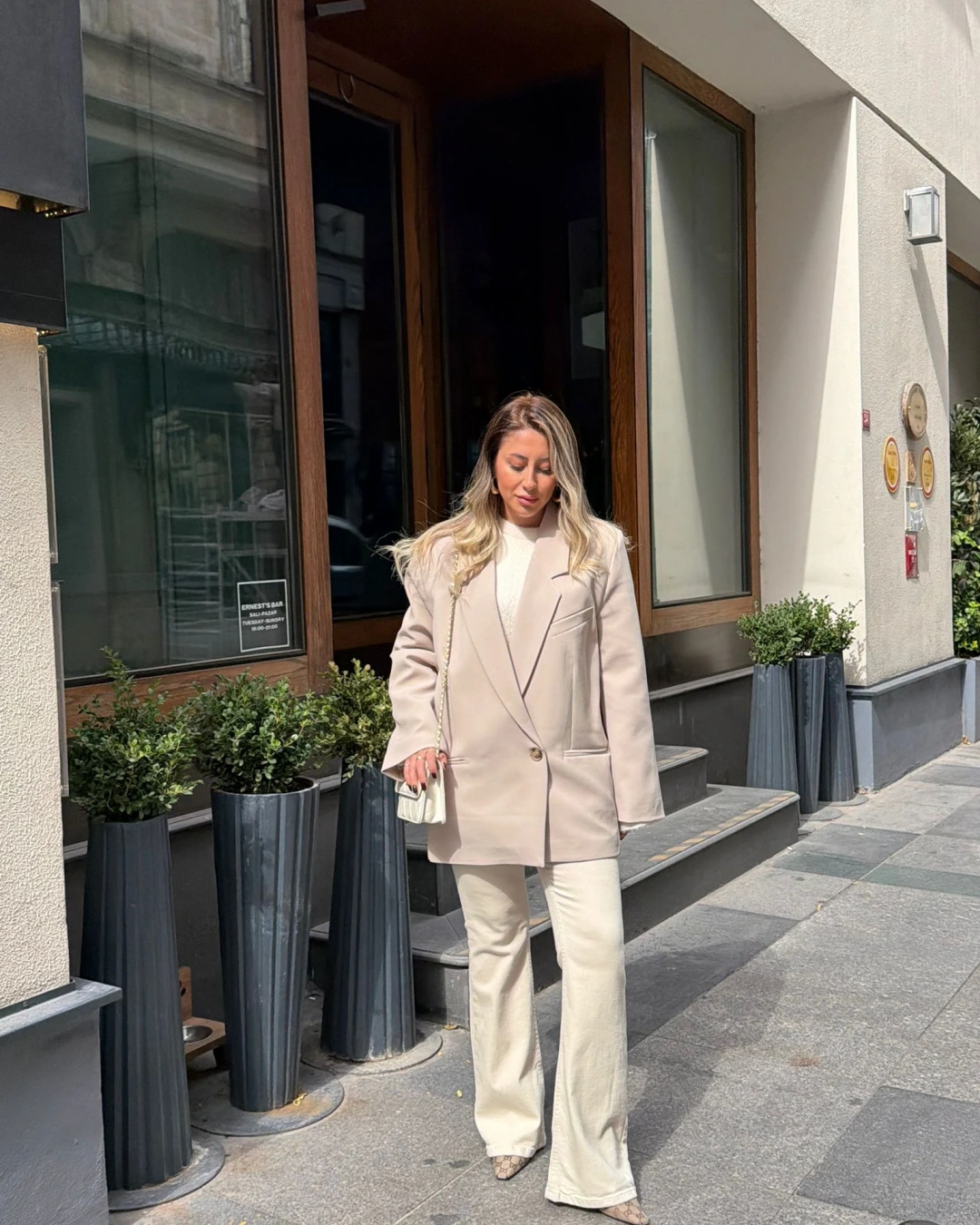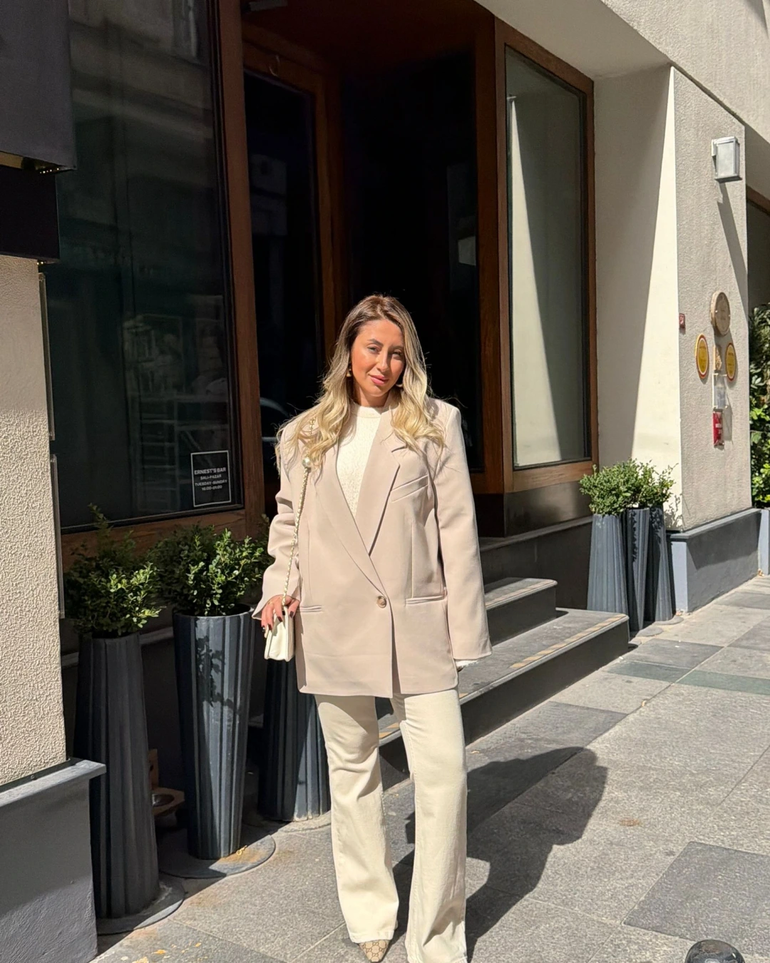 KREM TEK DÜĞMELİ OVERSİZE BLAZER CEKET