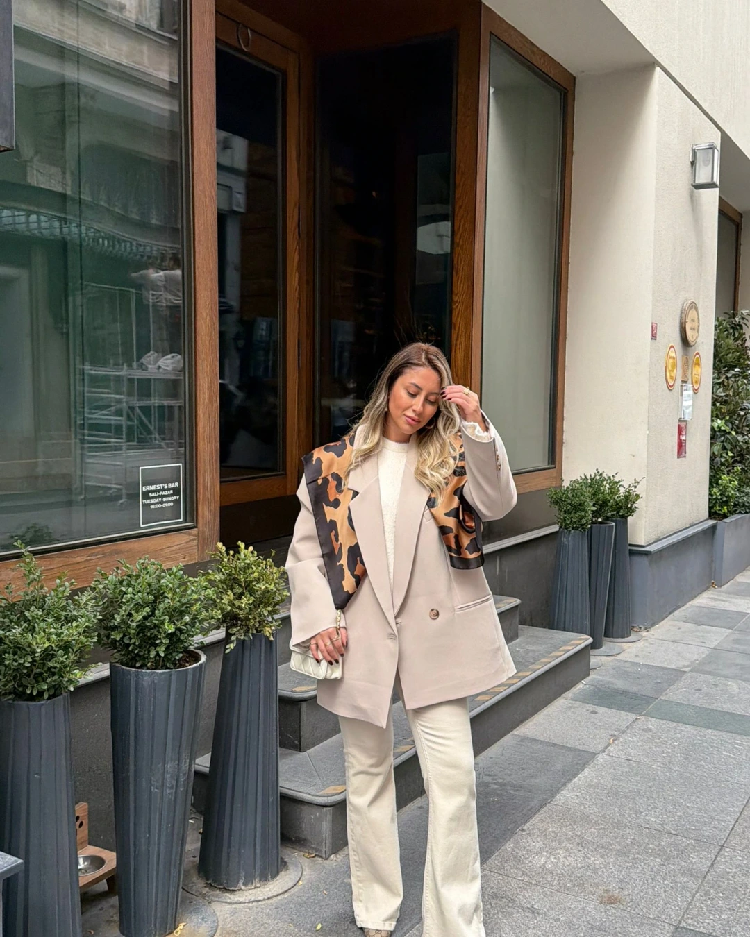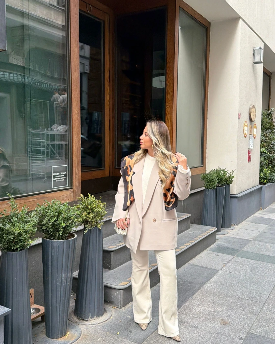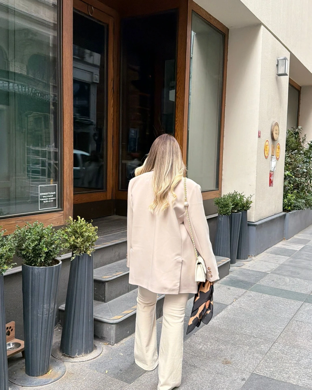 KREM TEK DÜĞMELİ OVERSİZE BLAZER CEKET