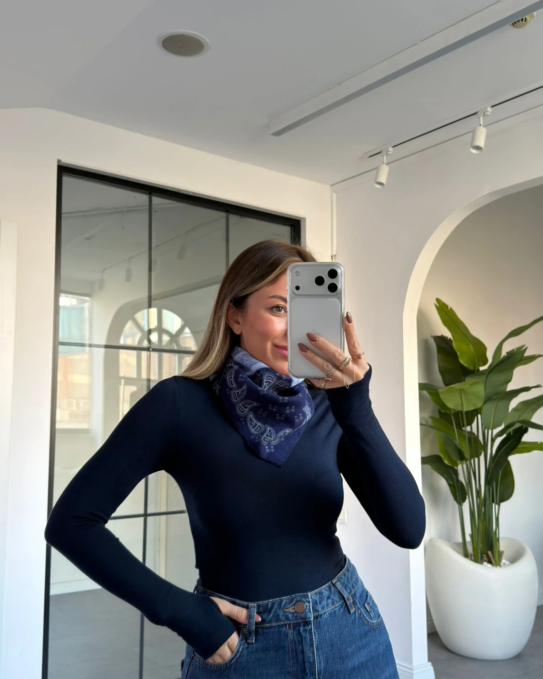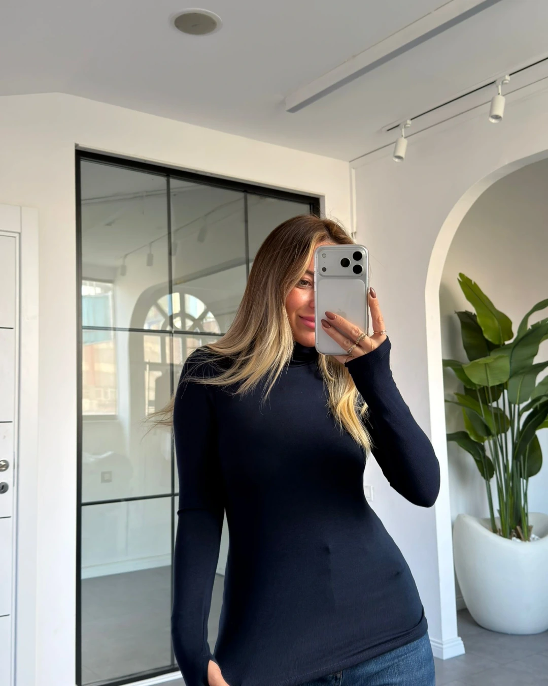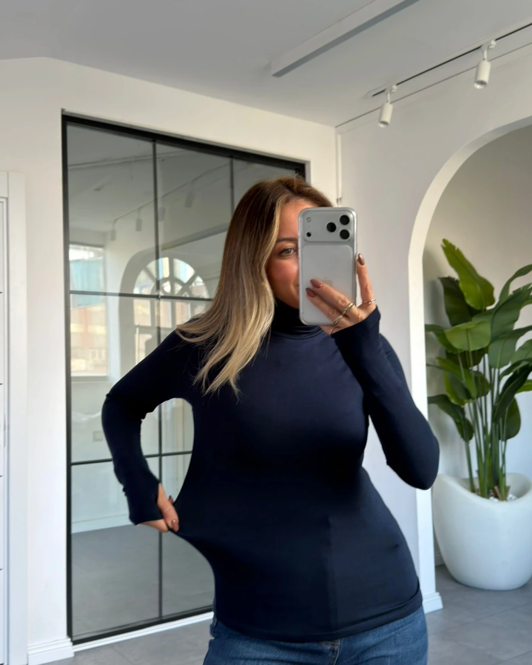 LACİVERT BALIKÇI YAKA PARMAK GEÇİRMELİ BLUZ
