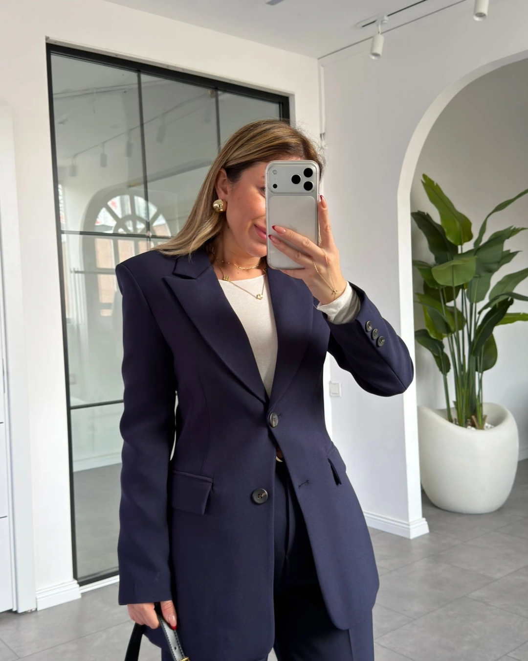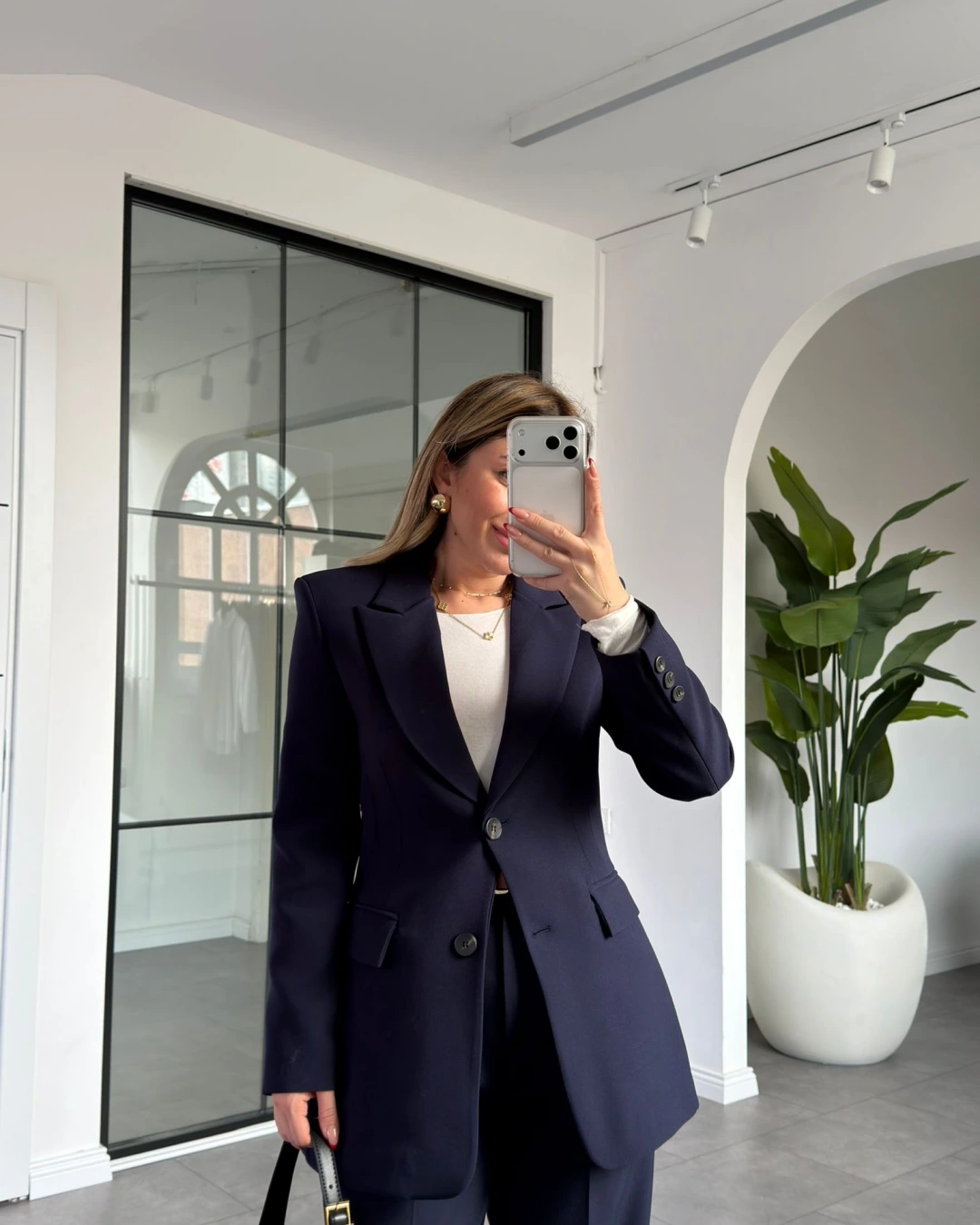 LACİVERT BELDEN OTURTMALI BLAZER CEKET
