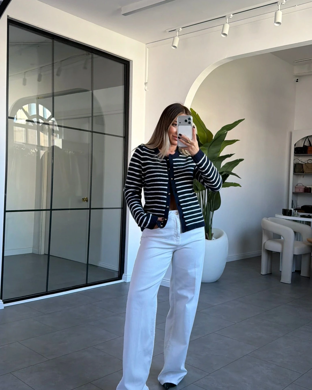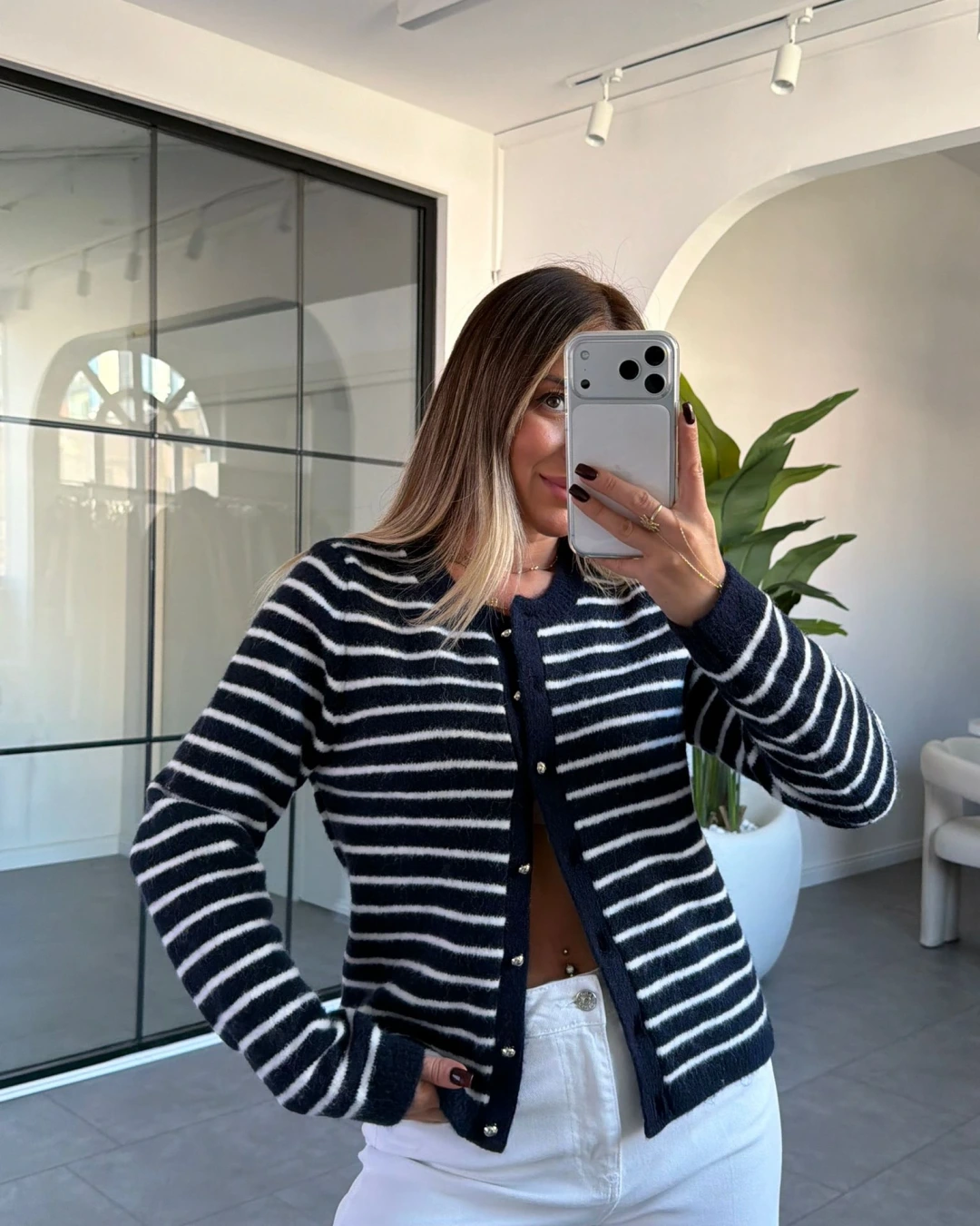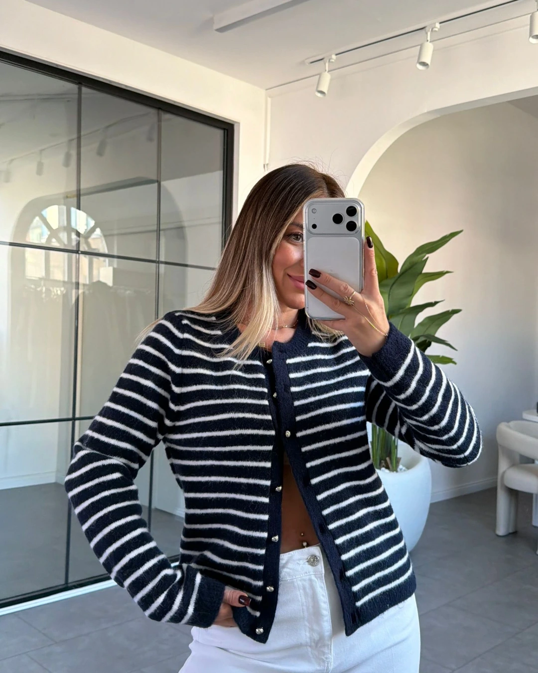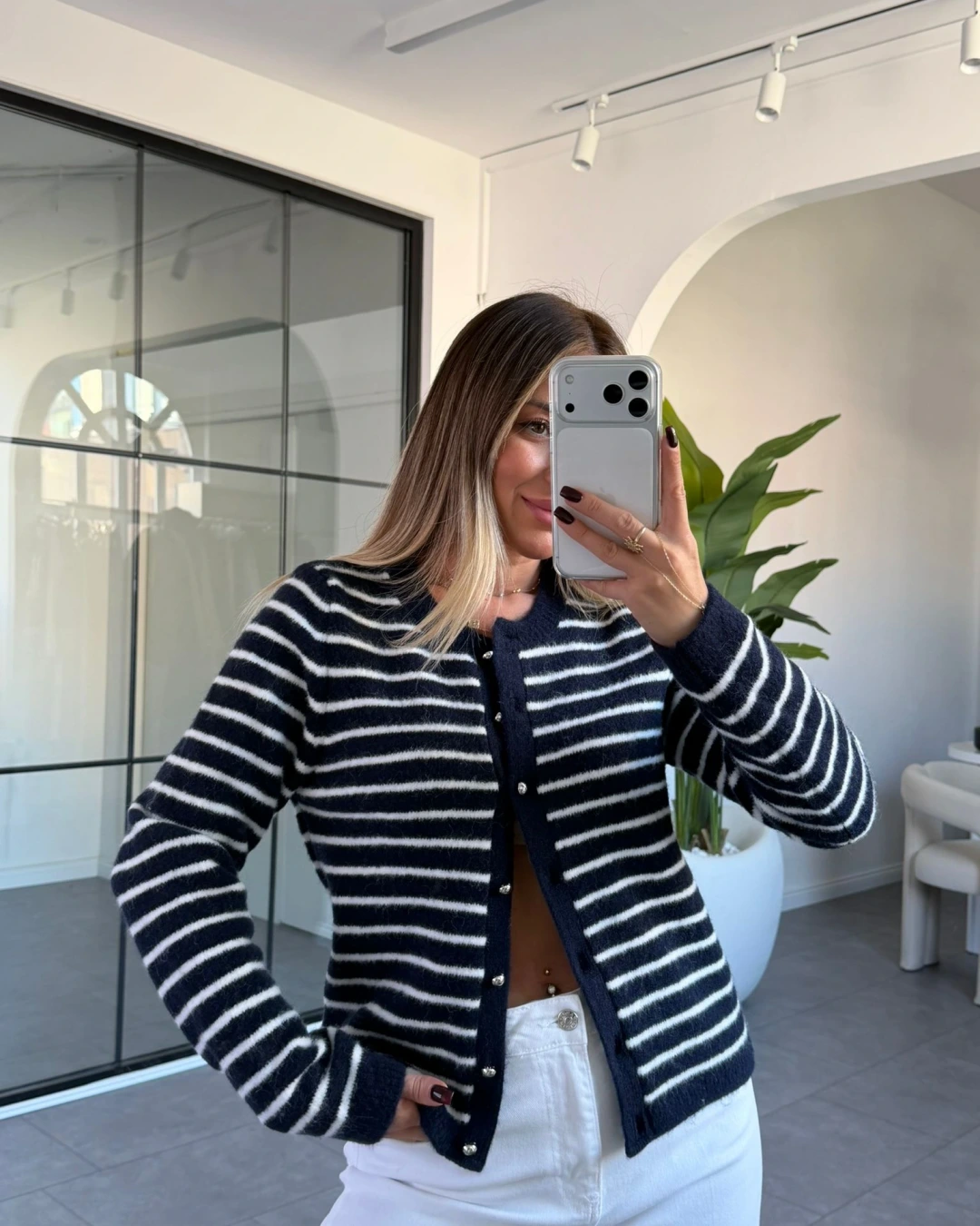 LACİVERT BEYAZ ÇİZGİLİ TRİKO HIRKA