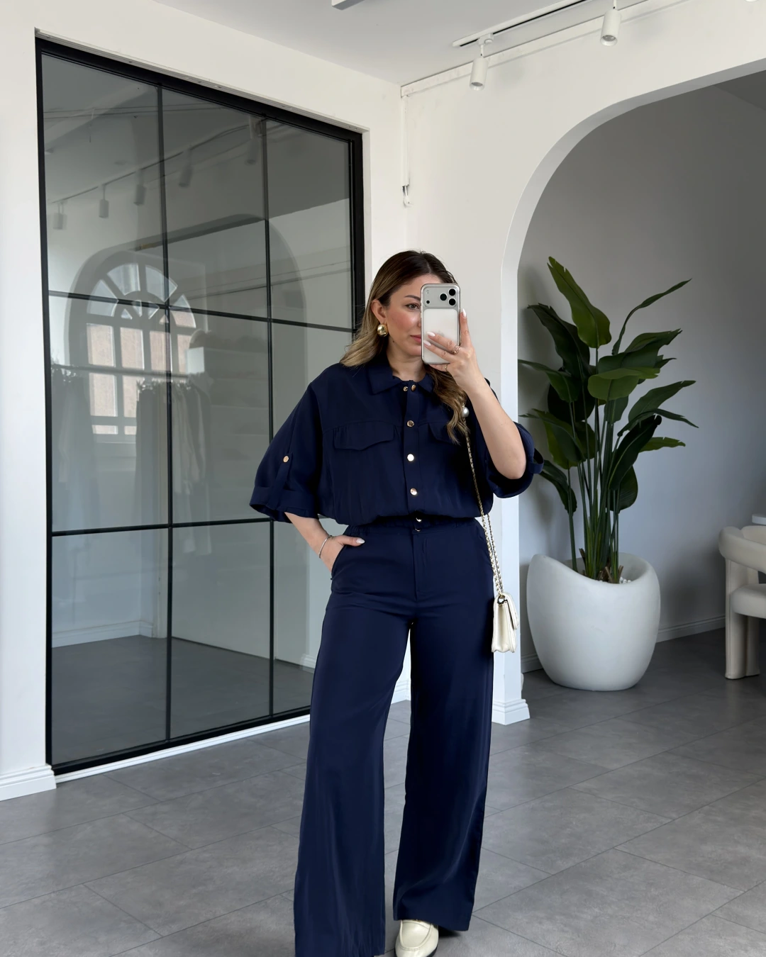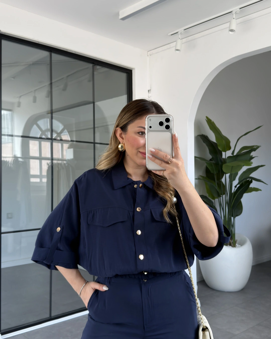 LACİVERT BOMBER CEKET ÇITÇIT DETAYLI TAKIM