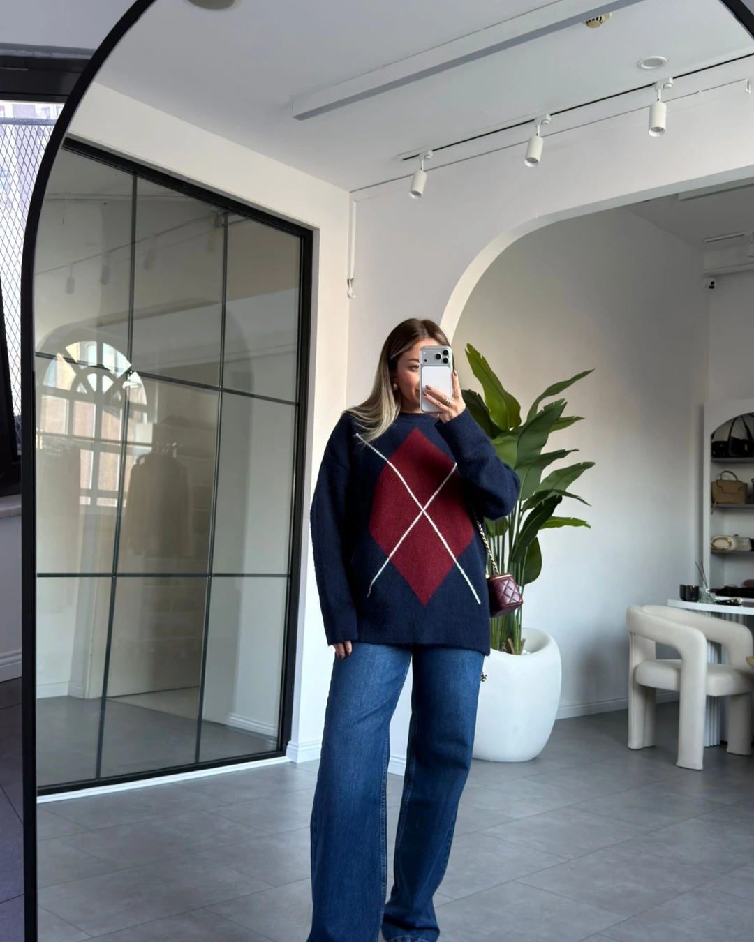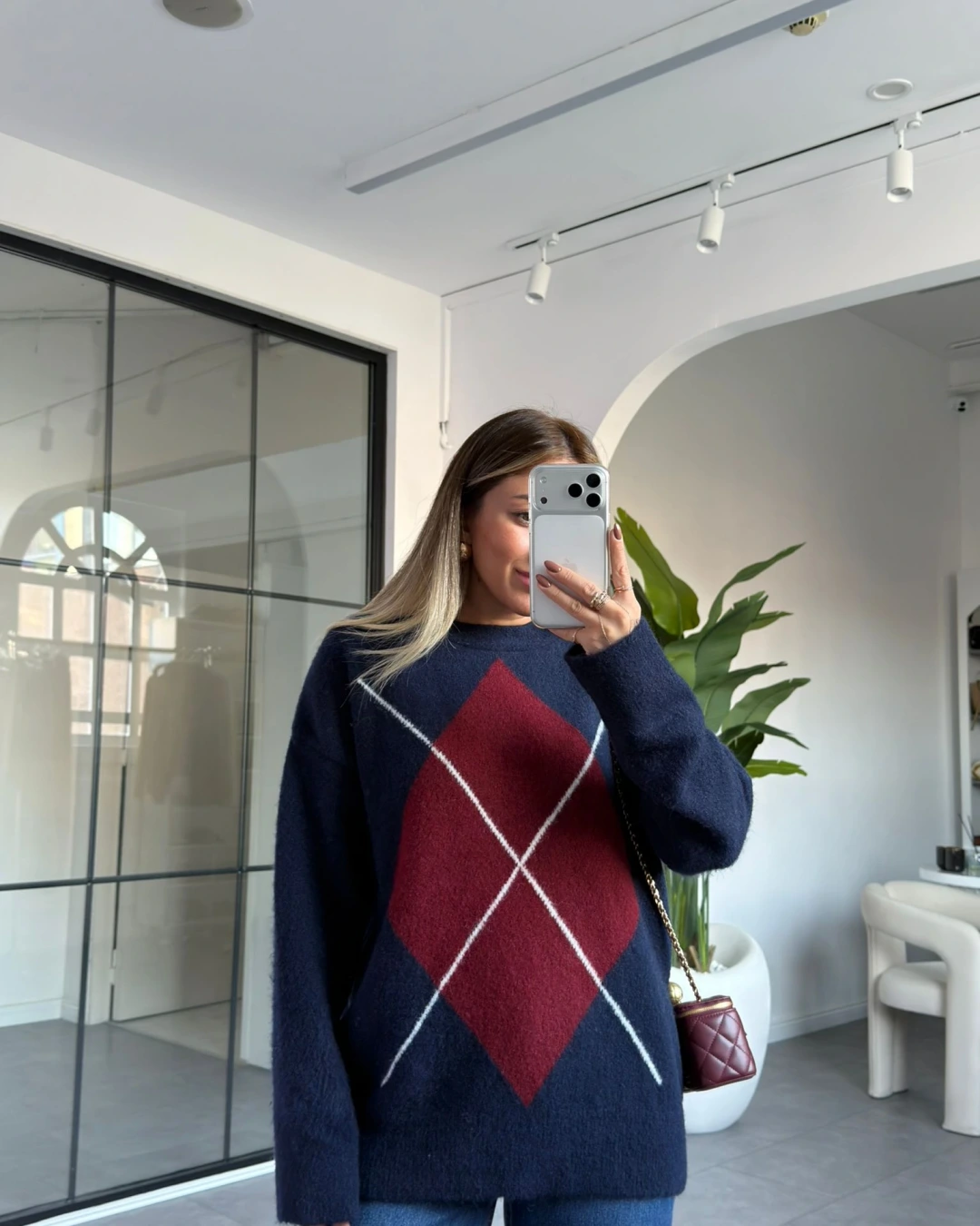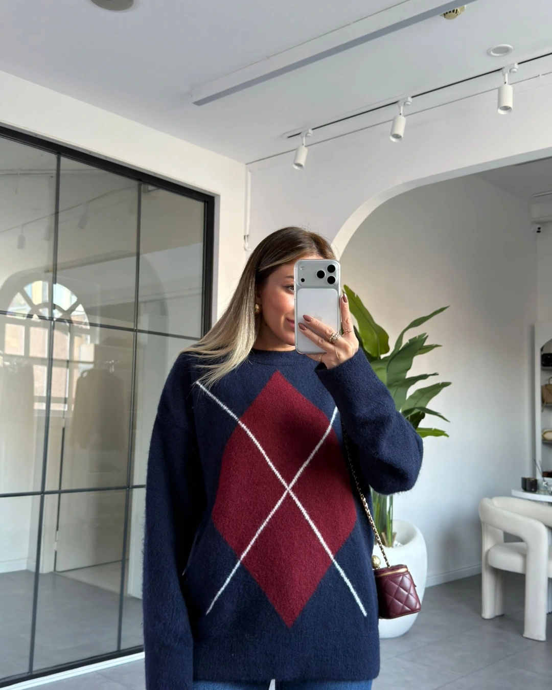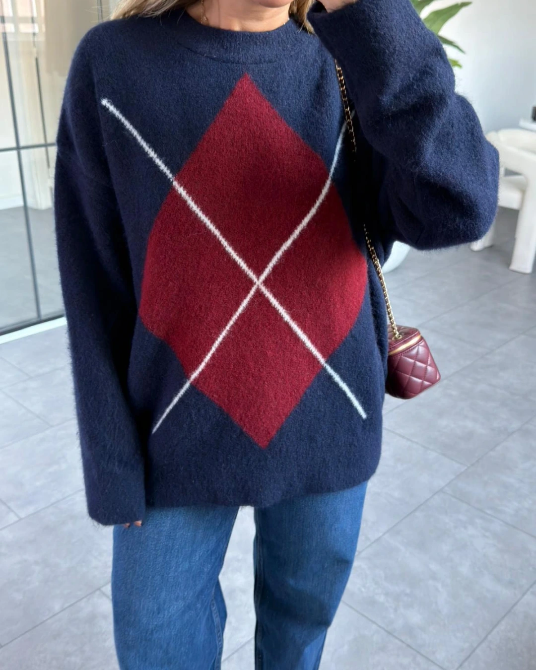 LACİVERT BORDO BAKLAVA DESEN KAZAK