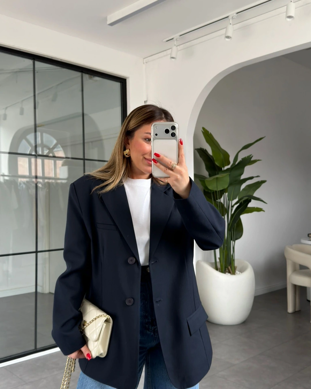 LACİVERT ÇİFT CEPLİ KRUVAZE YAKA CEKET