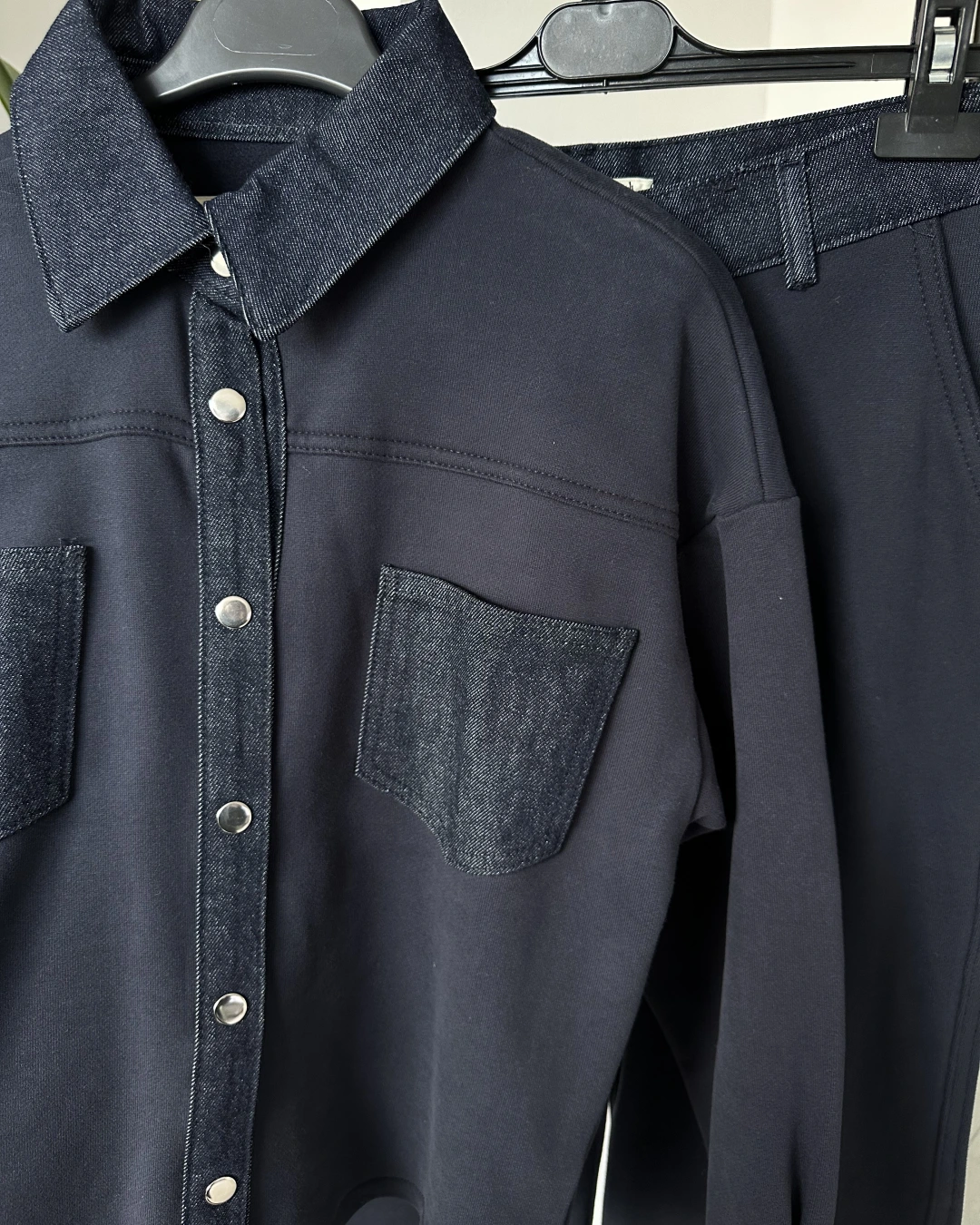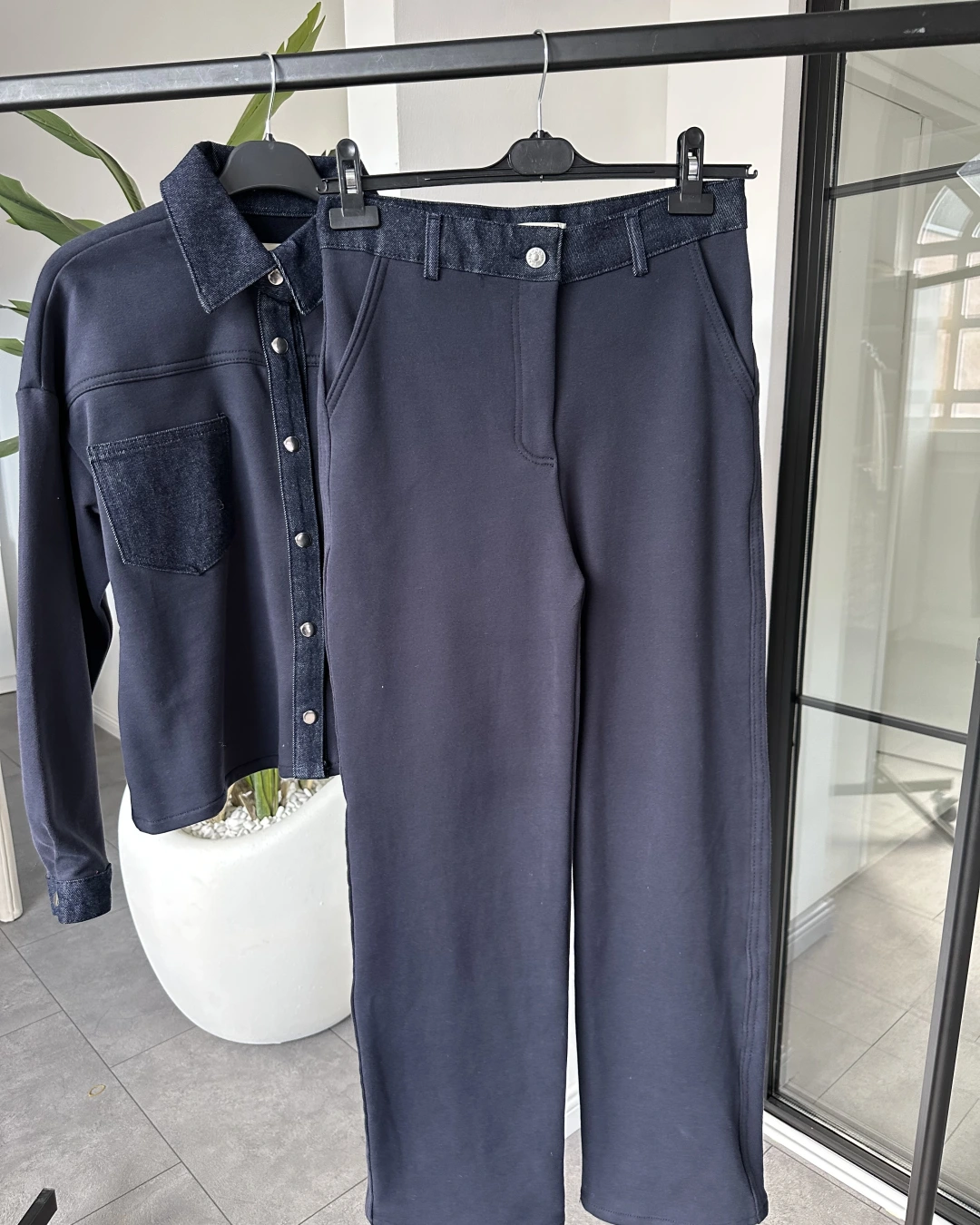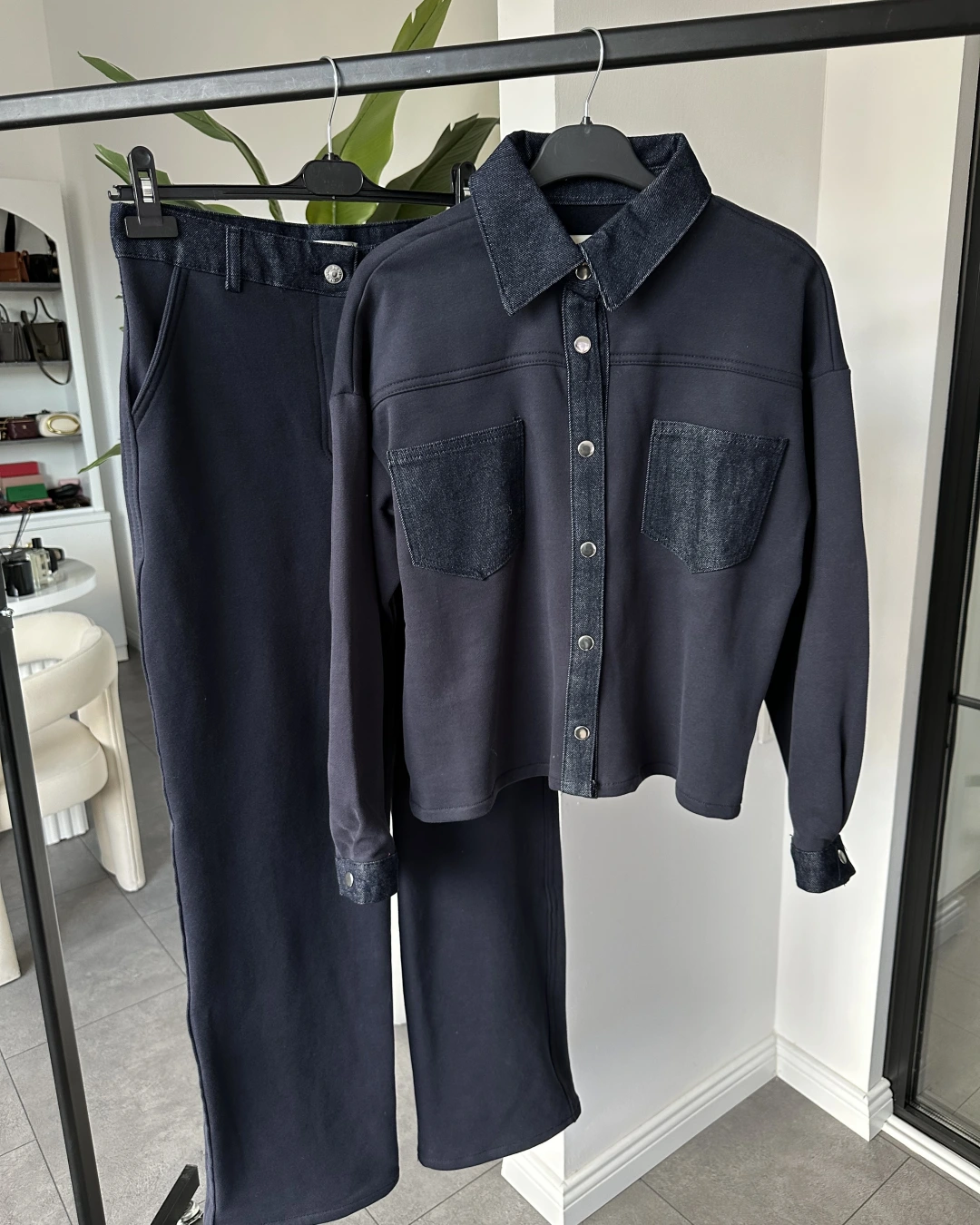 LACİVERT DENİM GARNİLİ GÖMLEK PANTOLON TAKIM