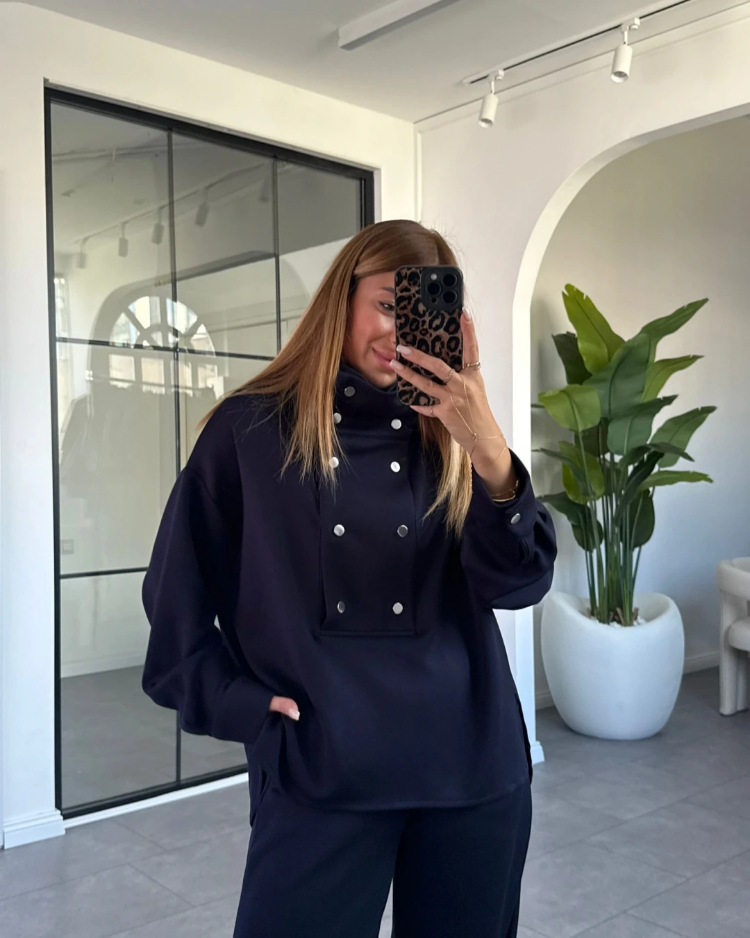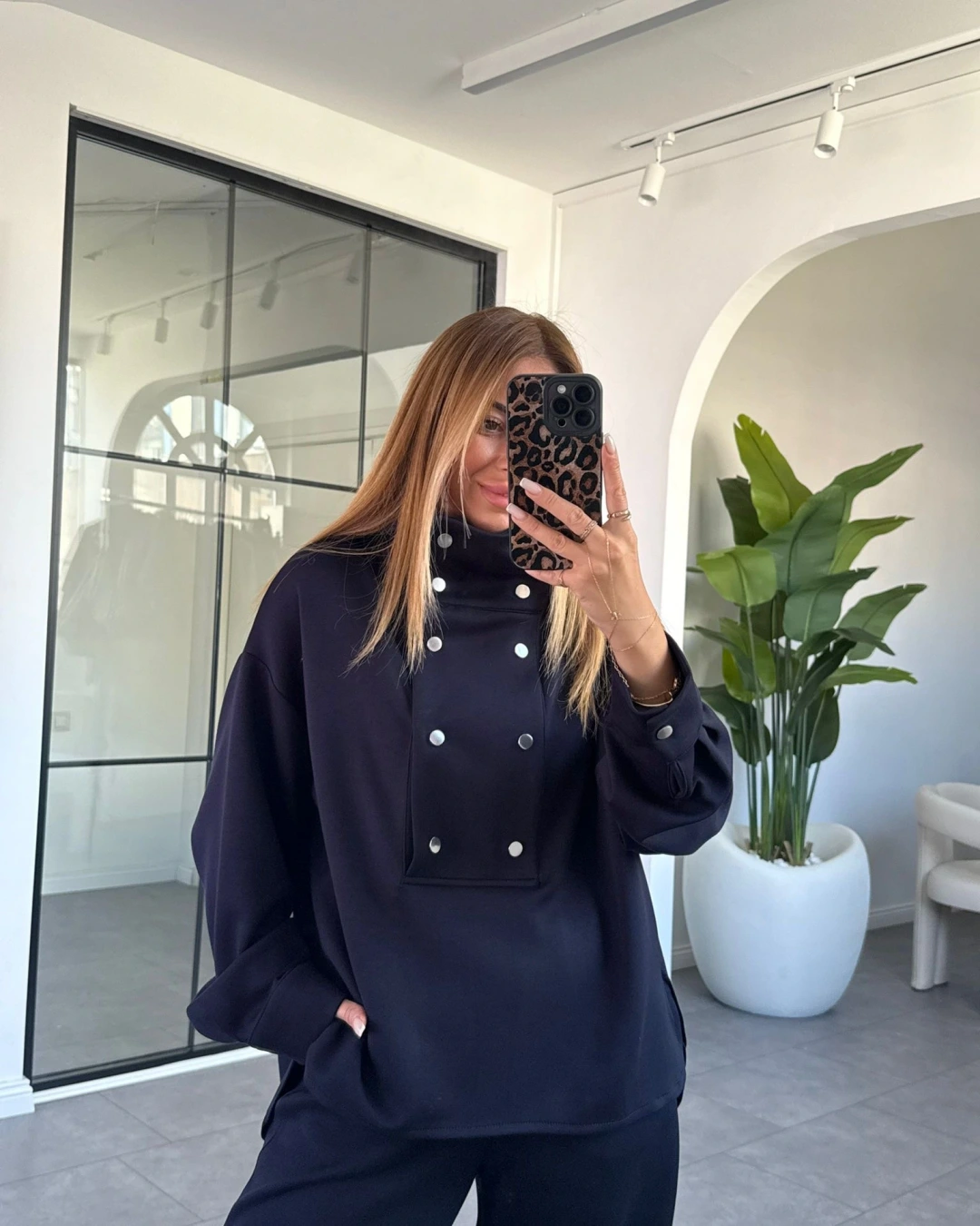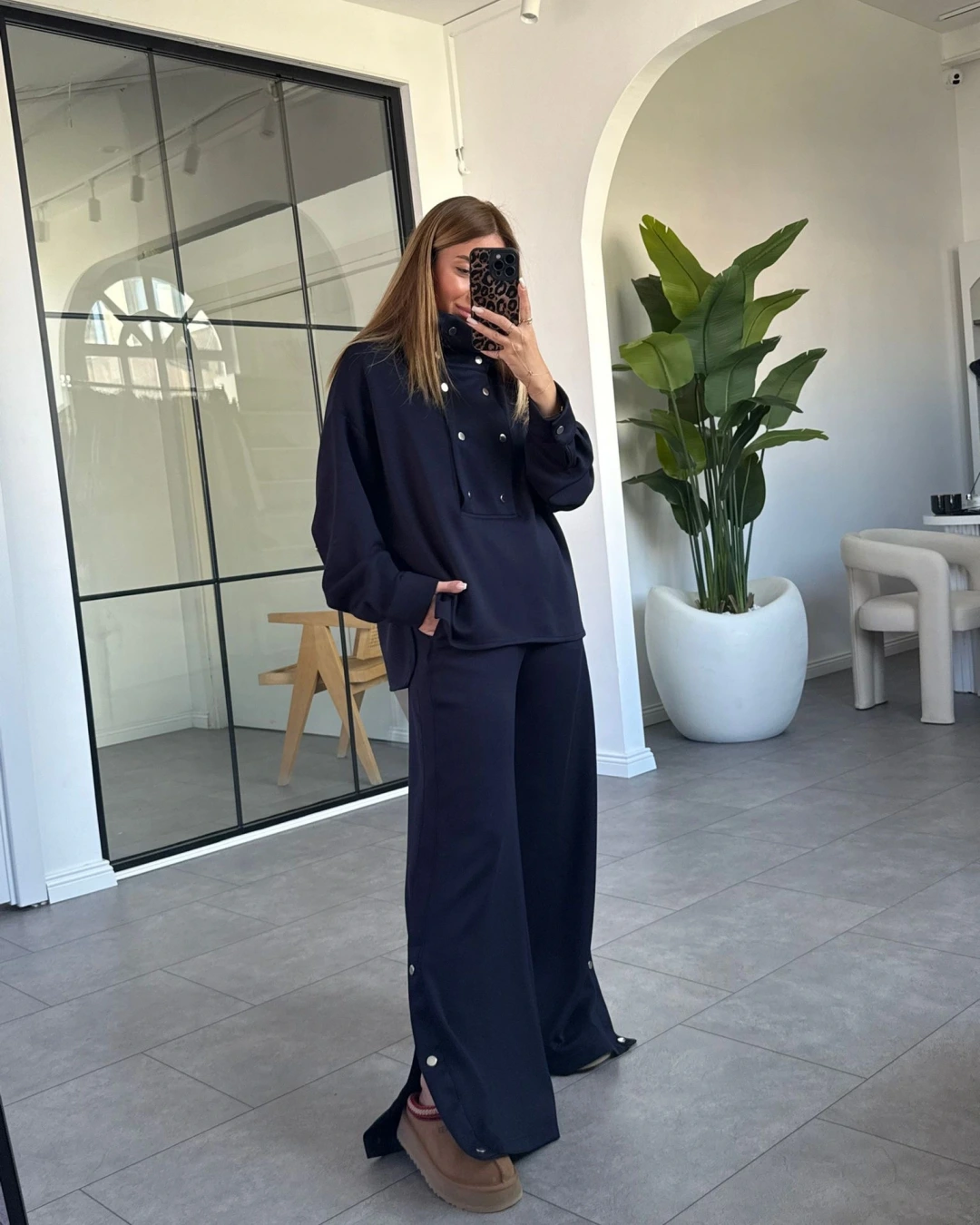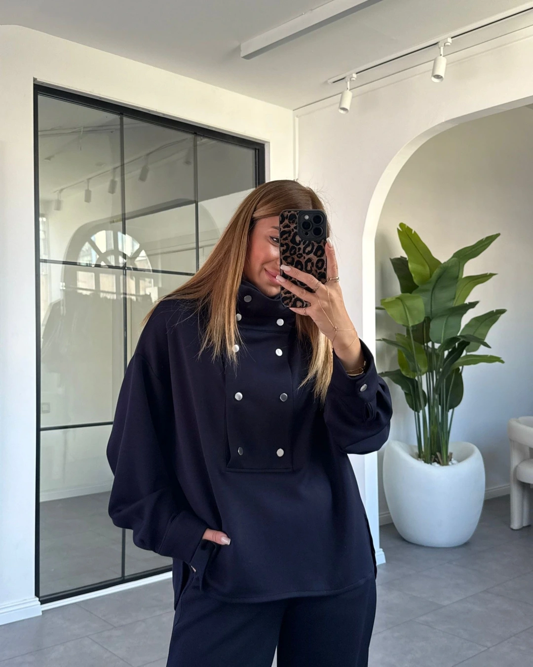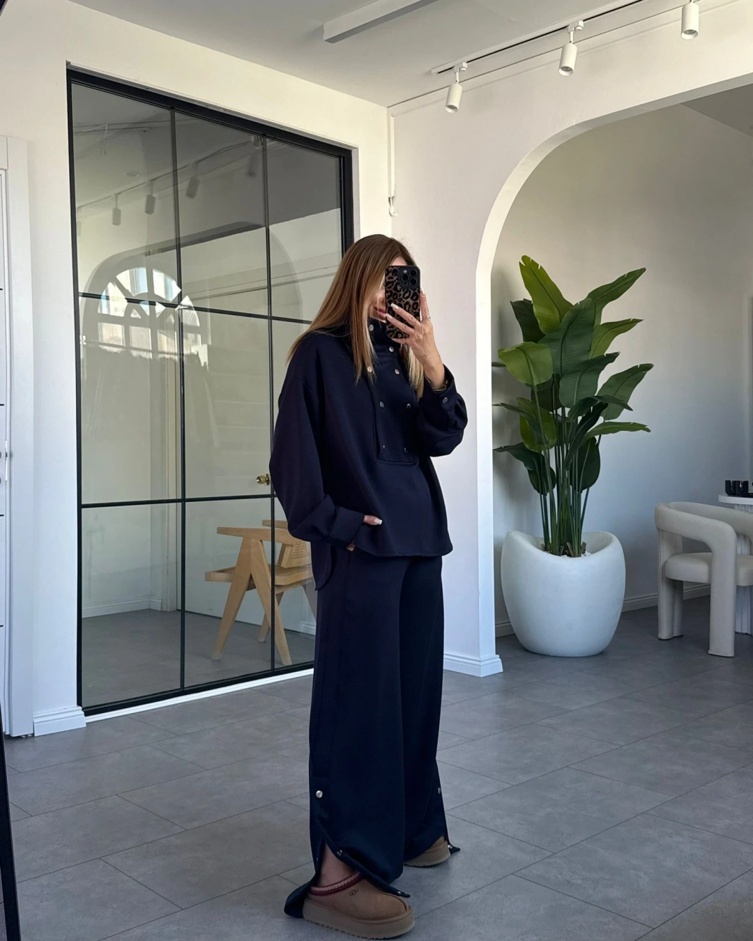 LACİVERT DİK YAKA ÇITÇITLI MODAL TAKIM