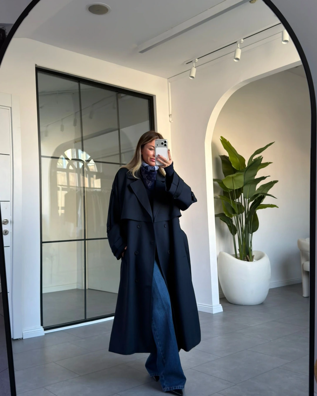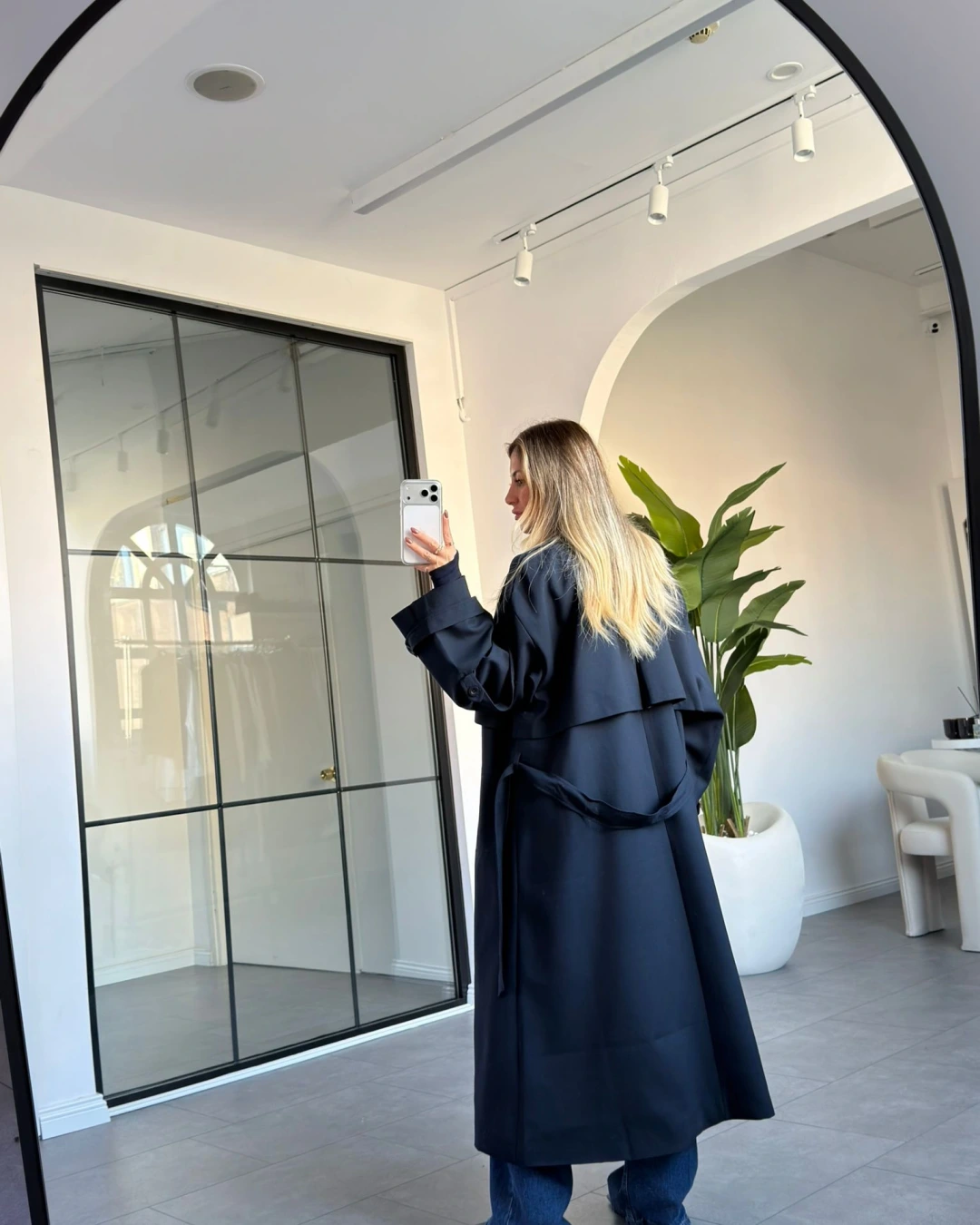LACİVERT DÜĞMELİ MANŞET DETAY KUŞAKLI TRENÇKOT