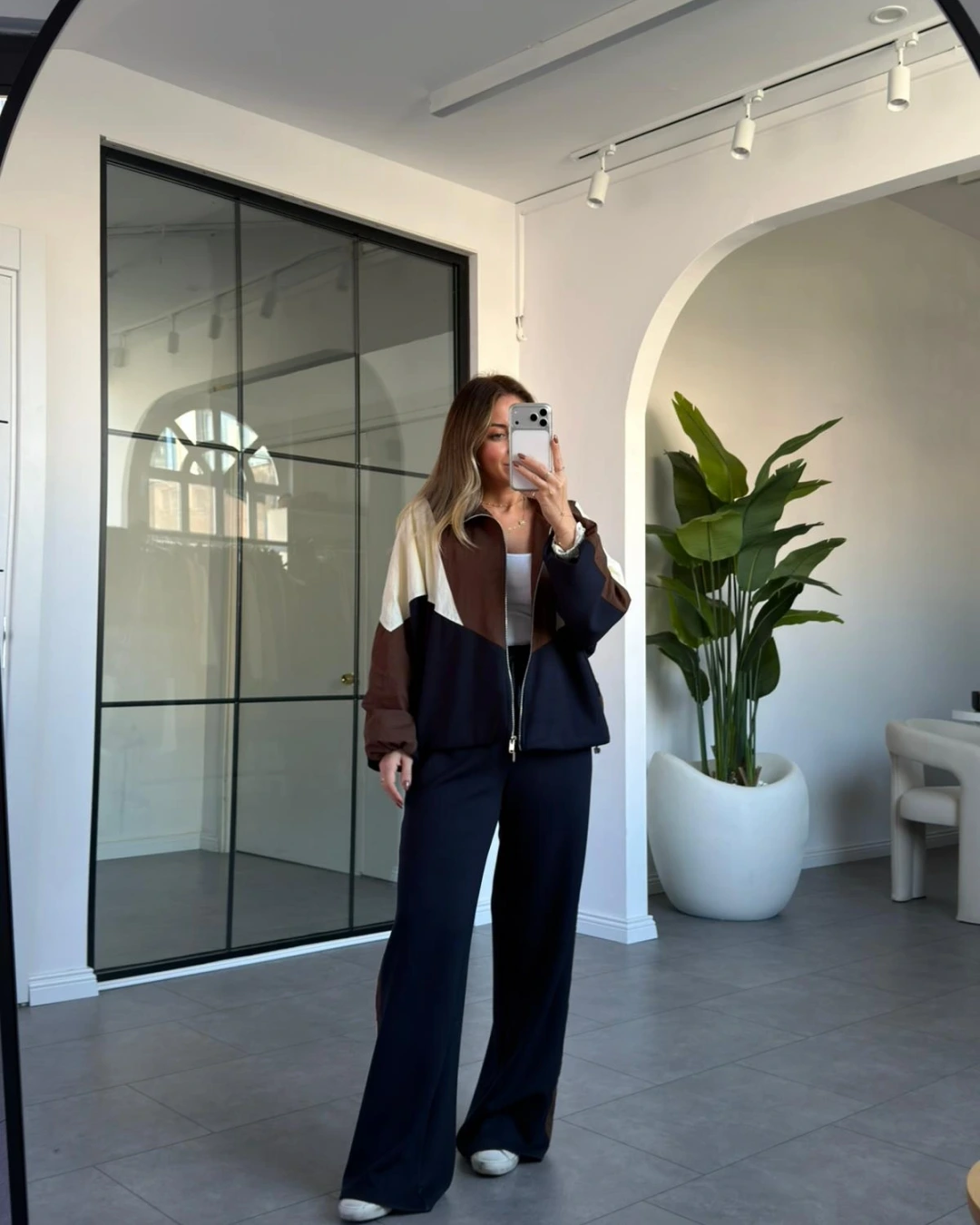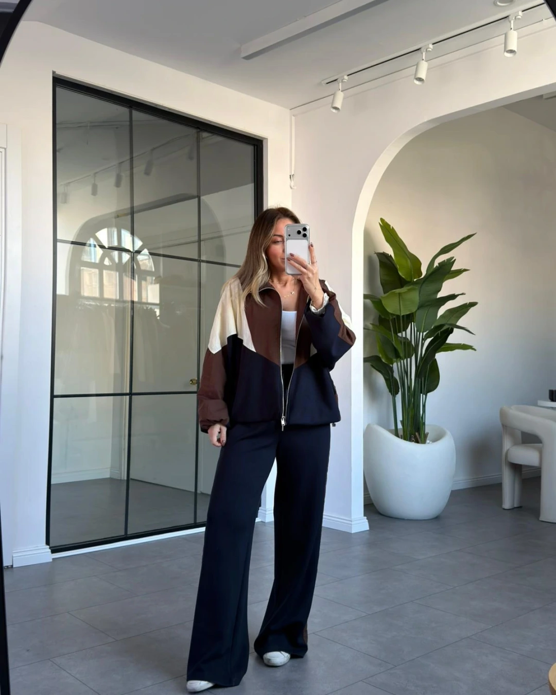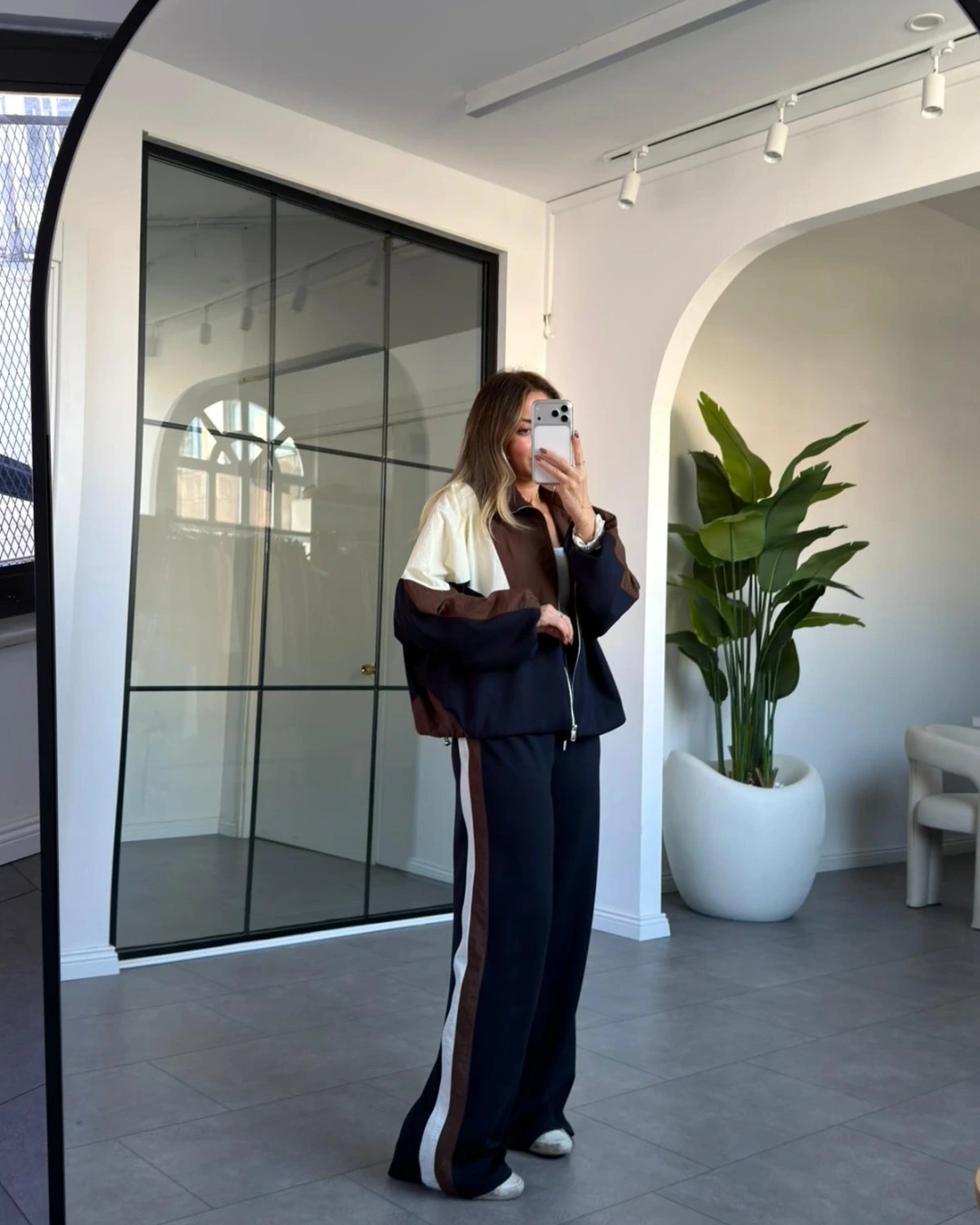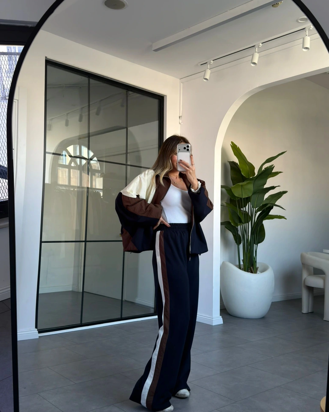 LACİVERT KAHVE GARNİLİ MODAL TAKIM
