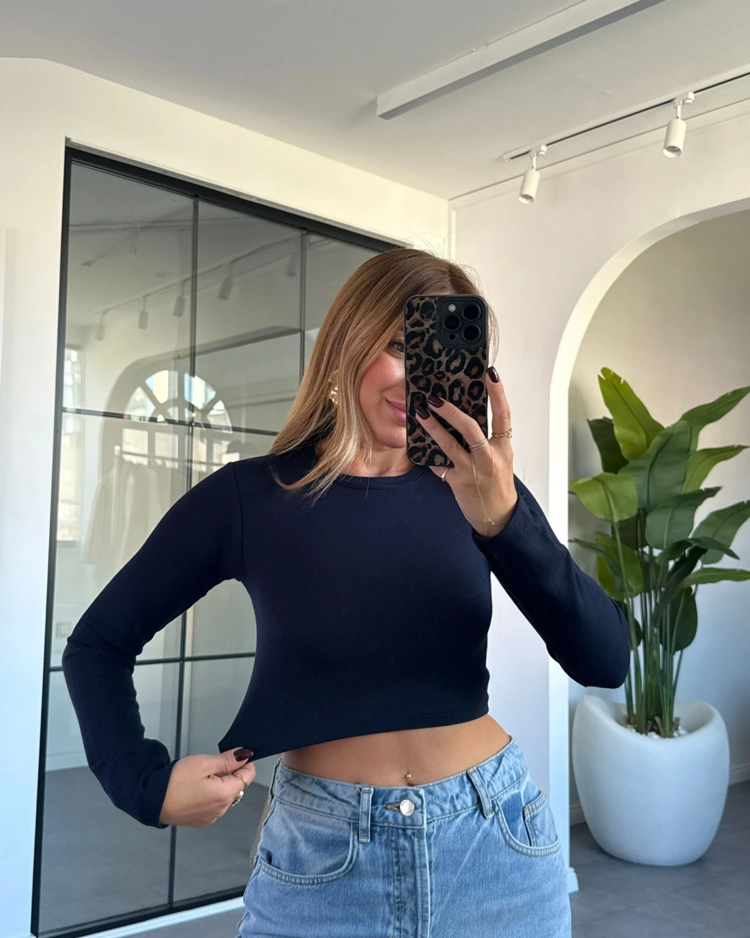 Lacivert Marka Model Crop Uzun Kollu Bluz