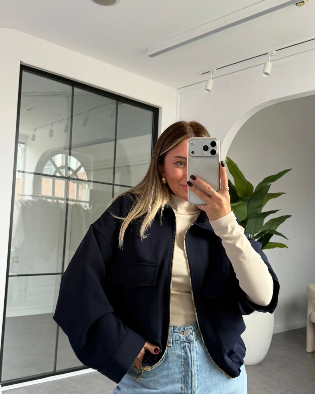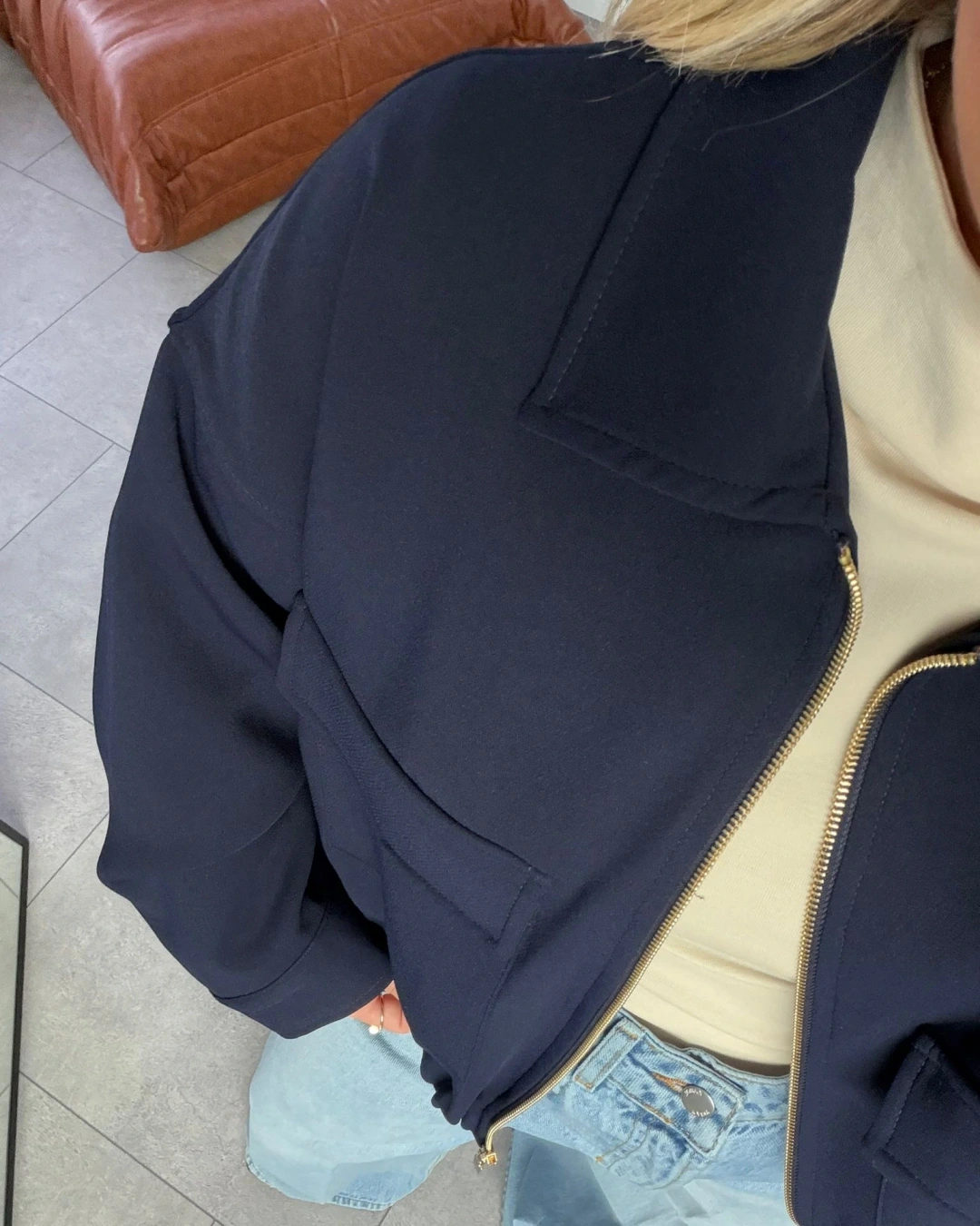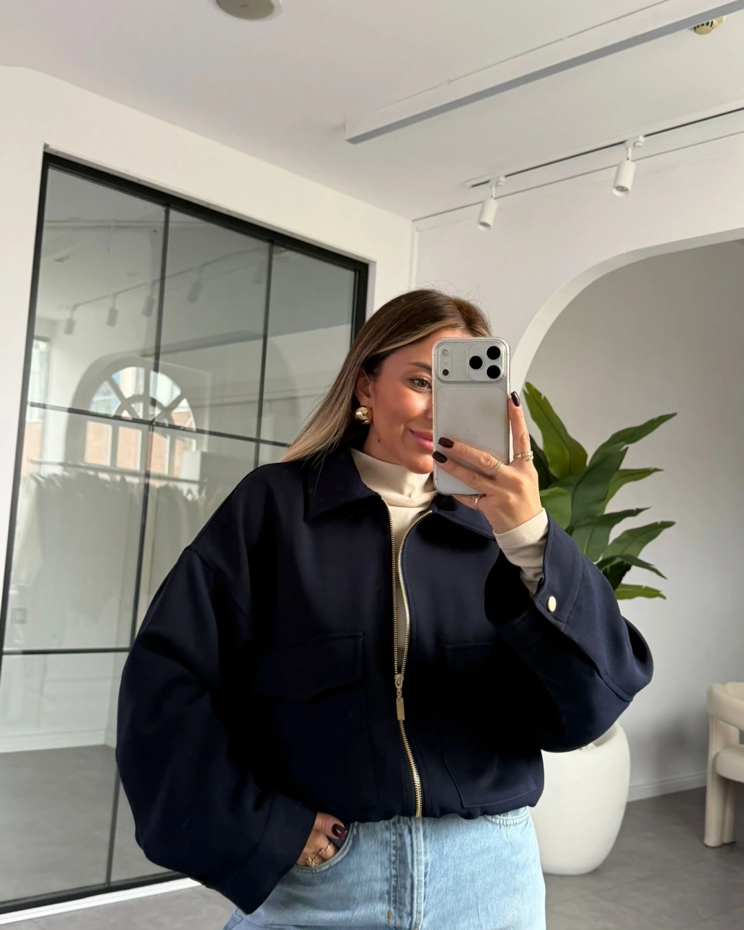 LACİVERT TORBA CEPLİ BOMBER CEKET