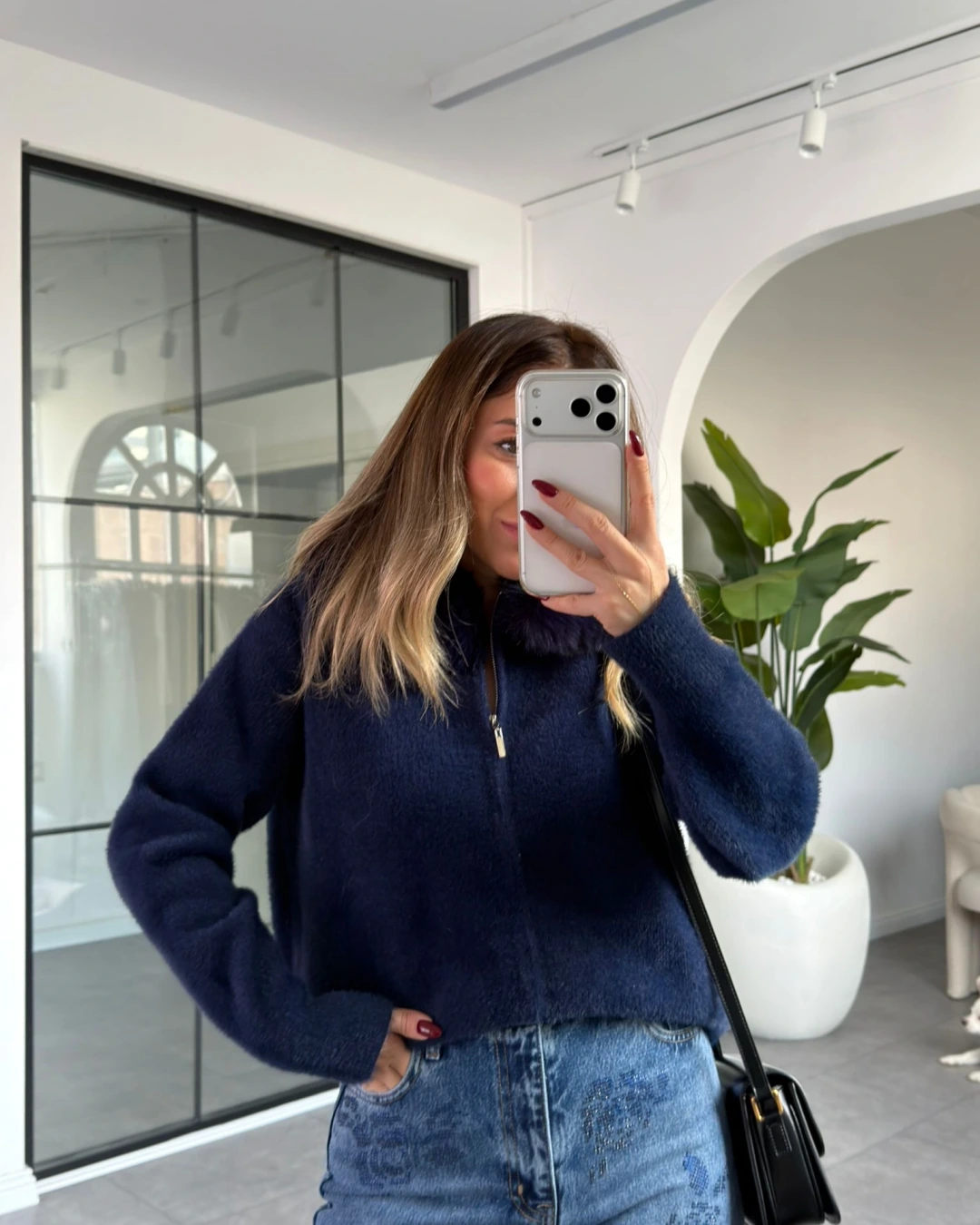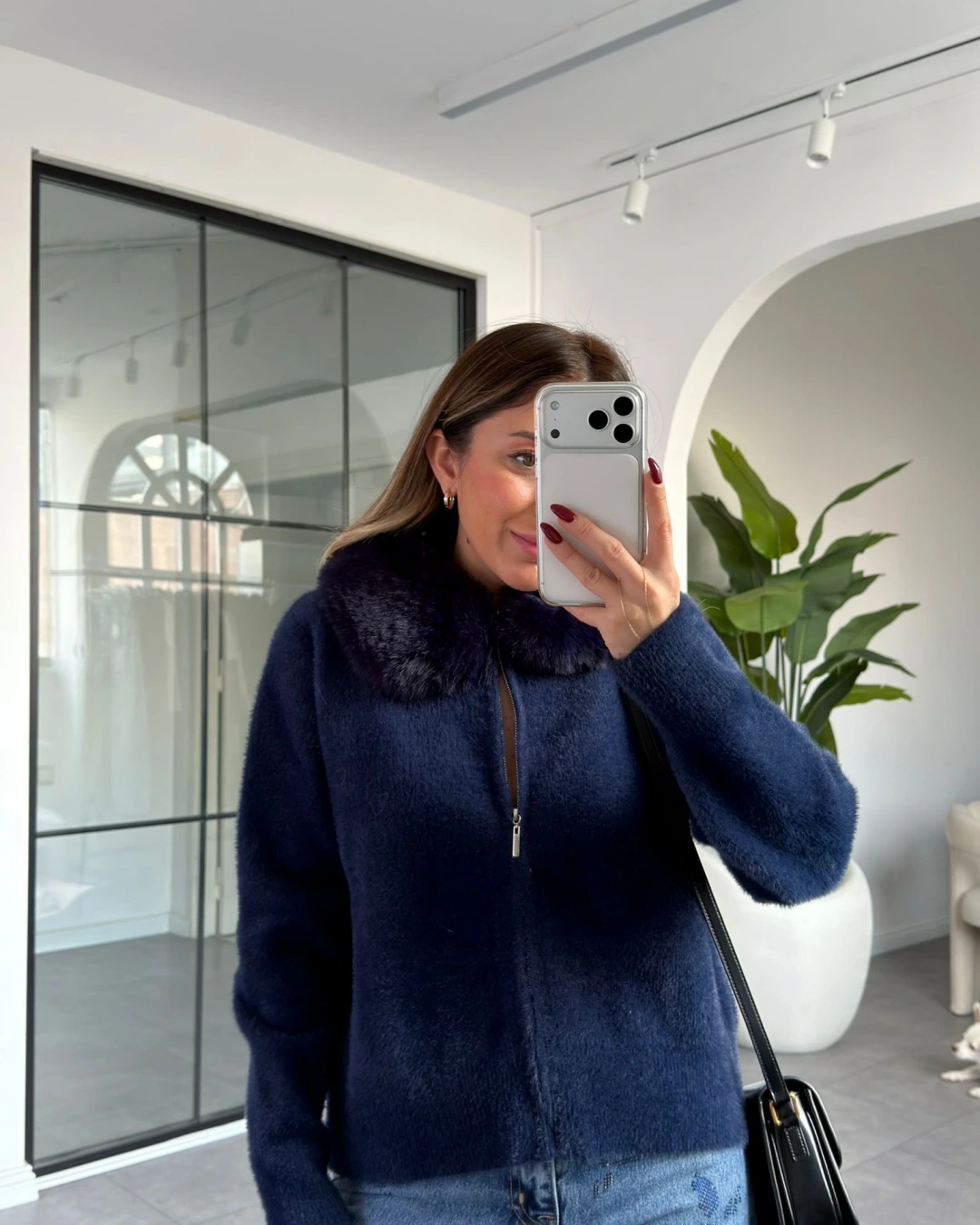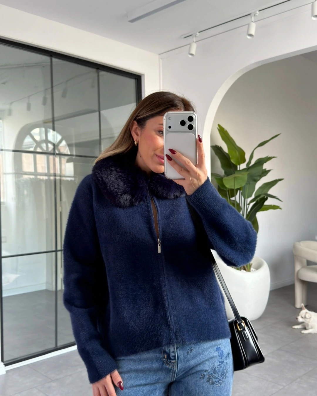 LACİVERT YAKA KÜRK DETAY YUMUŞACIK HIRKA