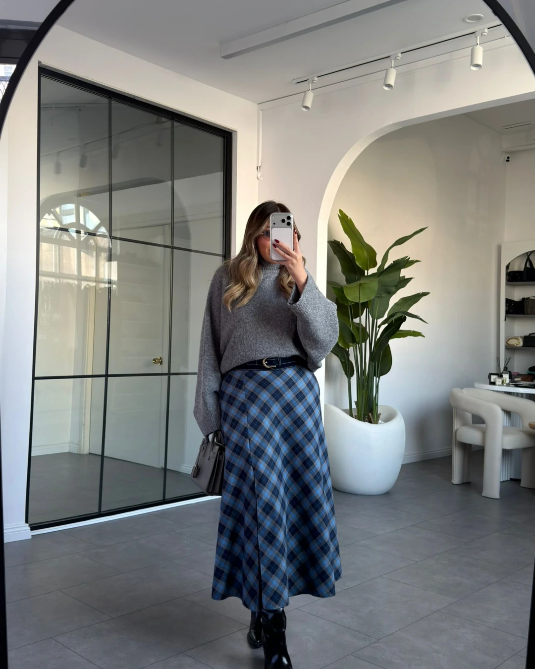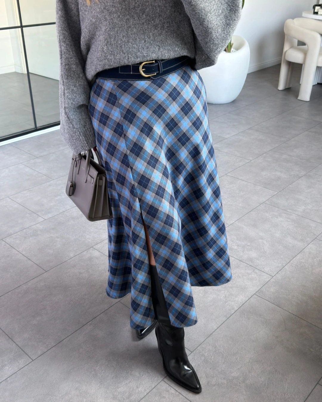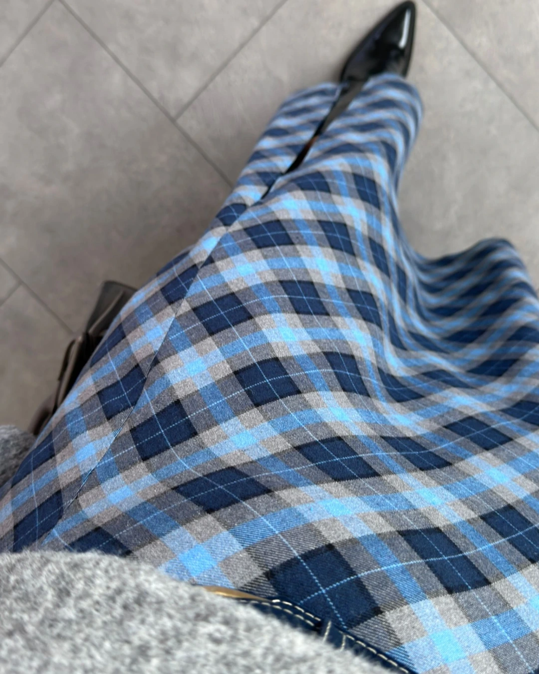 LACİVERT YIRTMAÇ DETAY KEMERLİ EKOSE ETEK