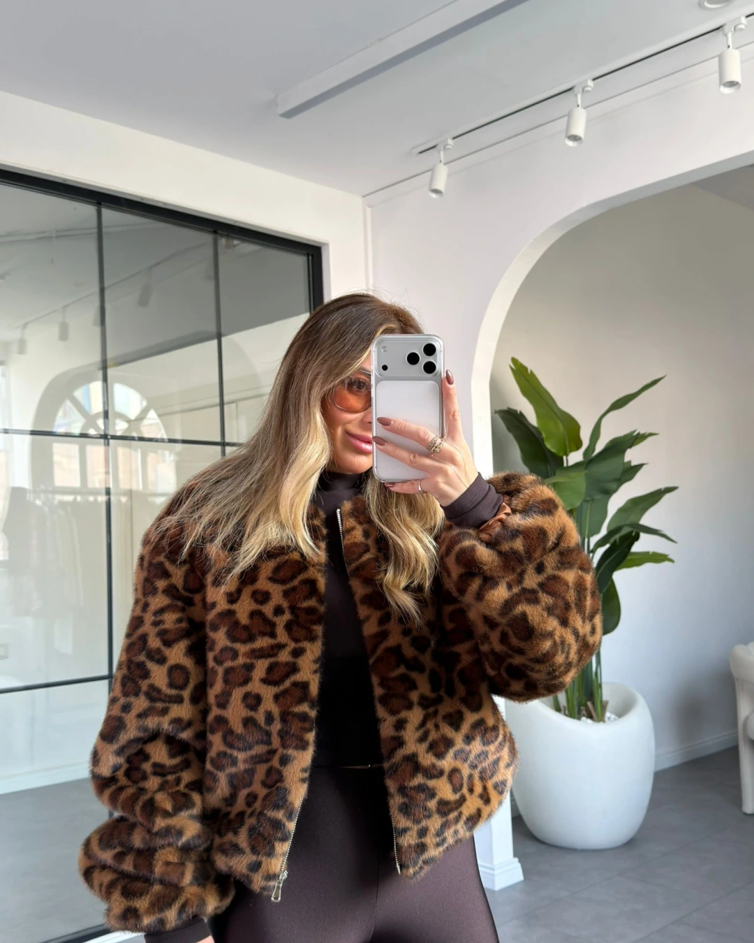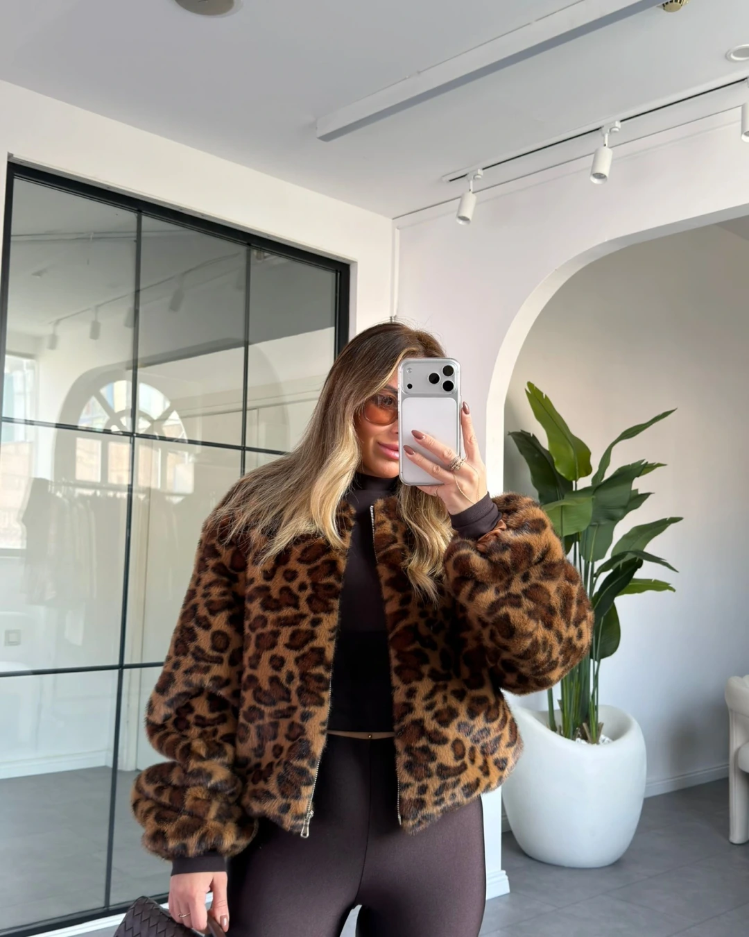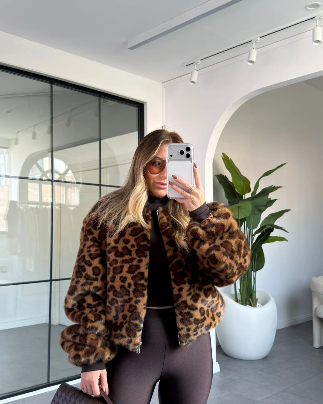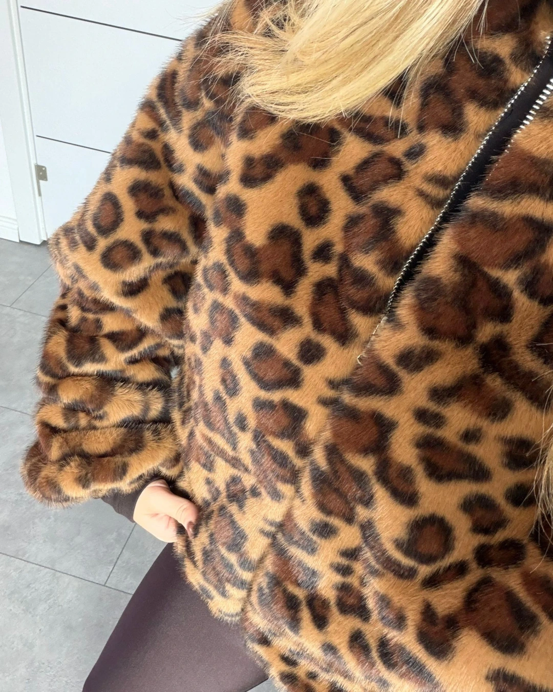 LEOPAR DESEN BİSİKLET YAKA PREMİUM KÜRK