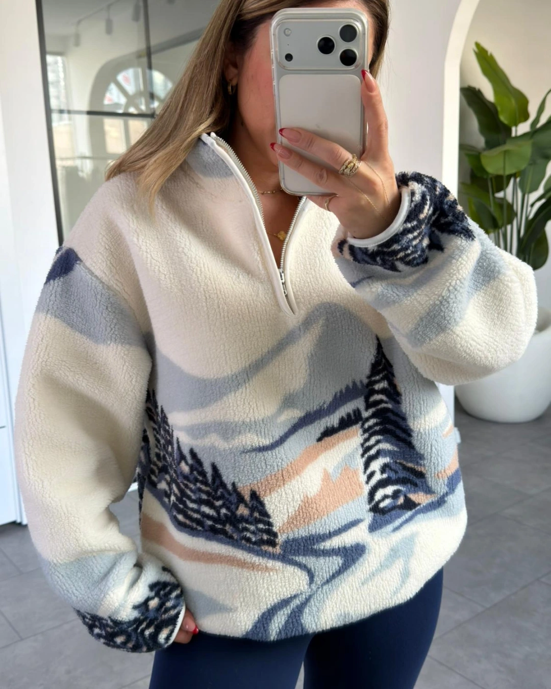MAVİ AĞAÇ DESEN PELUŞ SWEATSHİRT