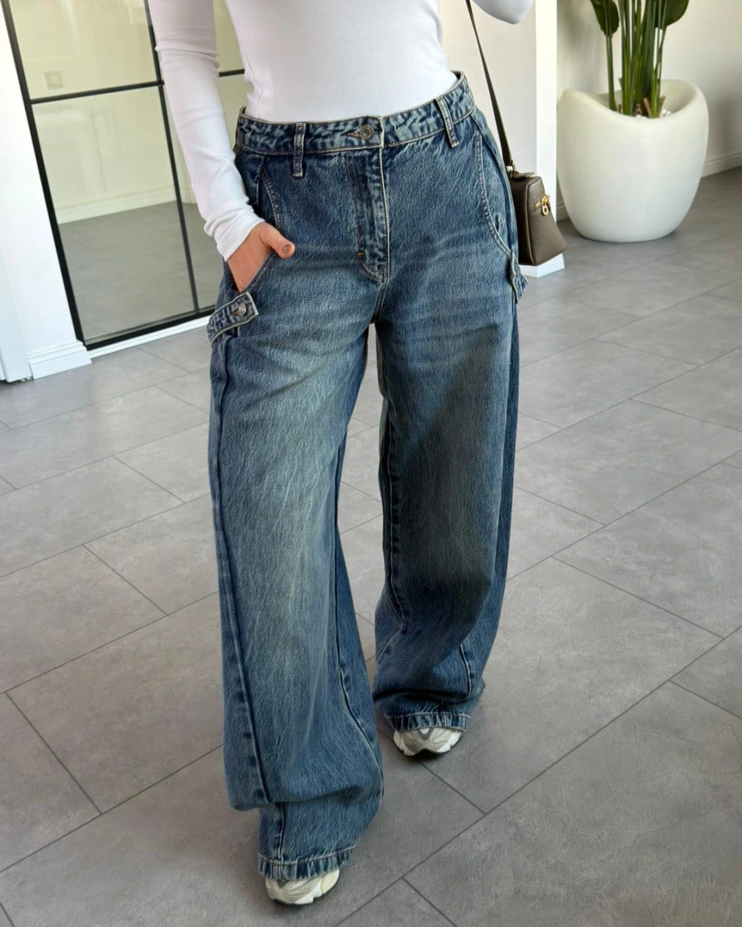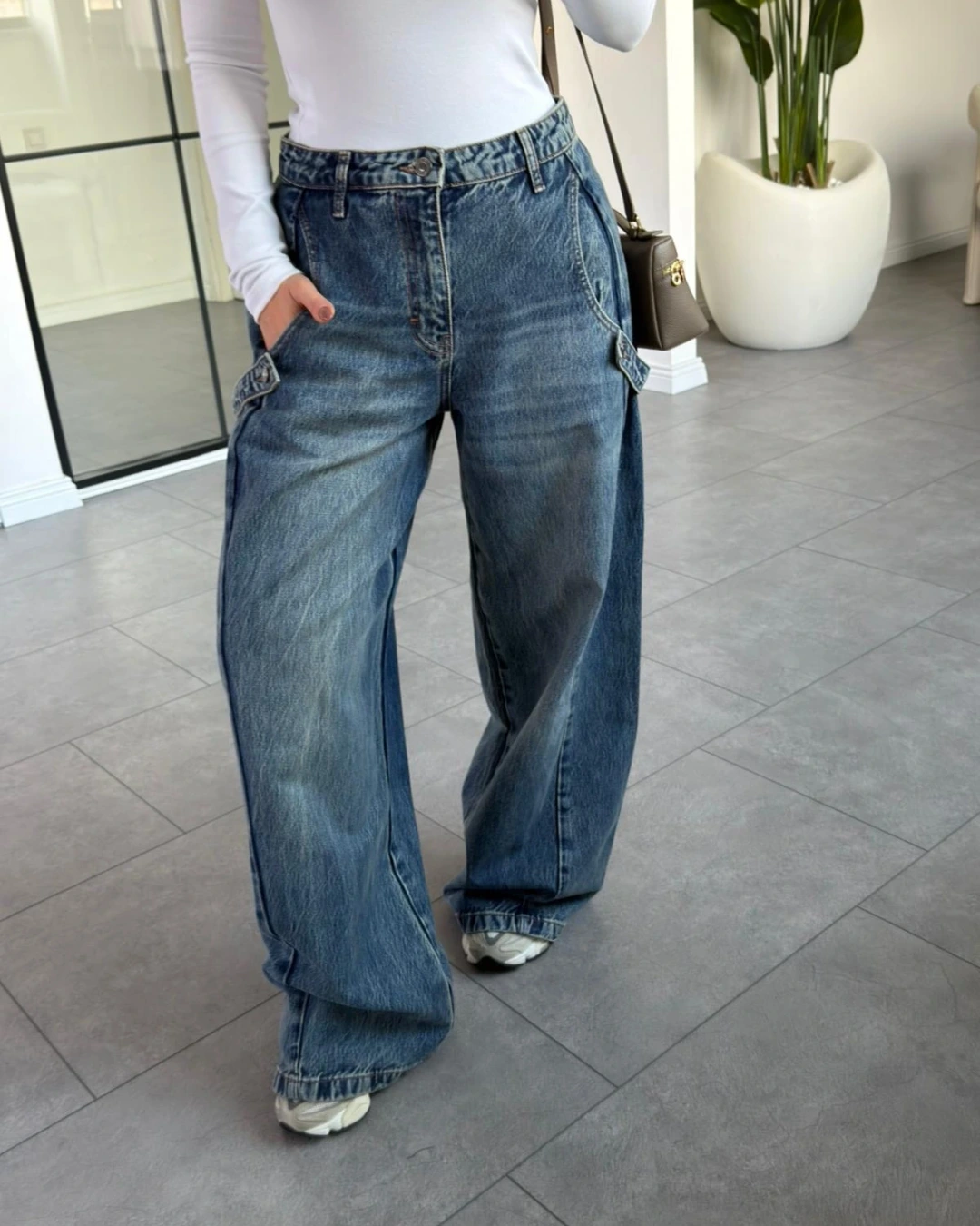 MAVİ BAGGY YANLARI KEMER AKSESUARLI JEAN