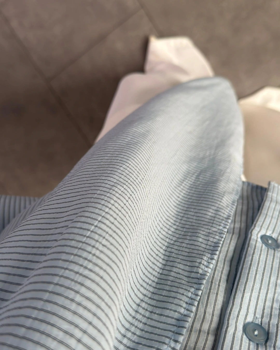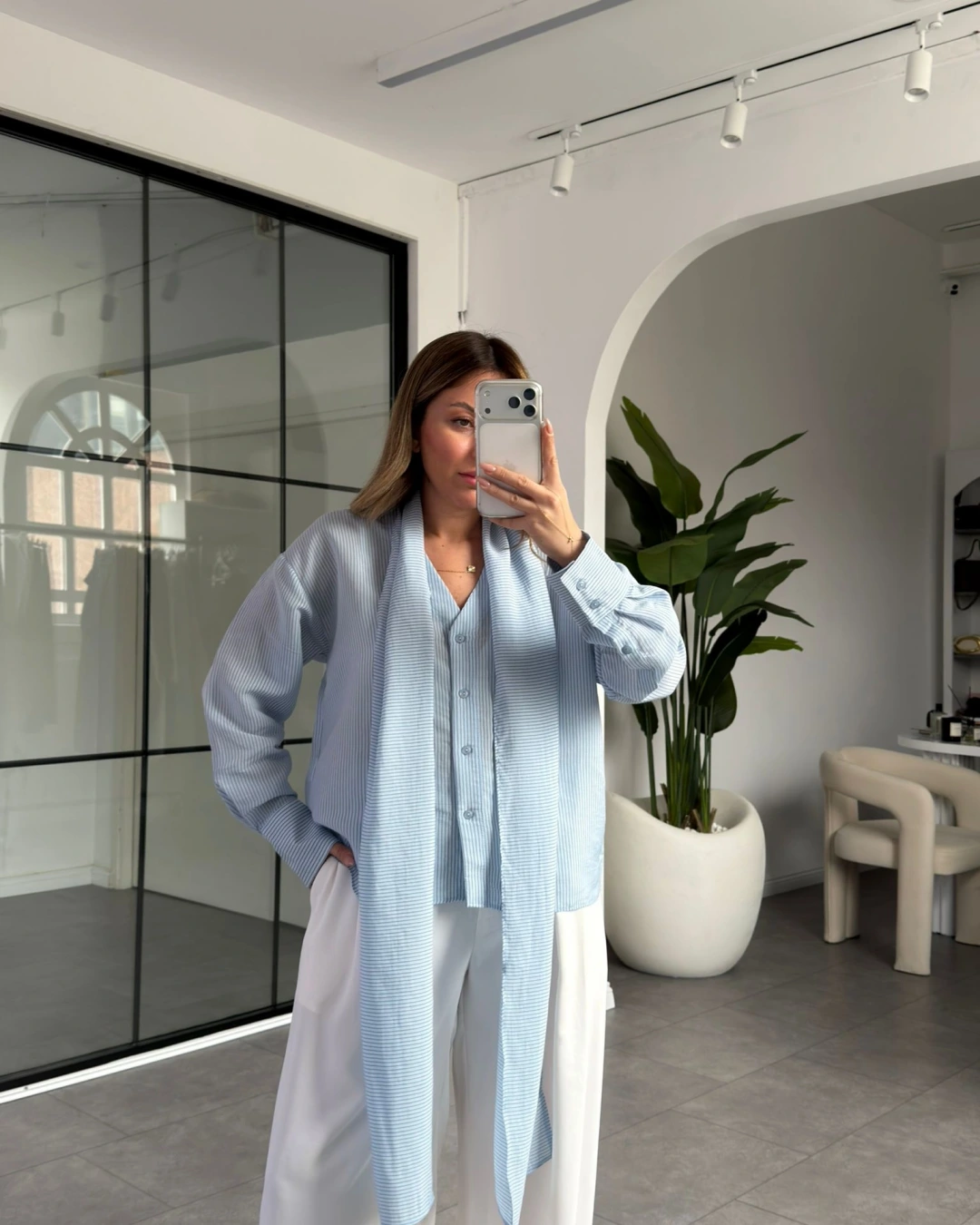 MAVİ ÇİZGİLİ V YAKA ŞALLI GÖMLEK