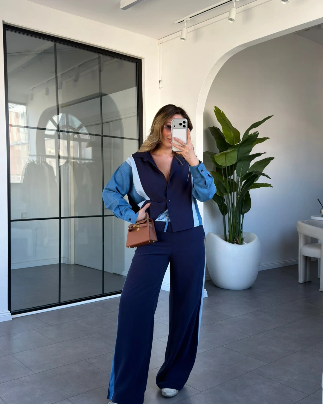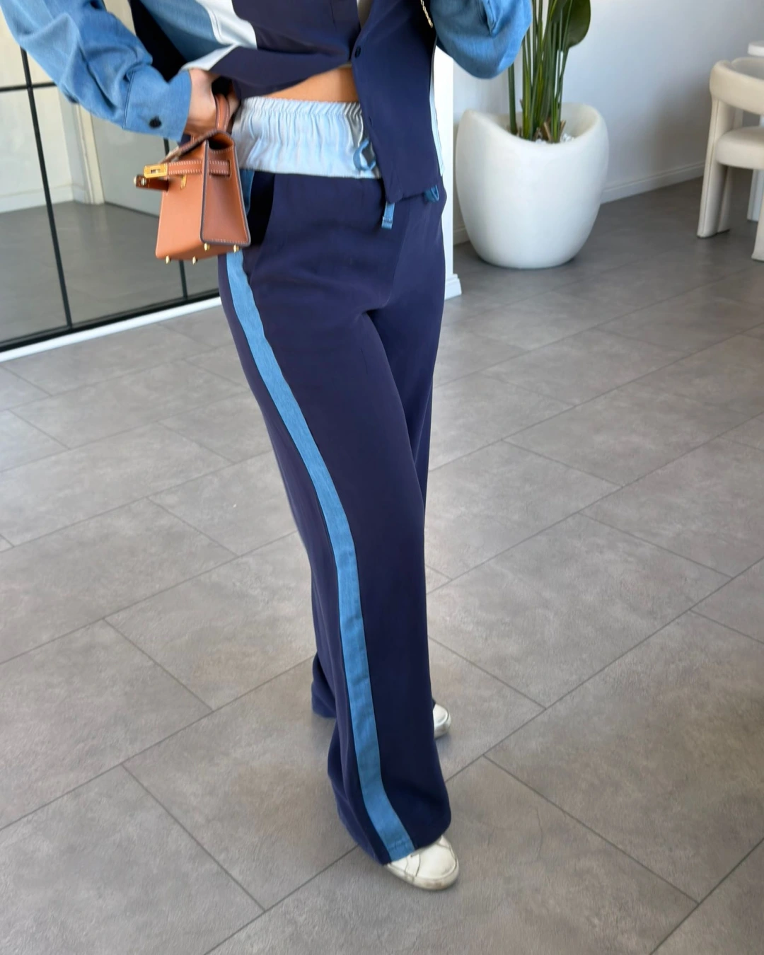 MAVİ JEAN DETAYLI TENCEL PREMİUM TAKIM