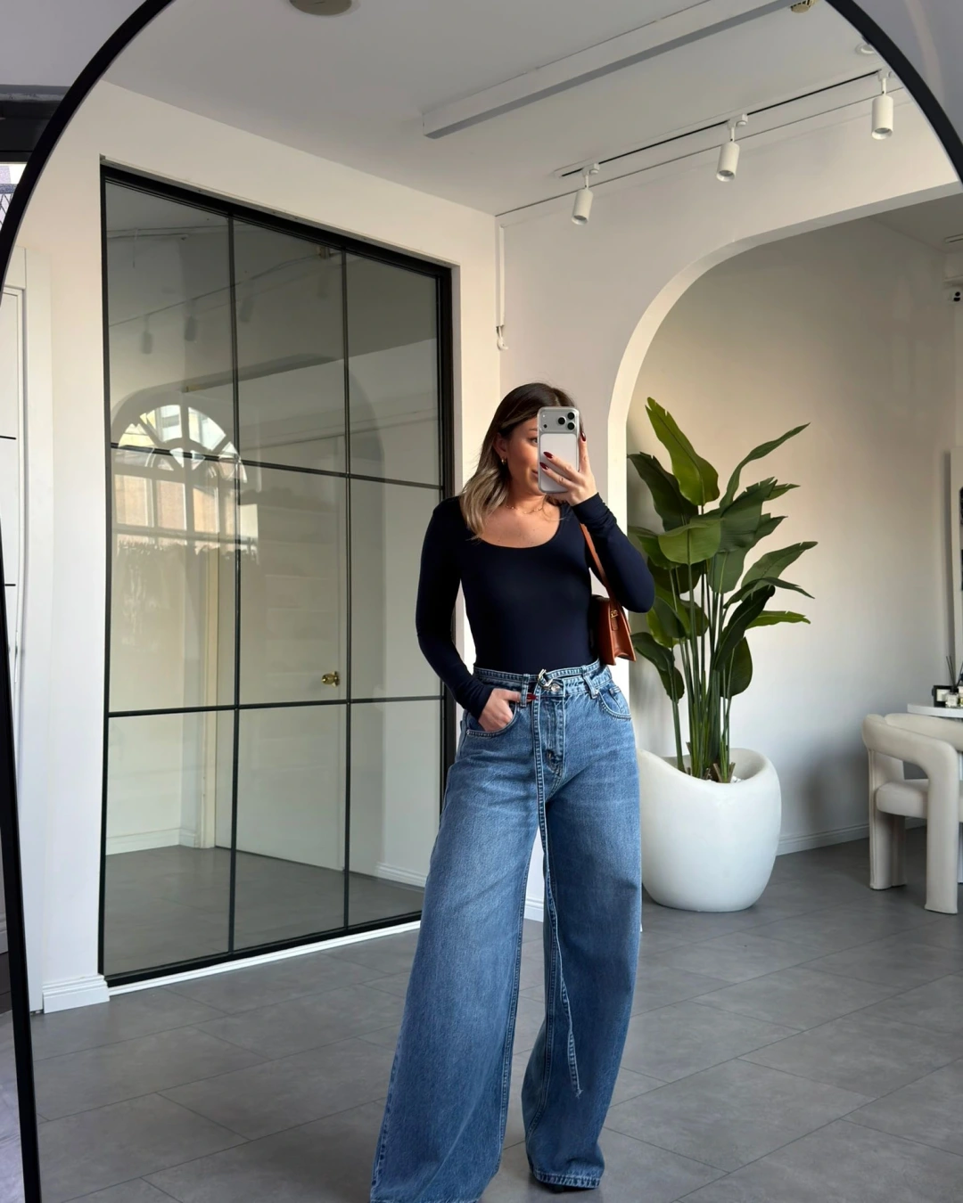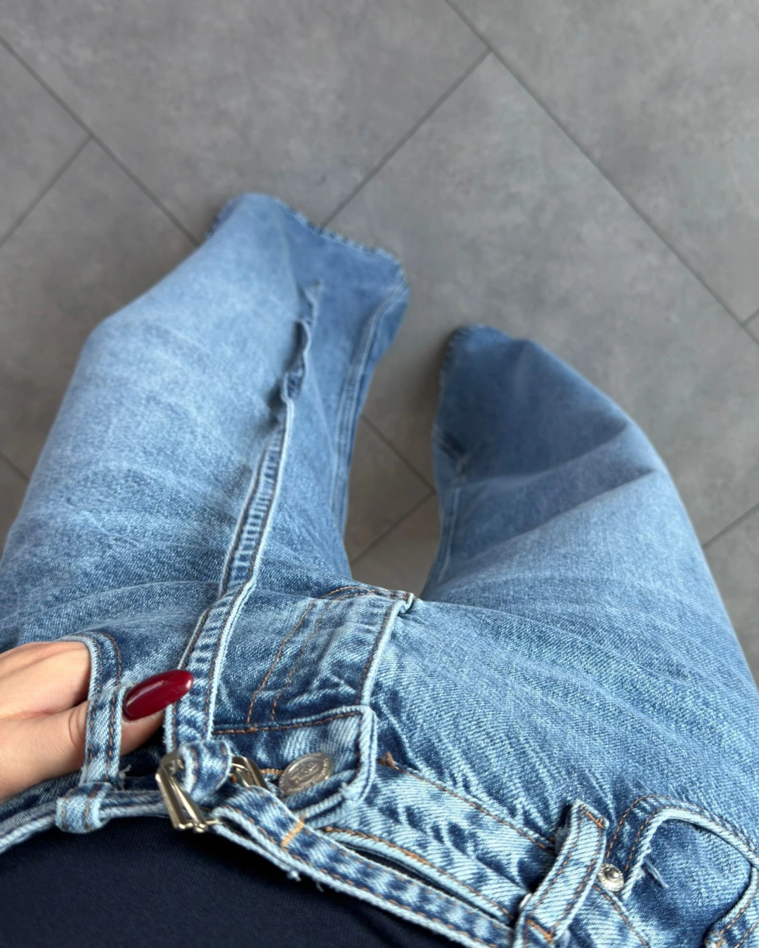 MAVİ KUŞAKLI WİDE LEG JEAN