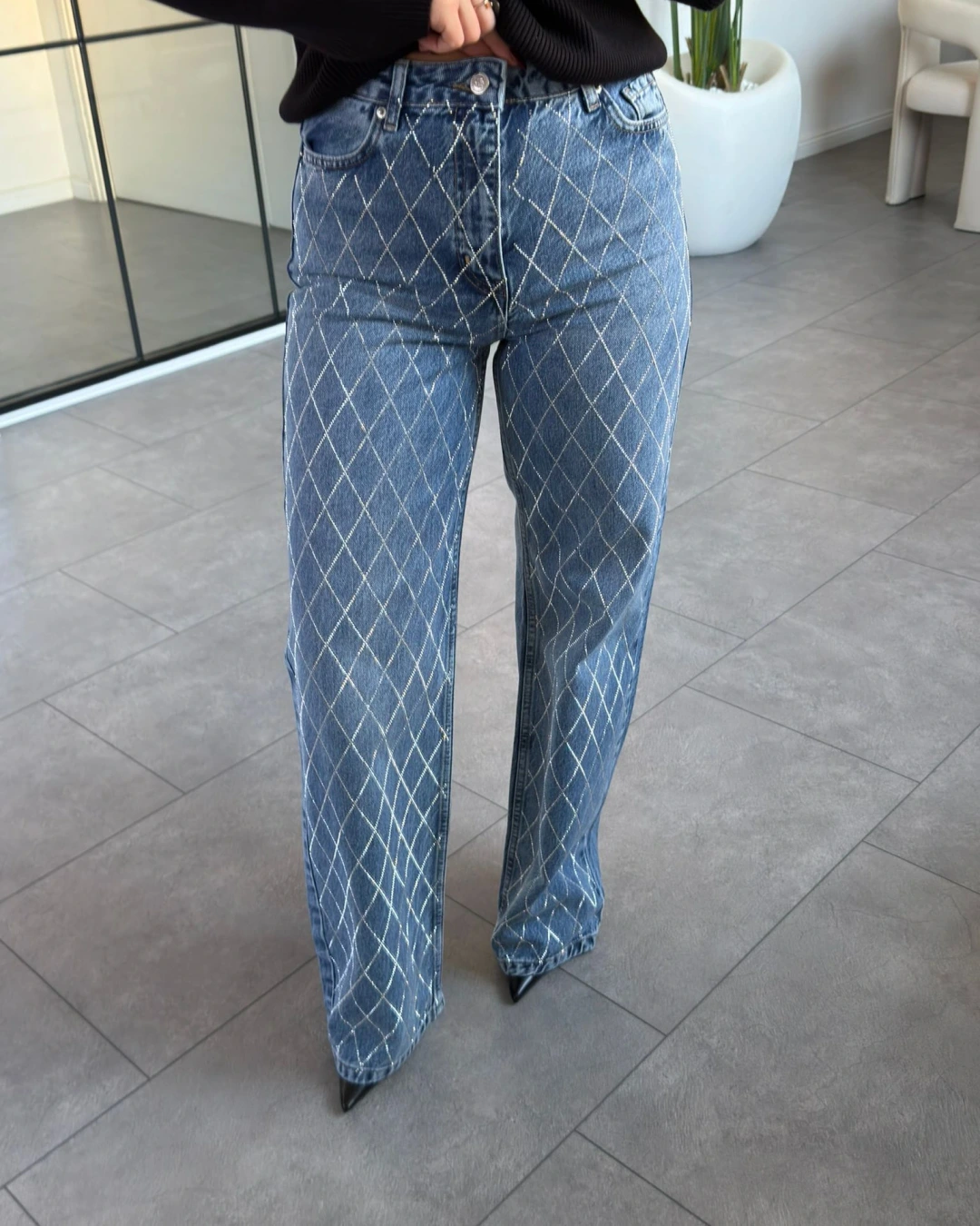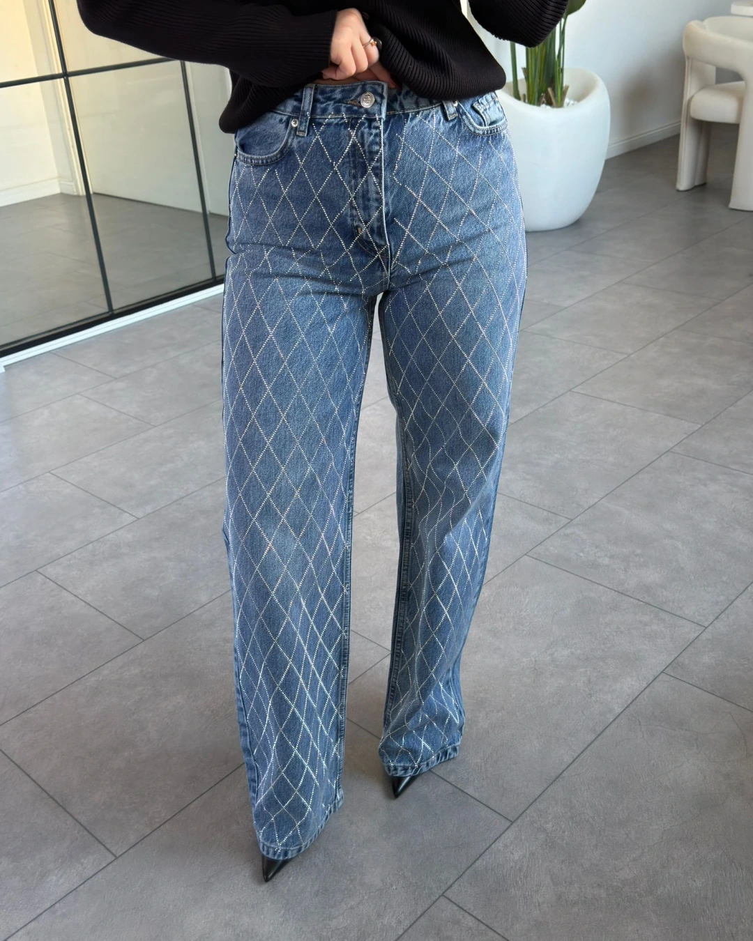 MAVİ TAŞ İŞLEMELİ WİDE LEG JEAN