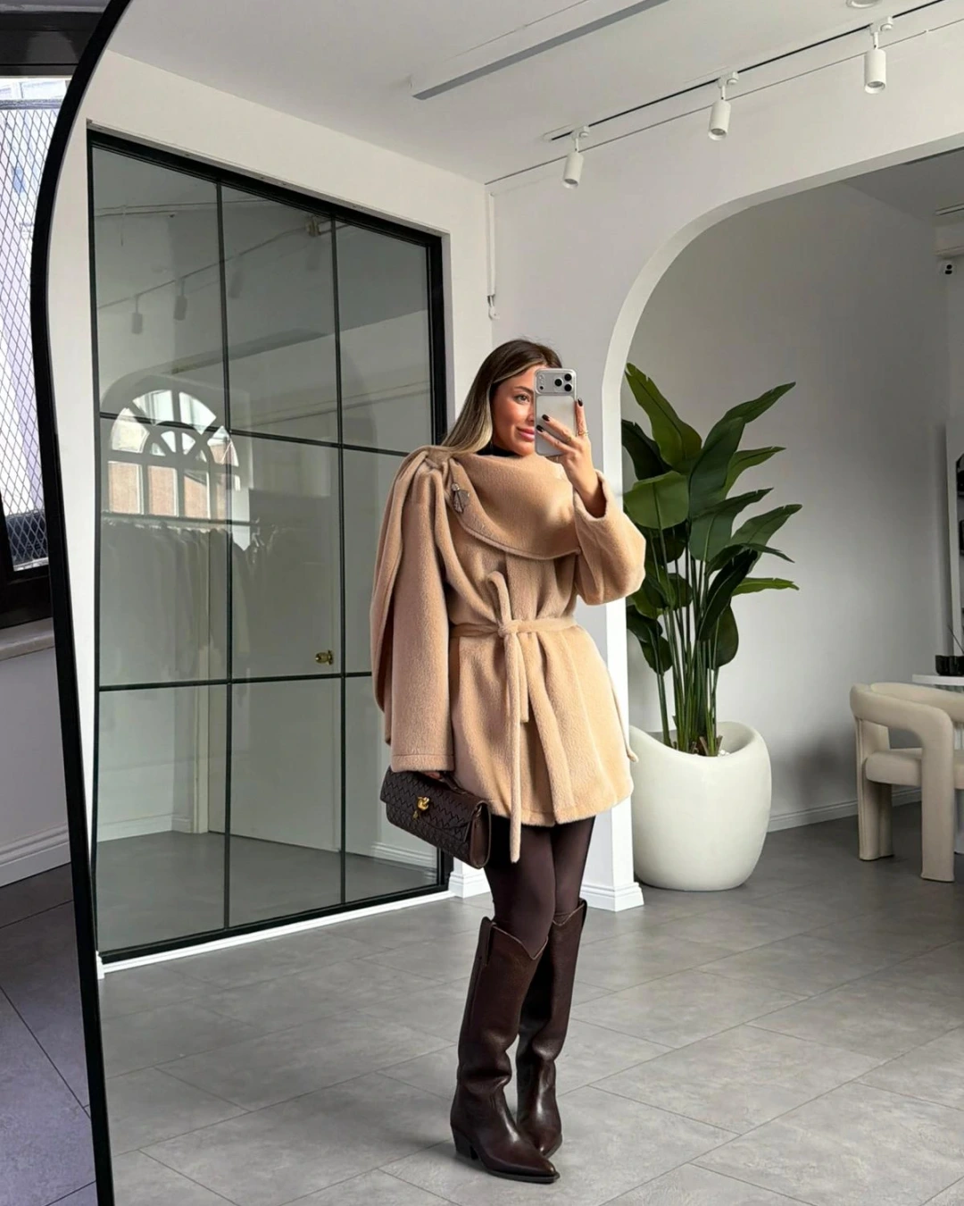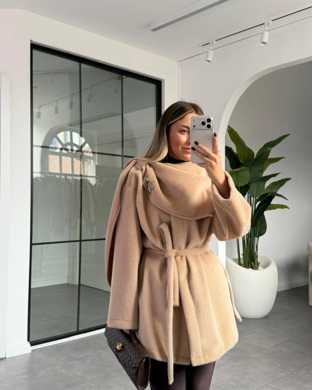 MOCHA OMUZDAN ŞALLI KAŞE CEKET