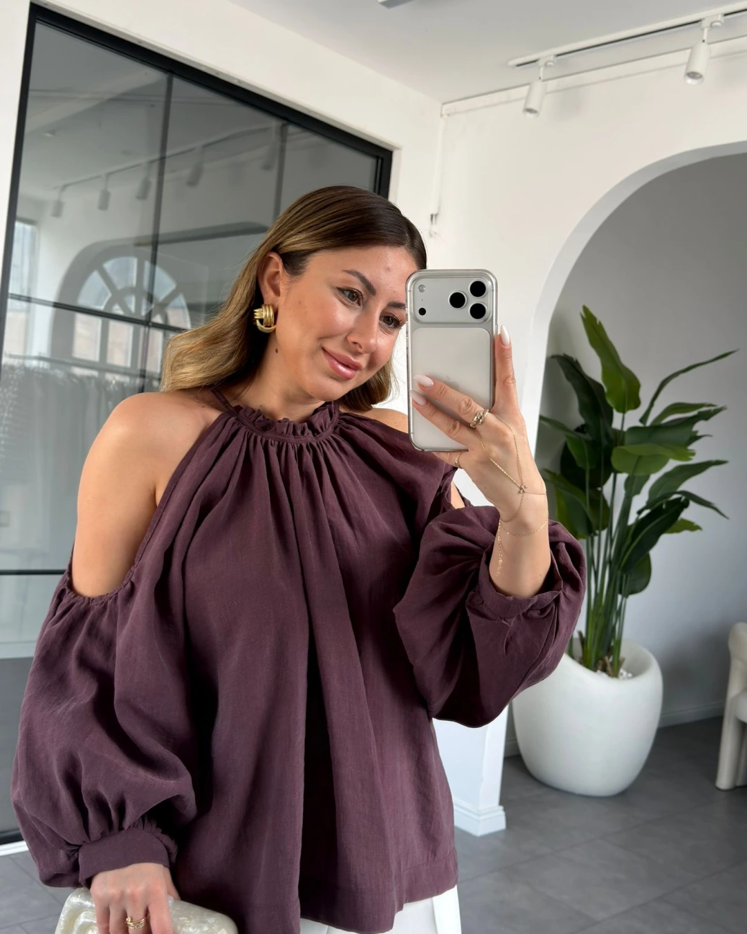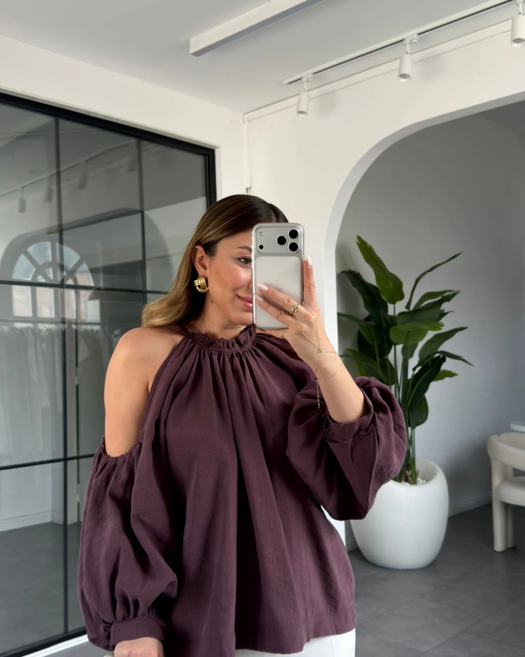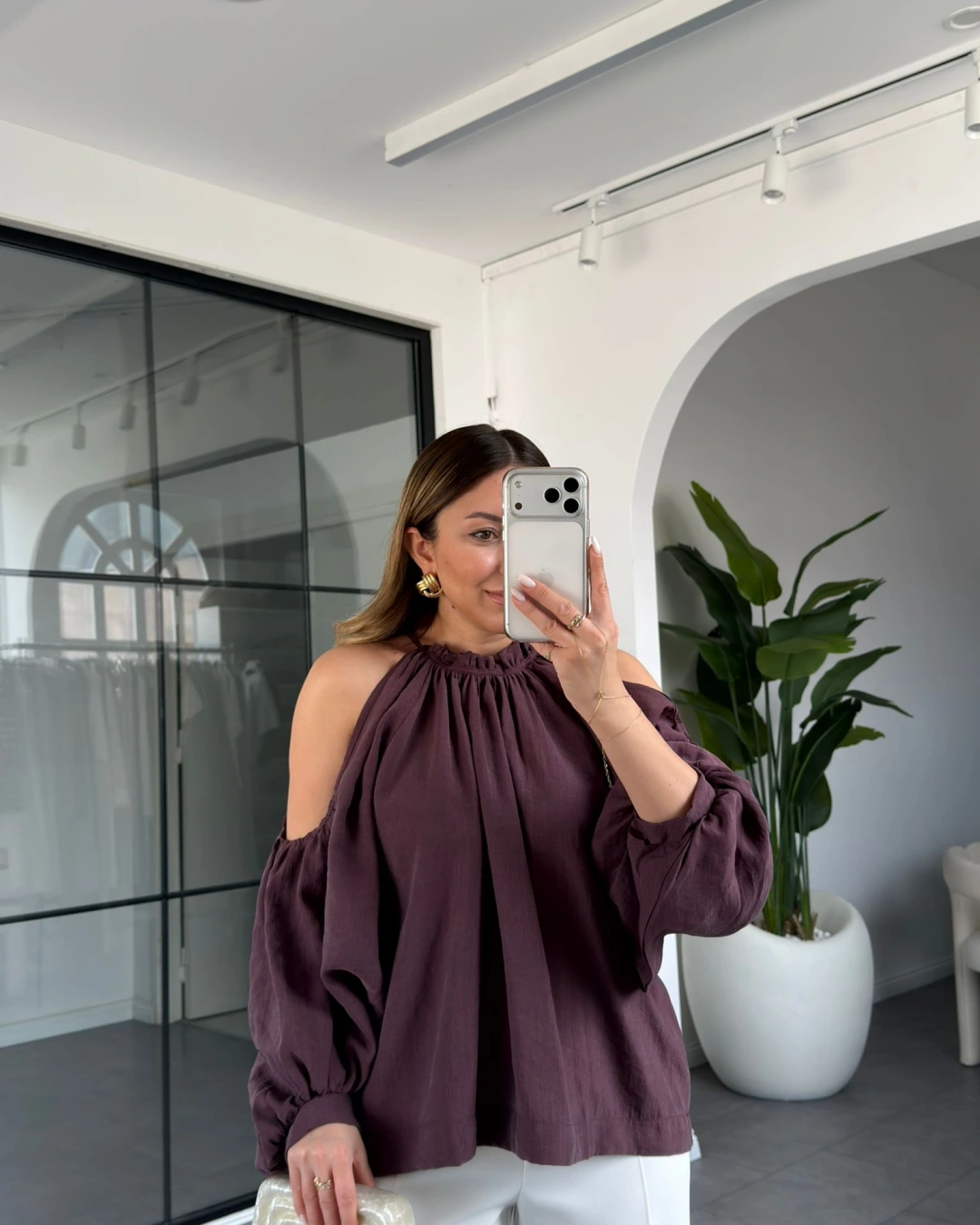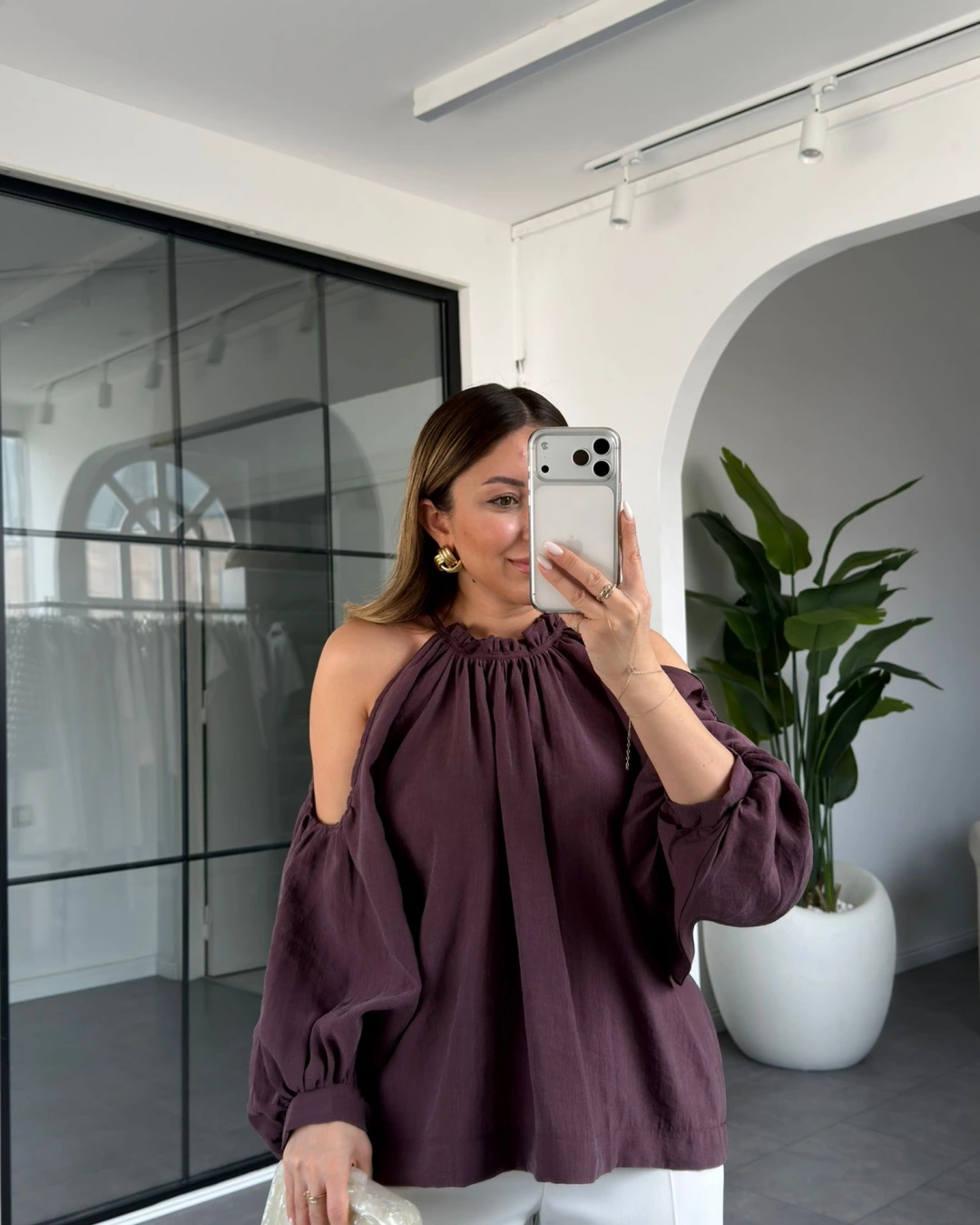 MÜRDÜM OMUZ DETAYLI TENCEL BLUZ 3264