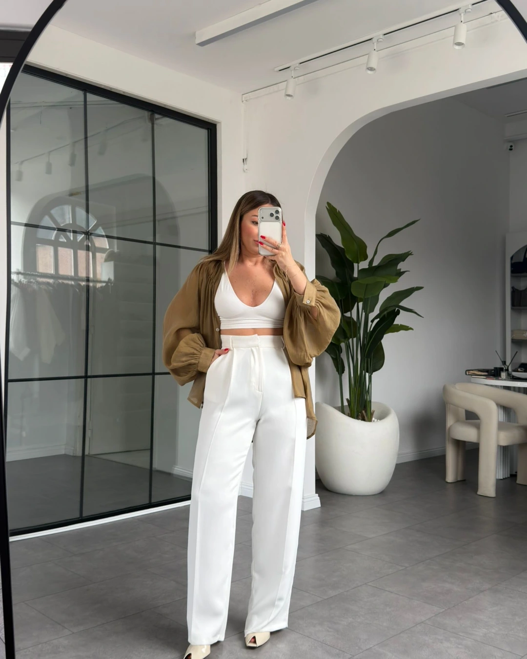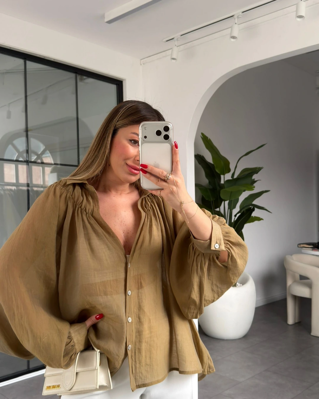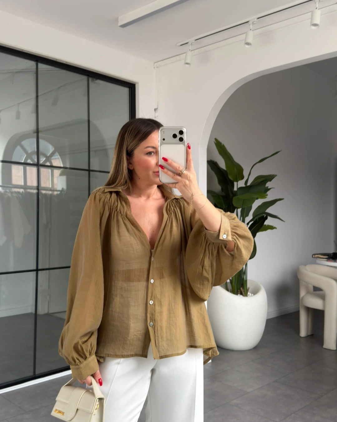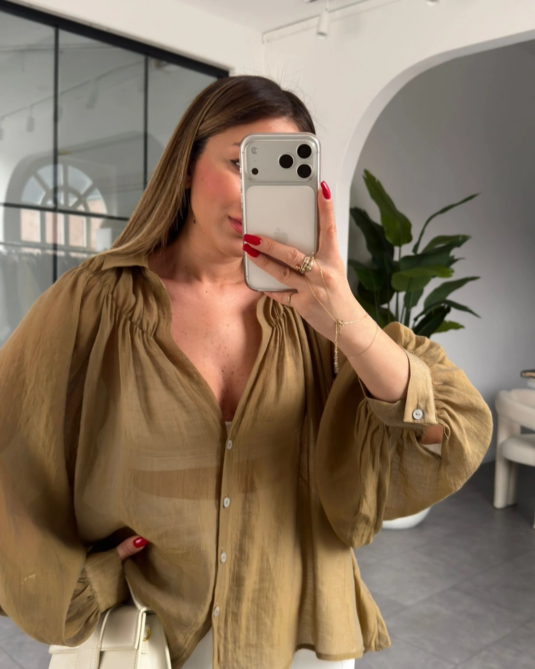 OLİVE OVERSİZE TRANSPARAN GÖMLEK