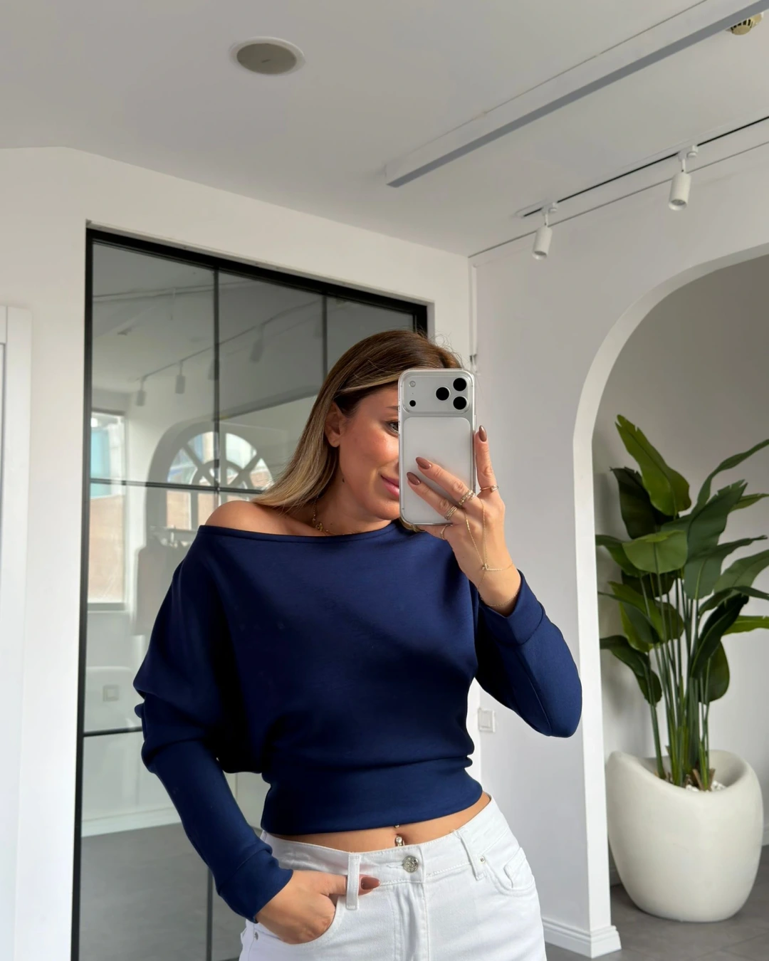 PARLEMENT MAVİSİ OYSH MARKA YARASA KOL BLUZ