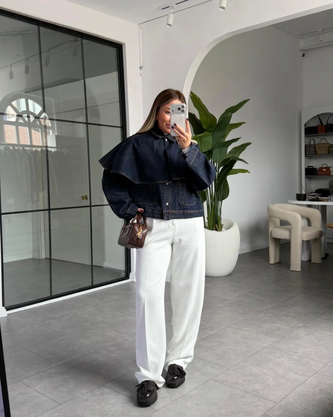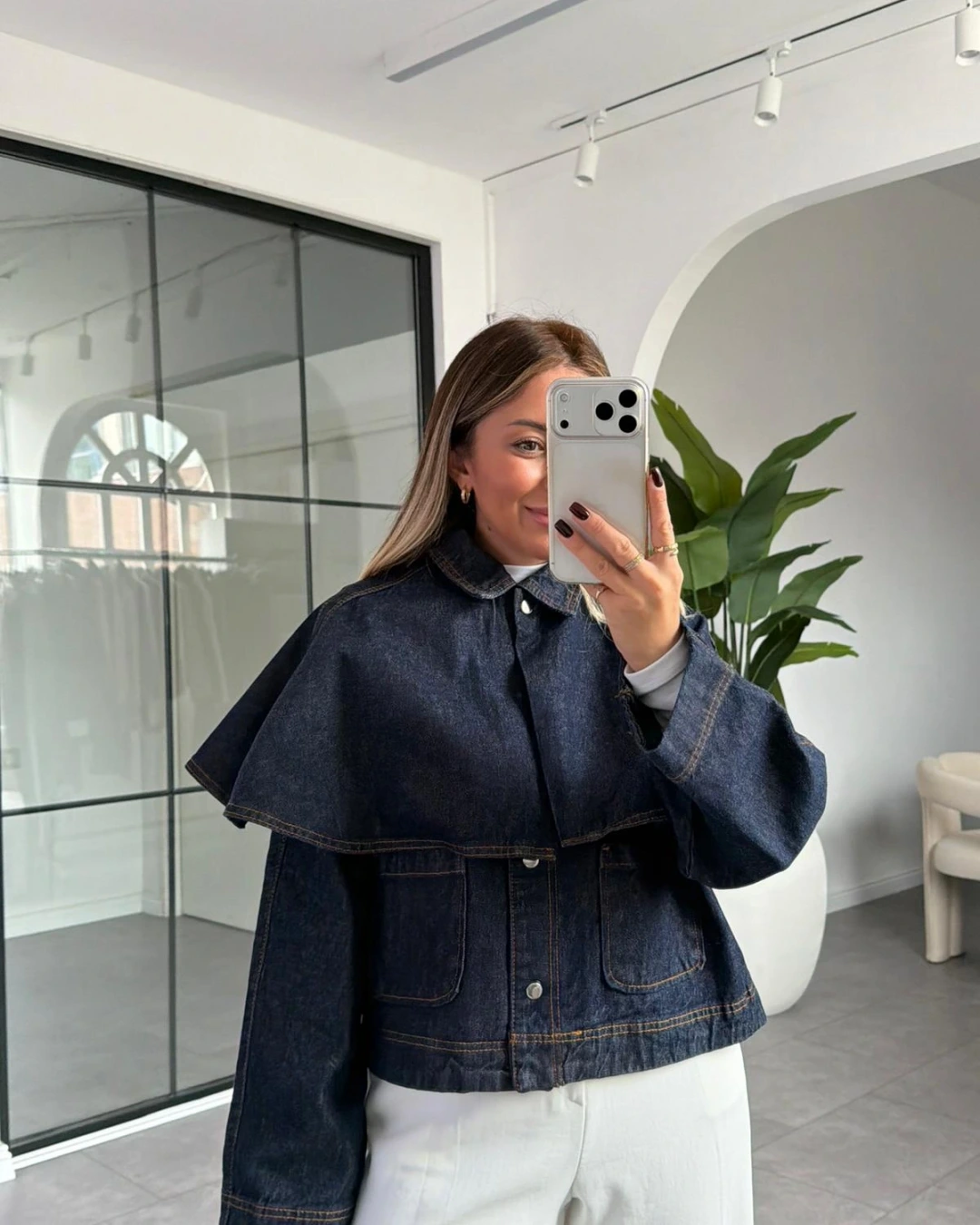 PELERİN DETAY JEAN CEKET