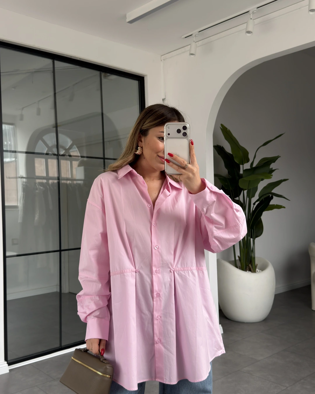 PEMBE DÜĞME VE DİKİŞ DETAYLI POPLİN GÖMLEK 5006