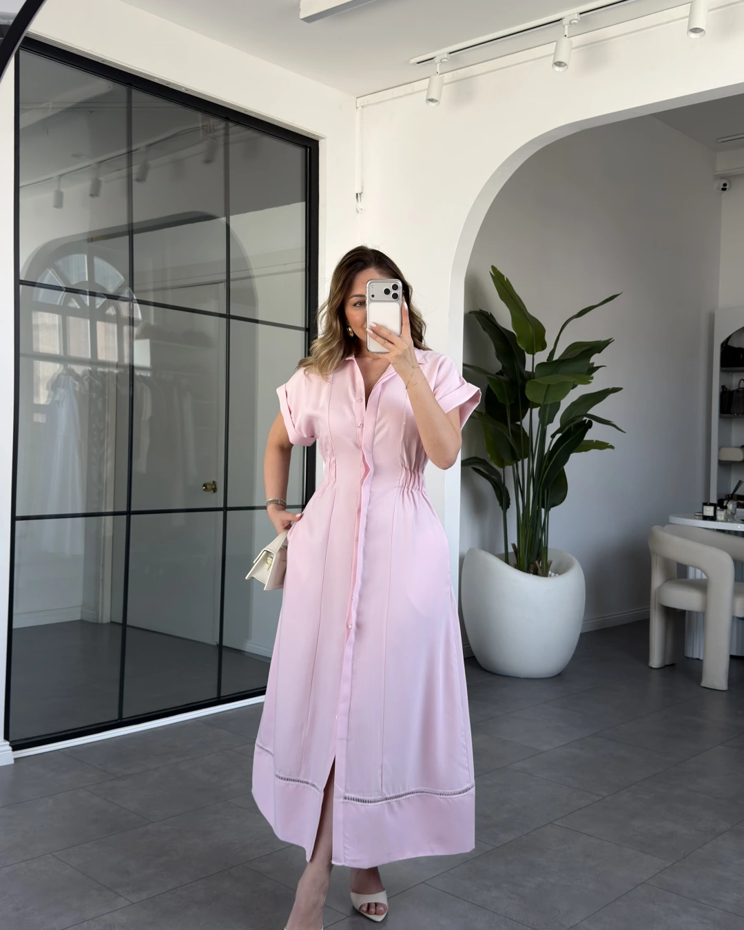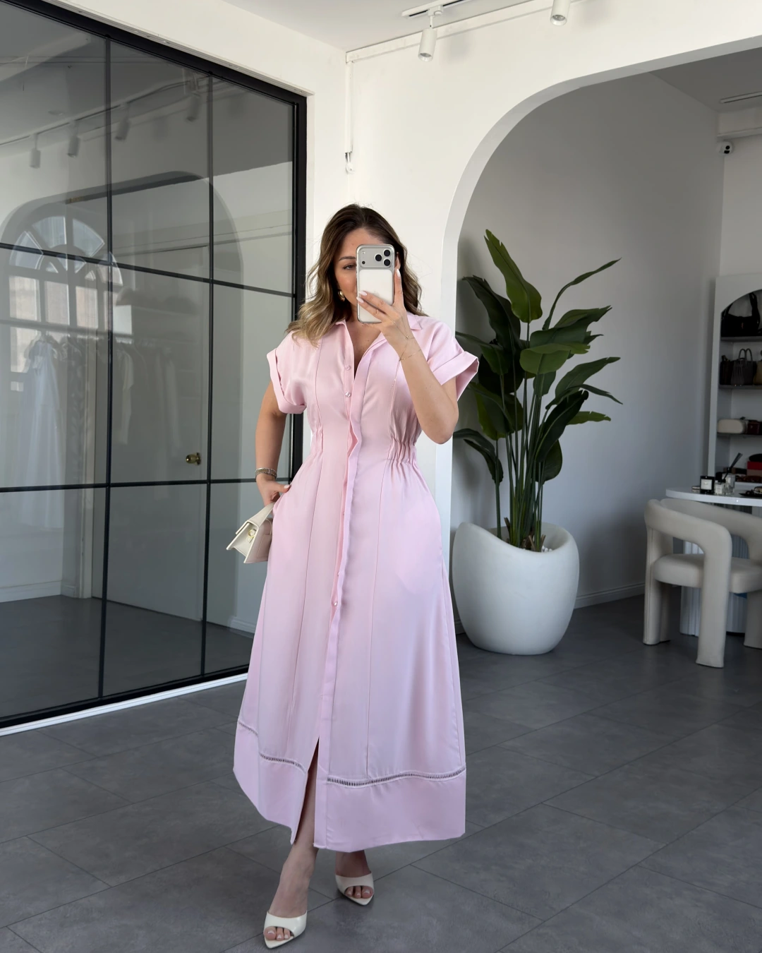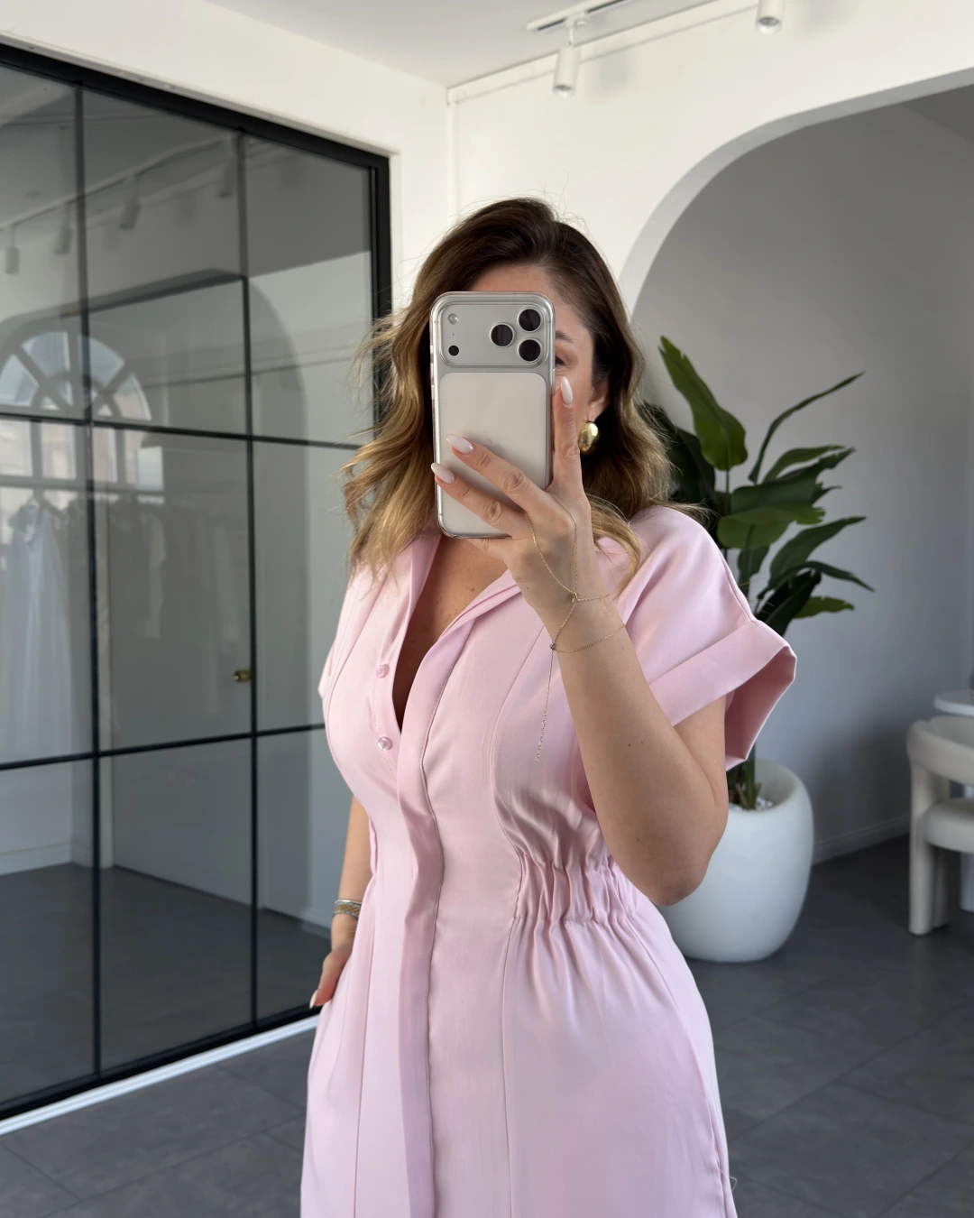 PEMBE KISA KOL BELİ LASTİKLİ MODAL ELBİSE